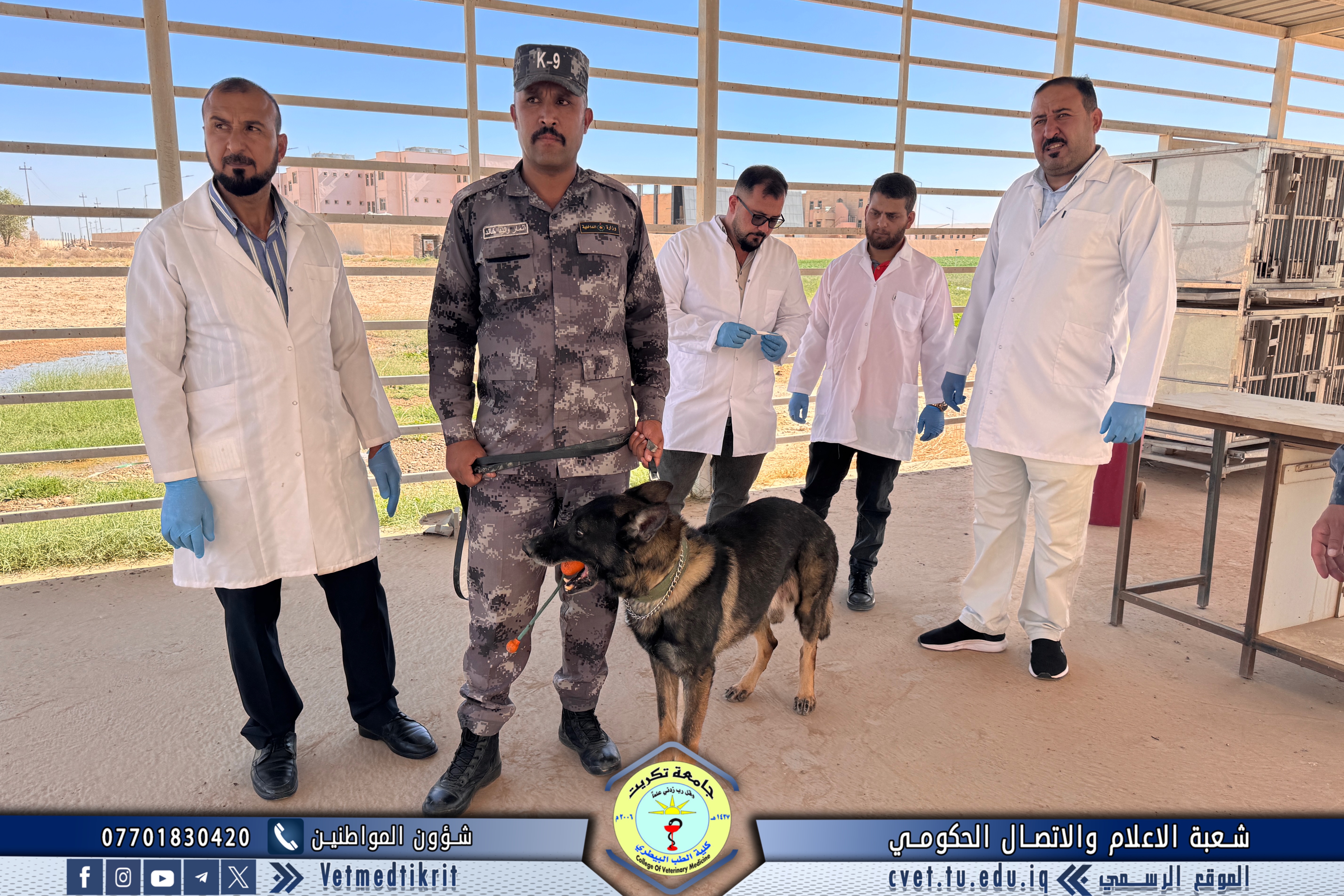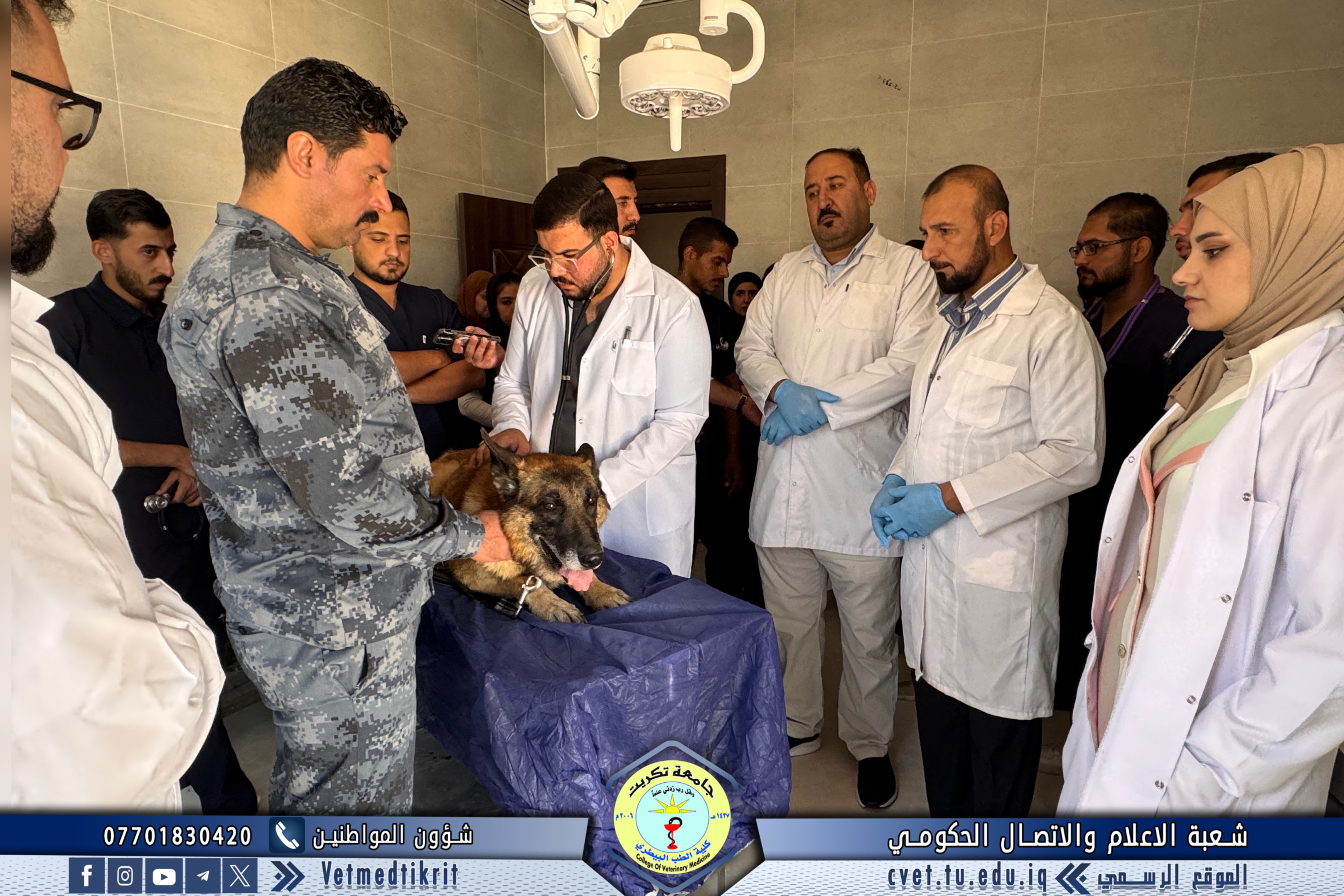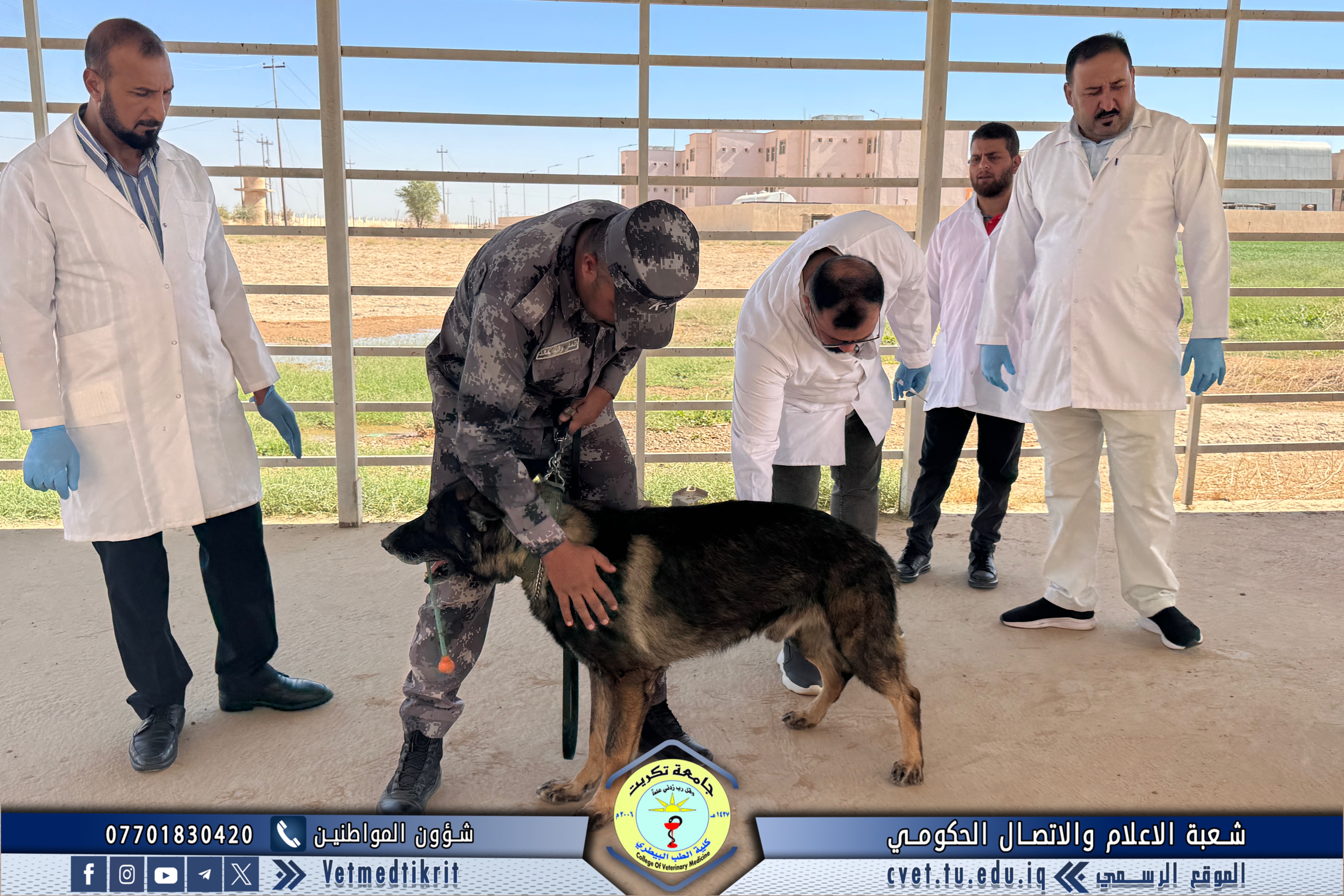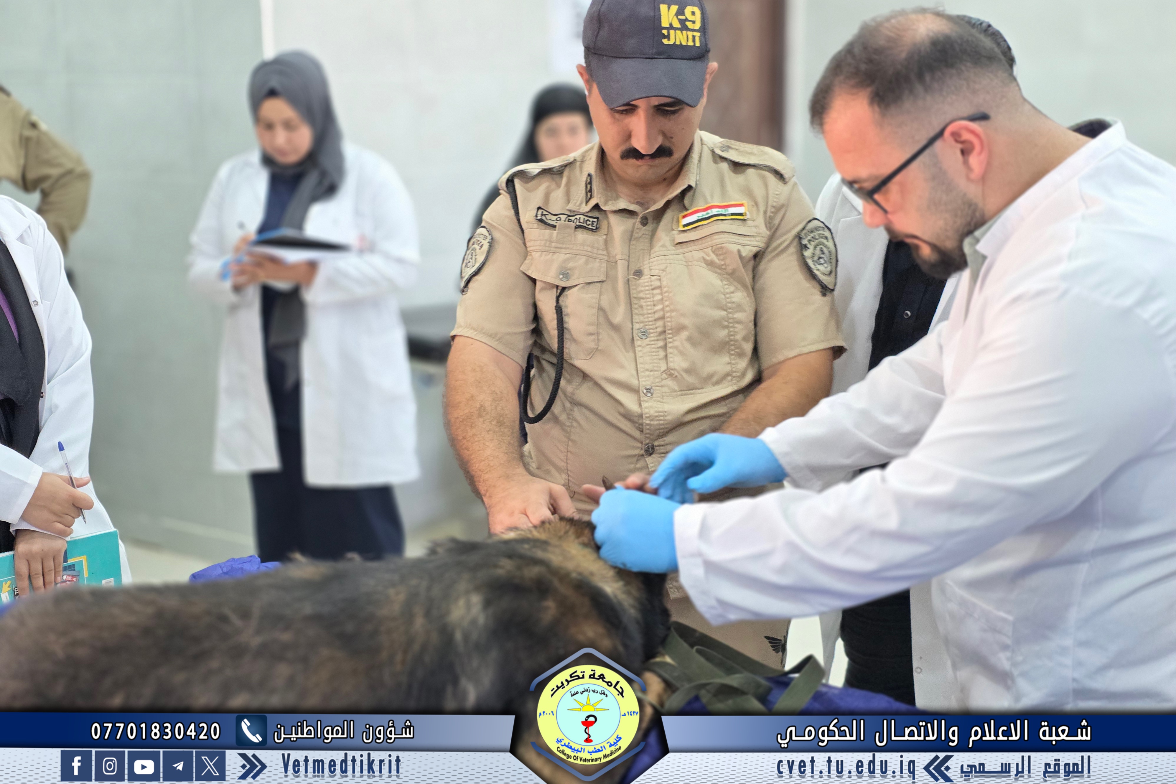The Outpatient Clinic Unit at the Teaching Hospital of the College of Veterinary Medicine, Tikrit University, received several veterinary cases this week involving police dogs from the Salahaddin Police Command, as part of the ongoing cooperation between the college and security institutions in the field of veterinary health care.