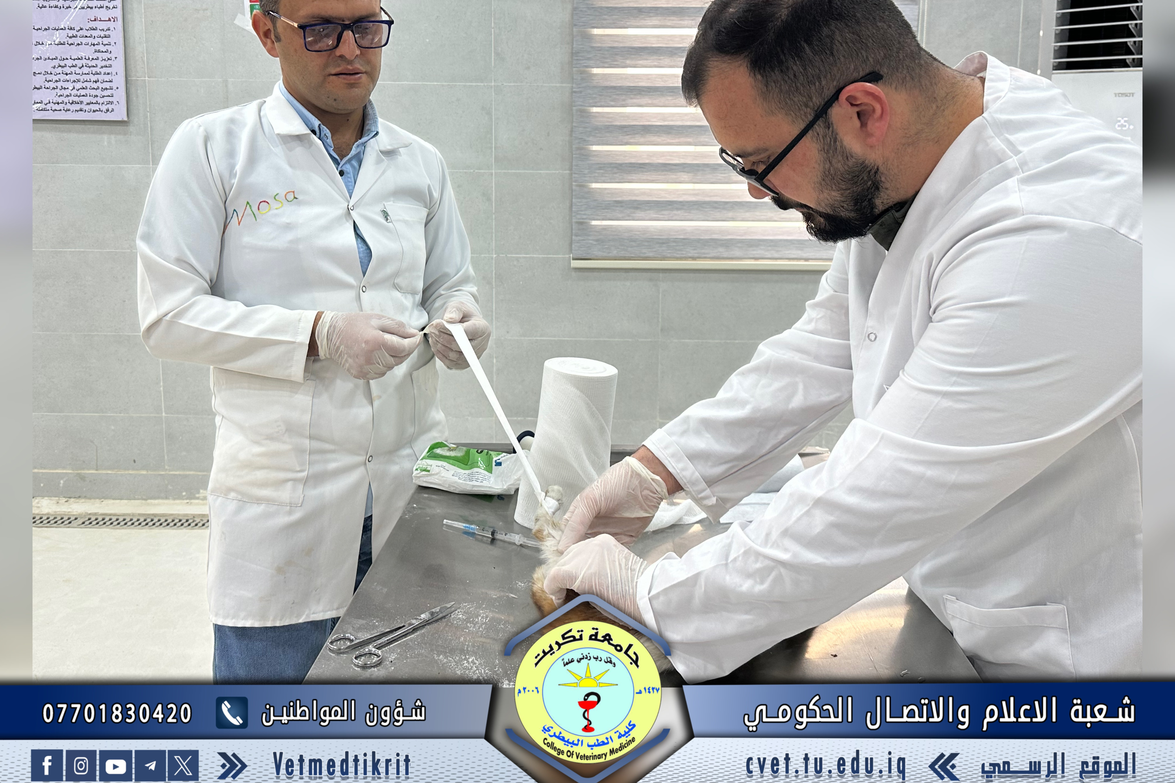 These procedures come as part of the veterinary services and technical support provided by the College to state institutions—particularly security agencies—to enhance their efforts in performing their field duties. Students in the final stages of study participated in the necropsy as part of their practical training for the Forensic Medicine course, where they observed the examination steps and recorded notes and explanatory instructions presented by the supervising professors.