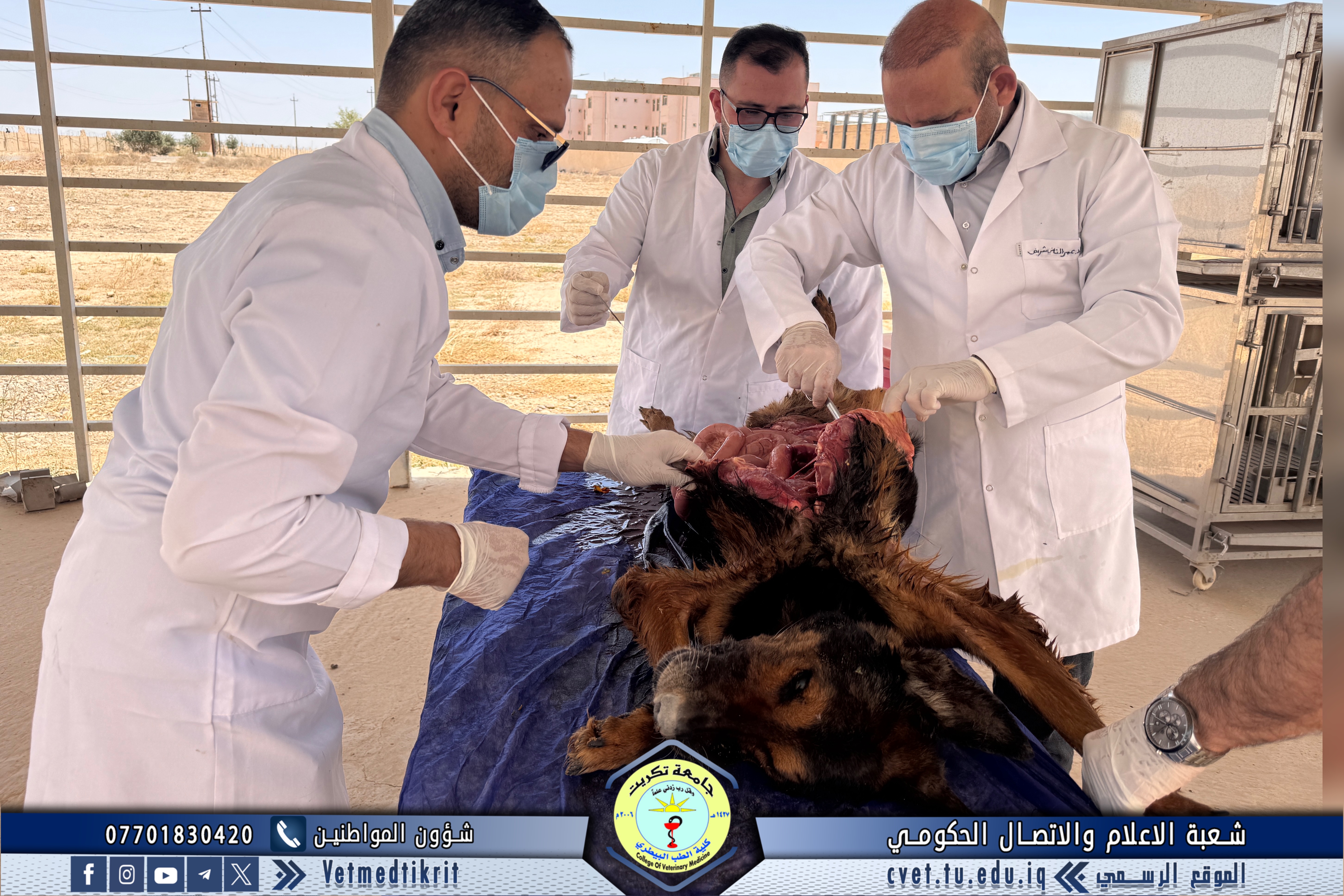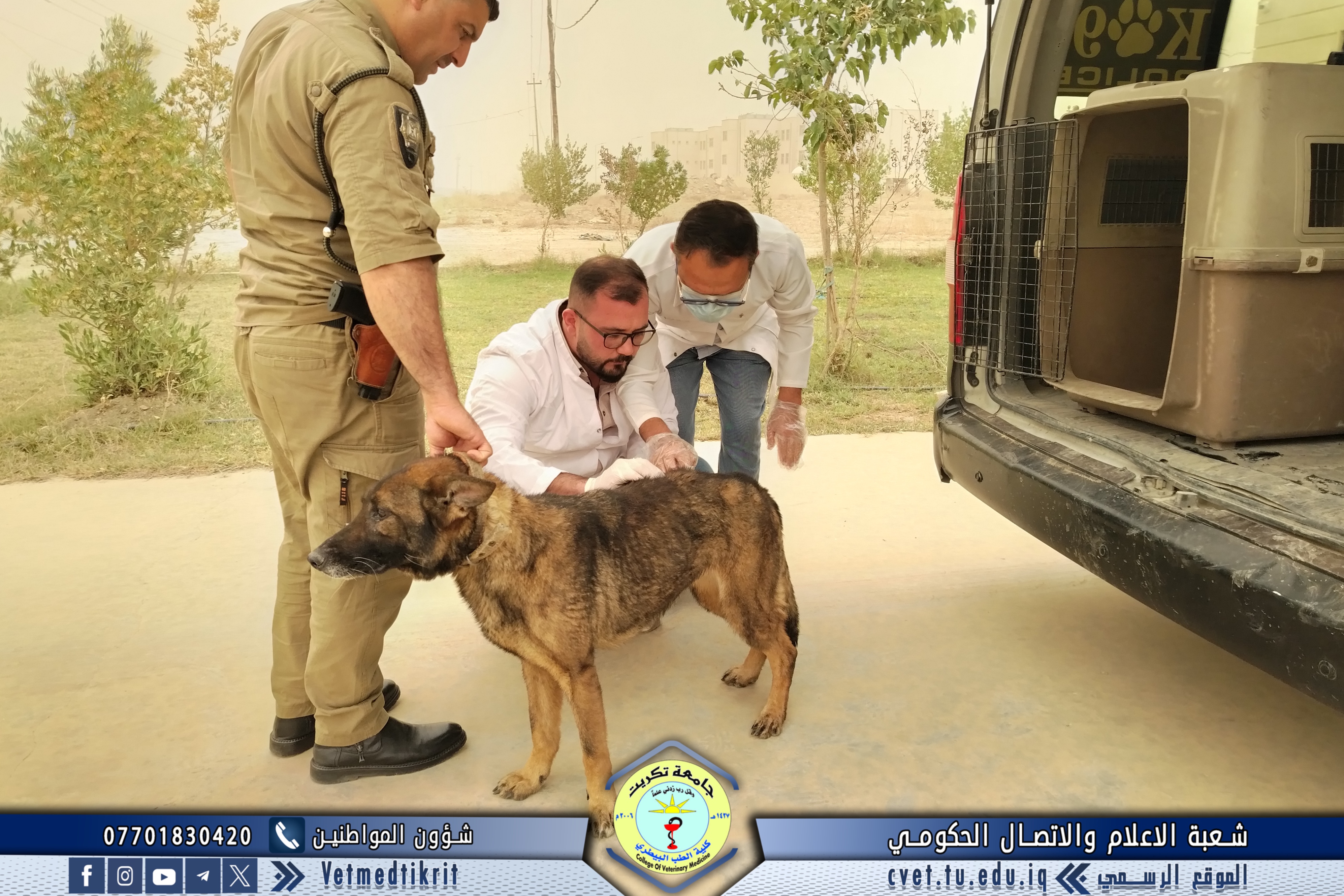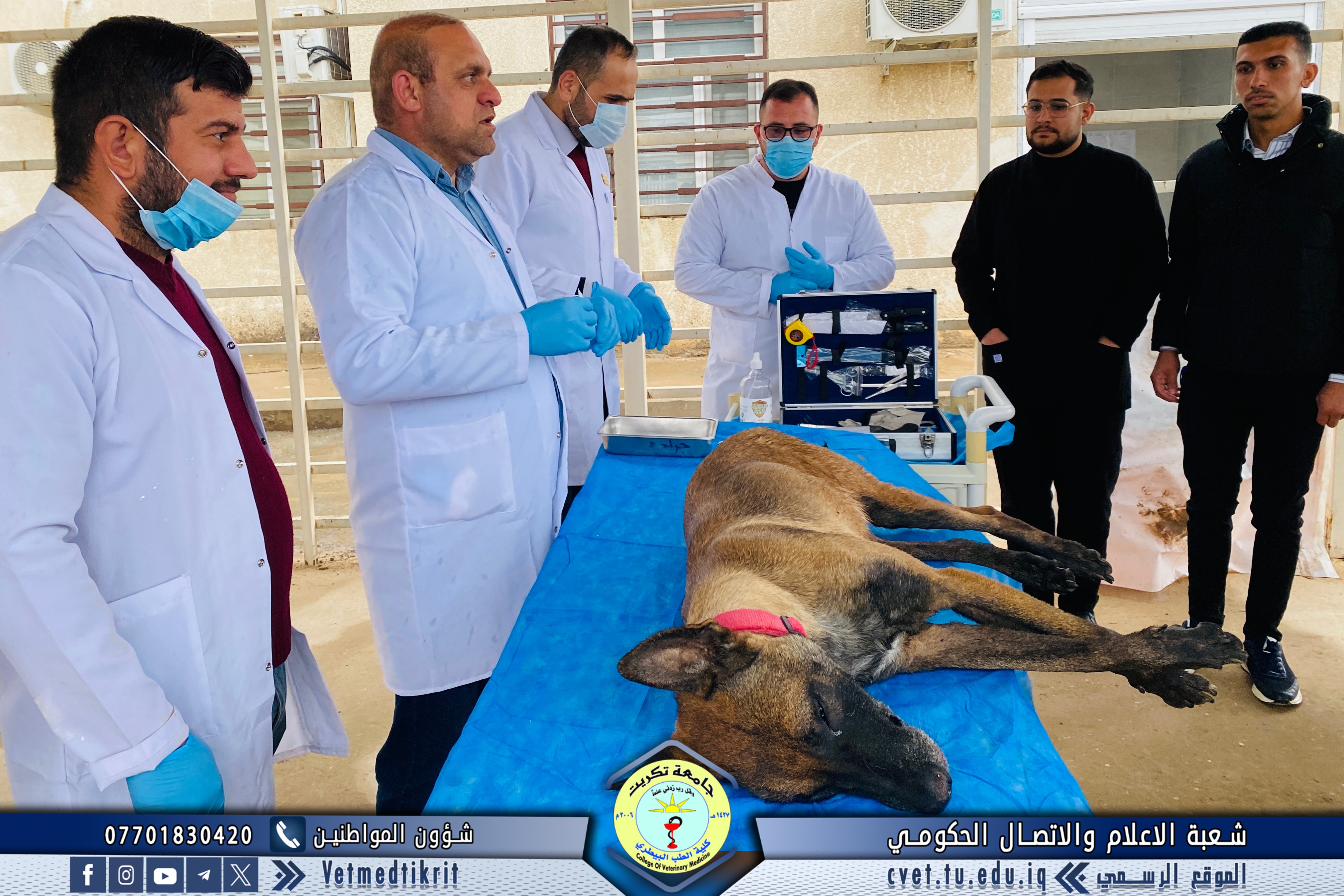 The External Clinic Unit at the College of Veterinary Medicine, University of Tikrit, received a veterinary case from the Salahuddin Governorate Police Command involving a deceased dog from the K-9 Police Dog Management and Training Unit.