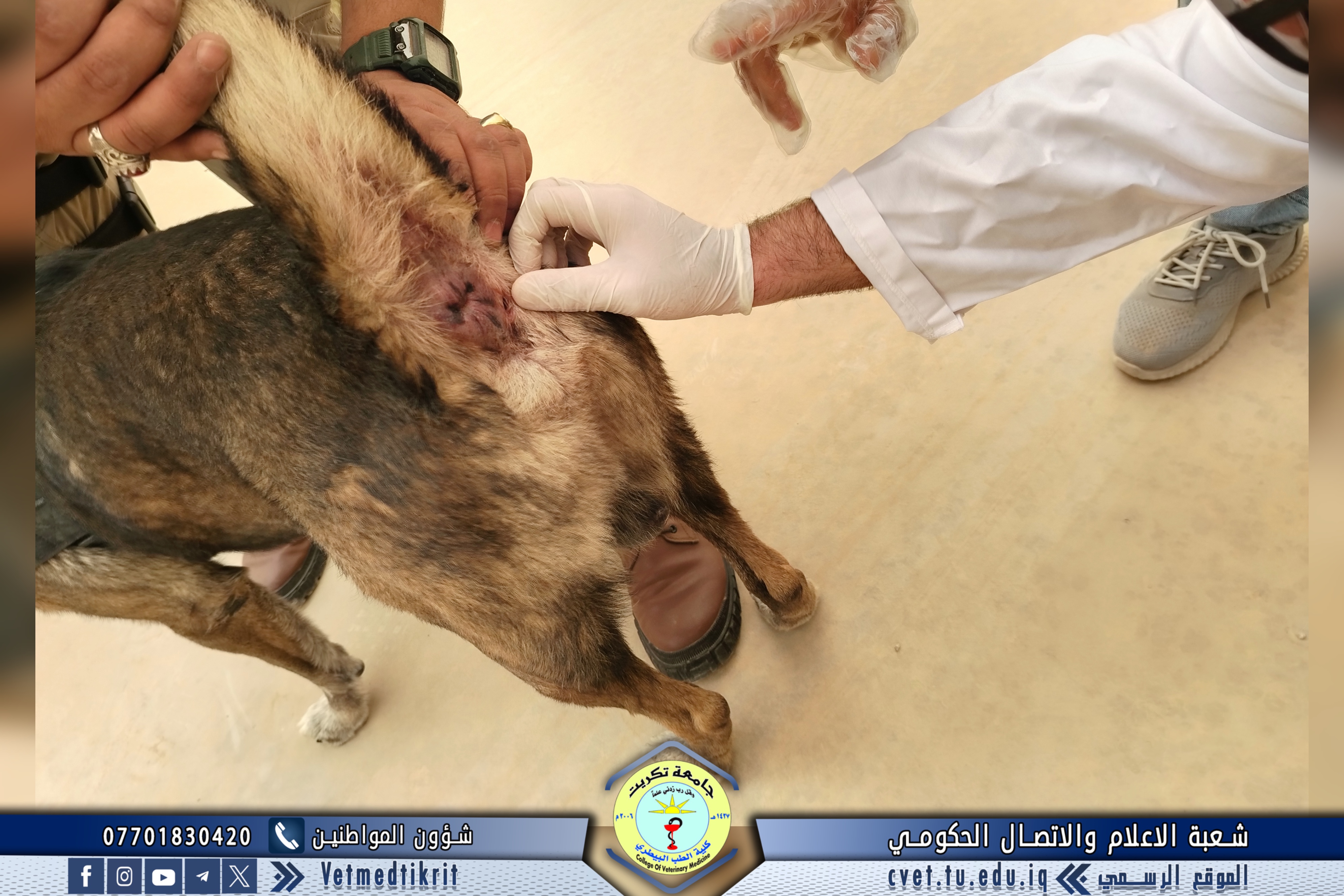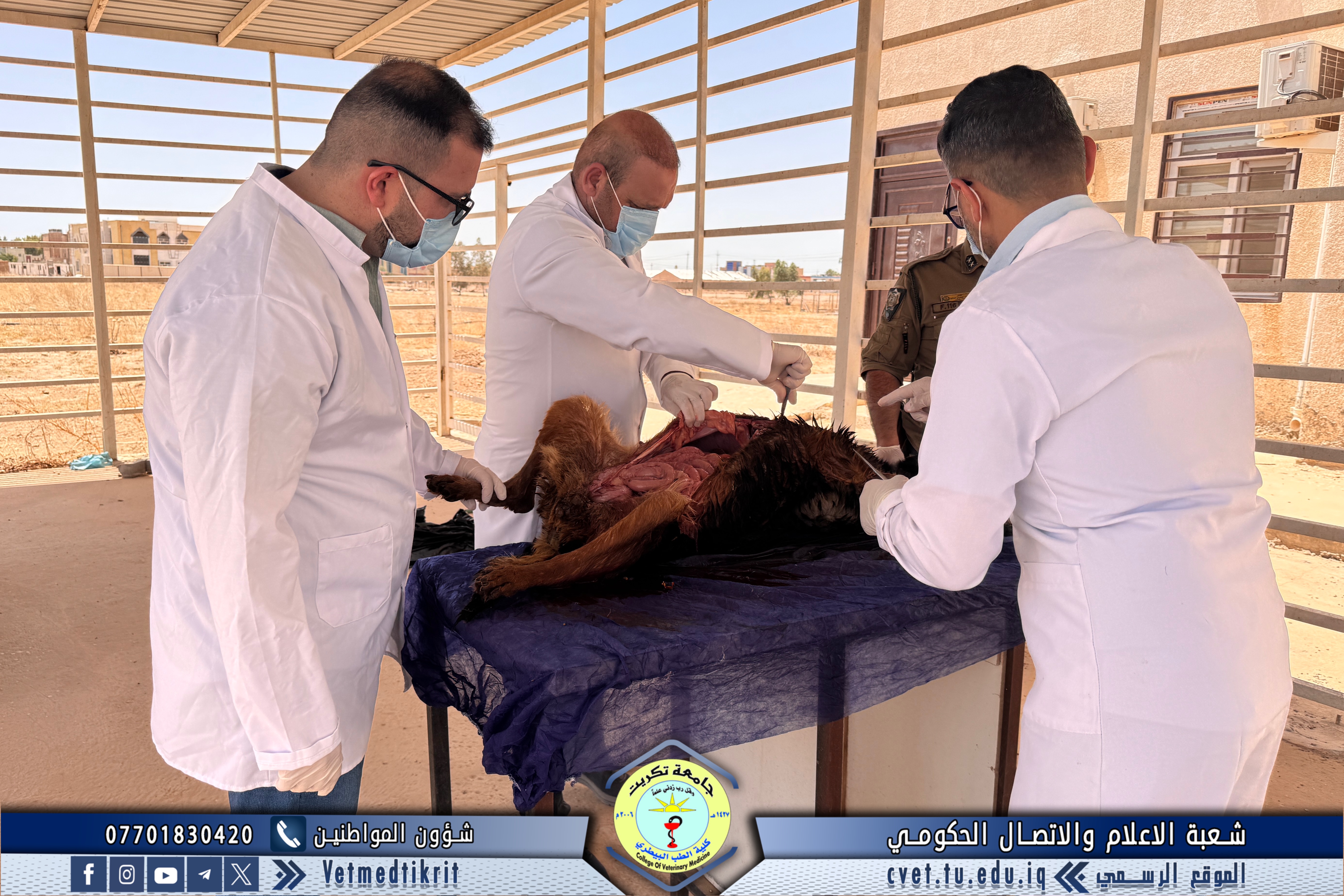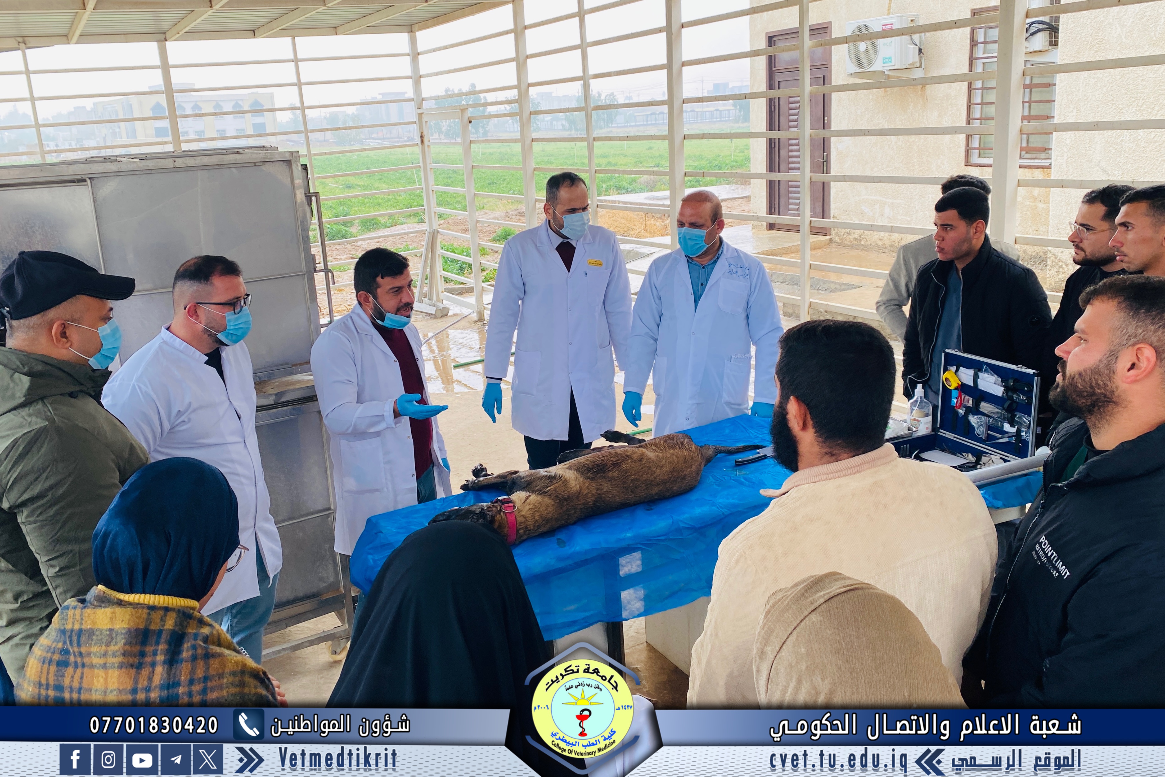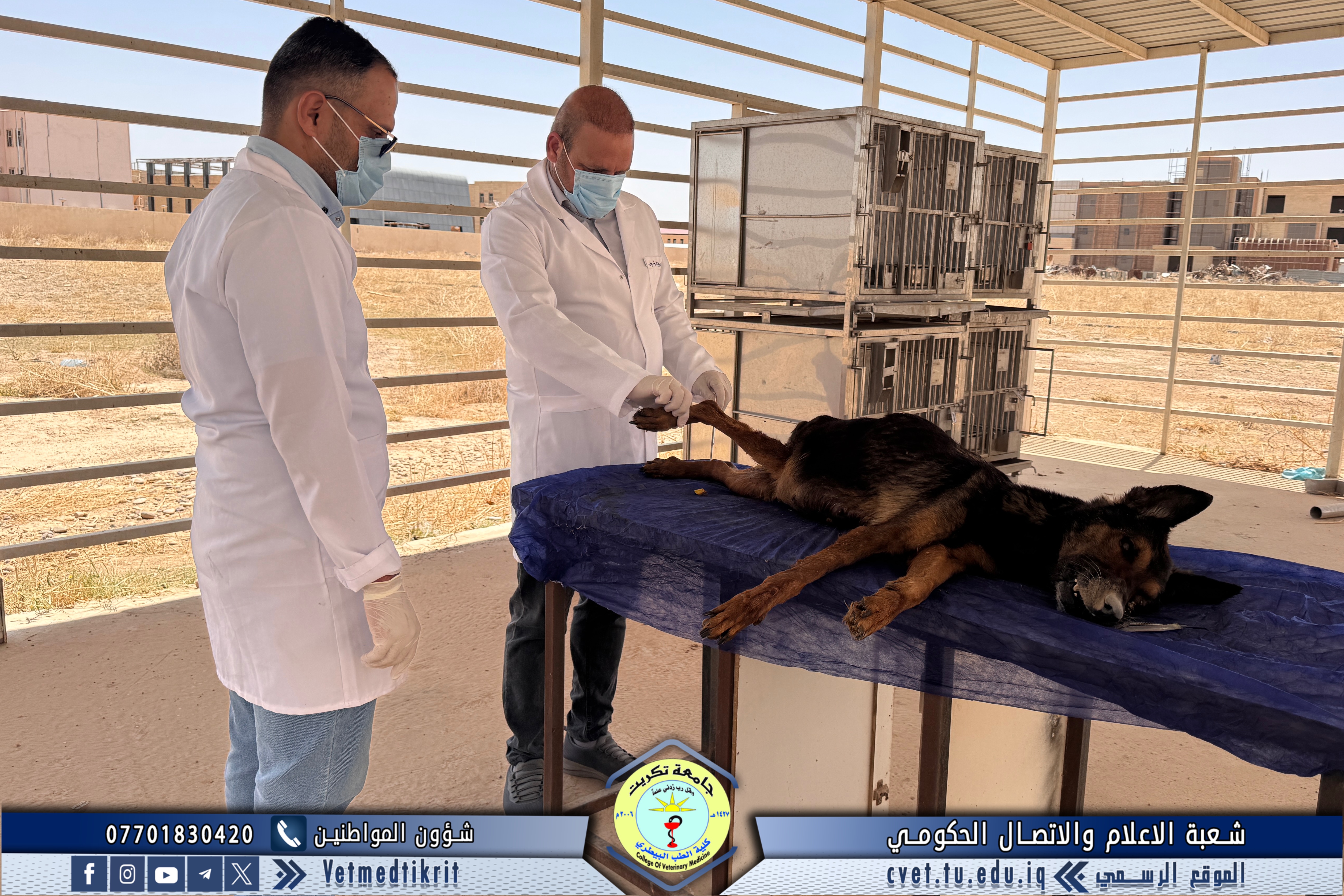 The External Clinic Unit at the College of Veterinary Medicine, University of Tikrit, received a veterinary case from the Salahuddin Governorate Police Command involving a deceased dog from the K-9 Police Dog Management and Training Unit.