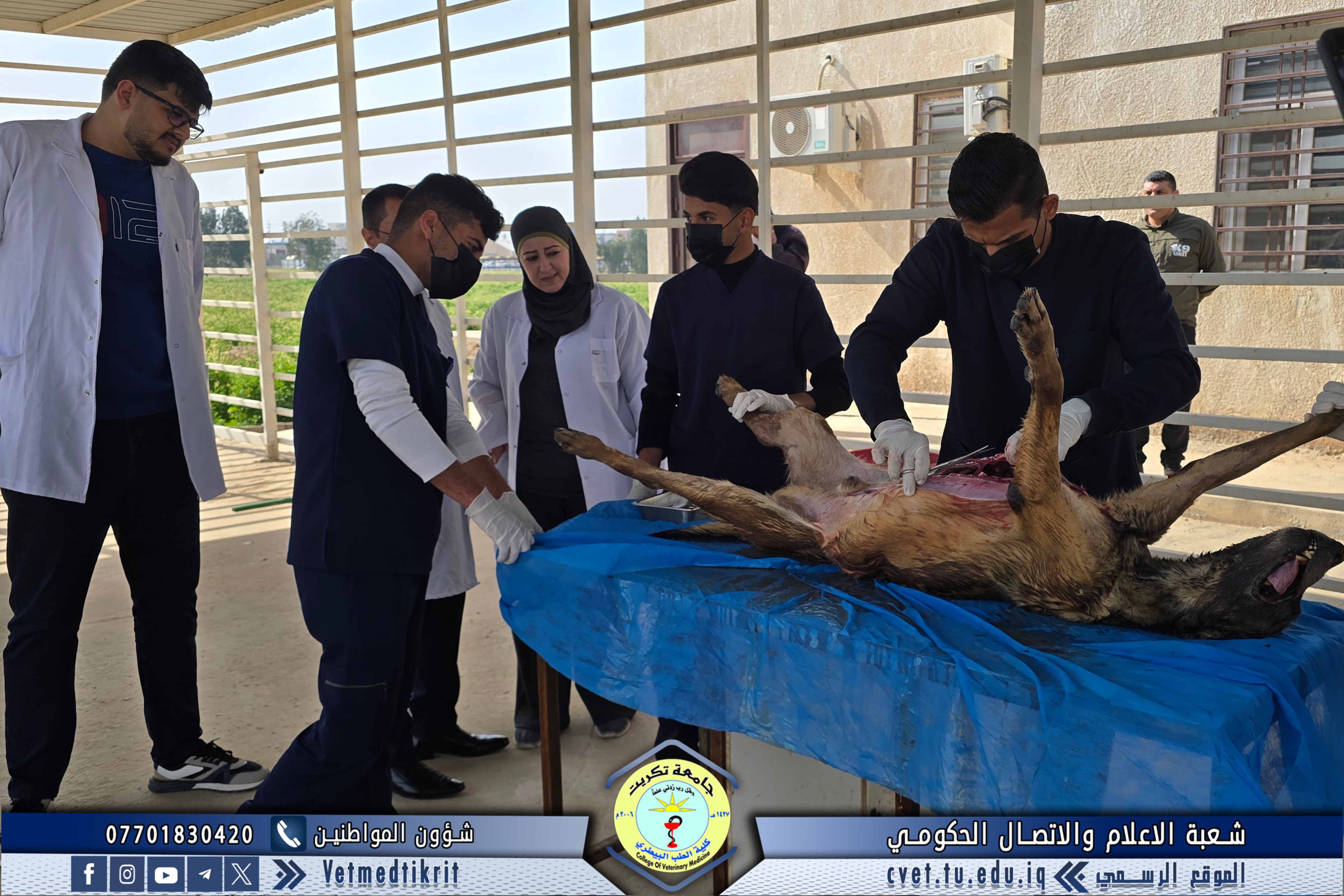 In line with the approach of the College of Veterinary Medicine at Tikrit University in supporting the security forces in Salah Al-Din Province, the Outpatient Clinic Unit received a veterinary case referred by the Salah Al-Din Police Command, involving a deceased K-9 dog of the German Shepherd breed.