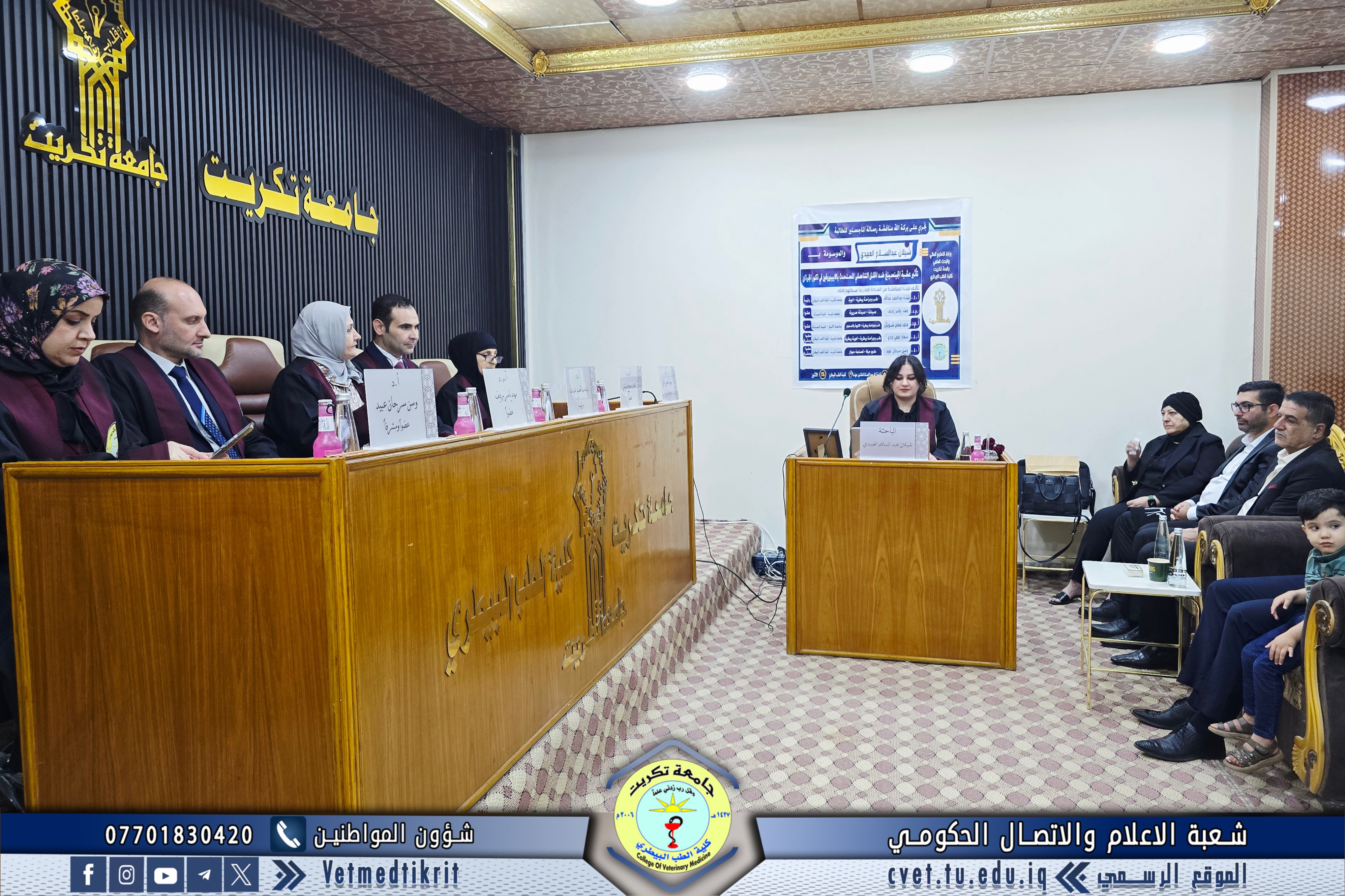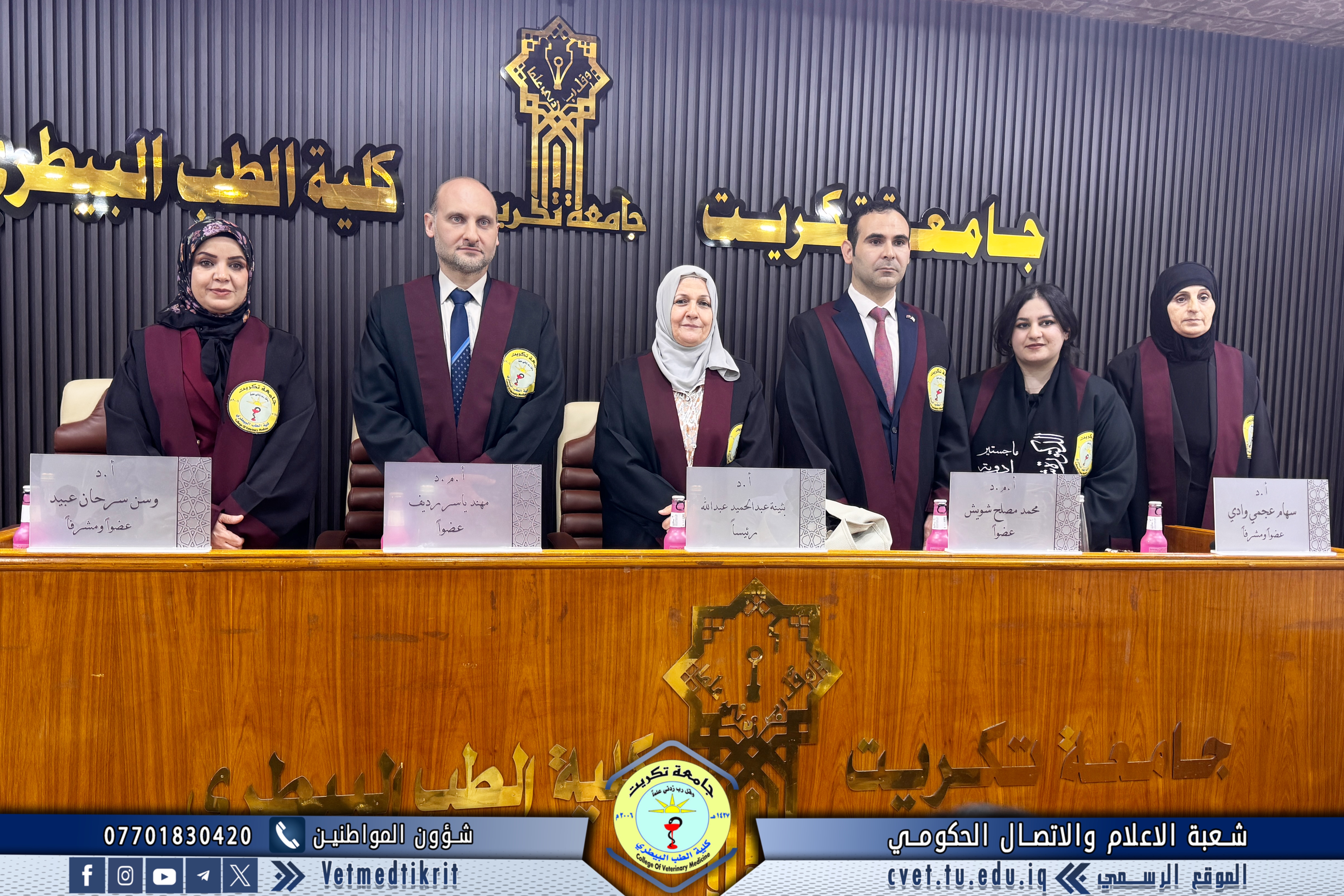 The defense took place at Dr. Muhannad Maher Hall in the College of Veterinary Medicine, attended by several faculty members and students.