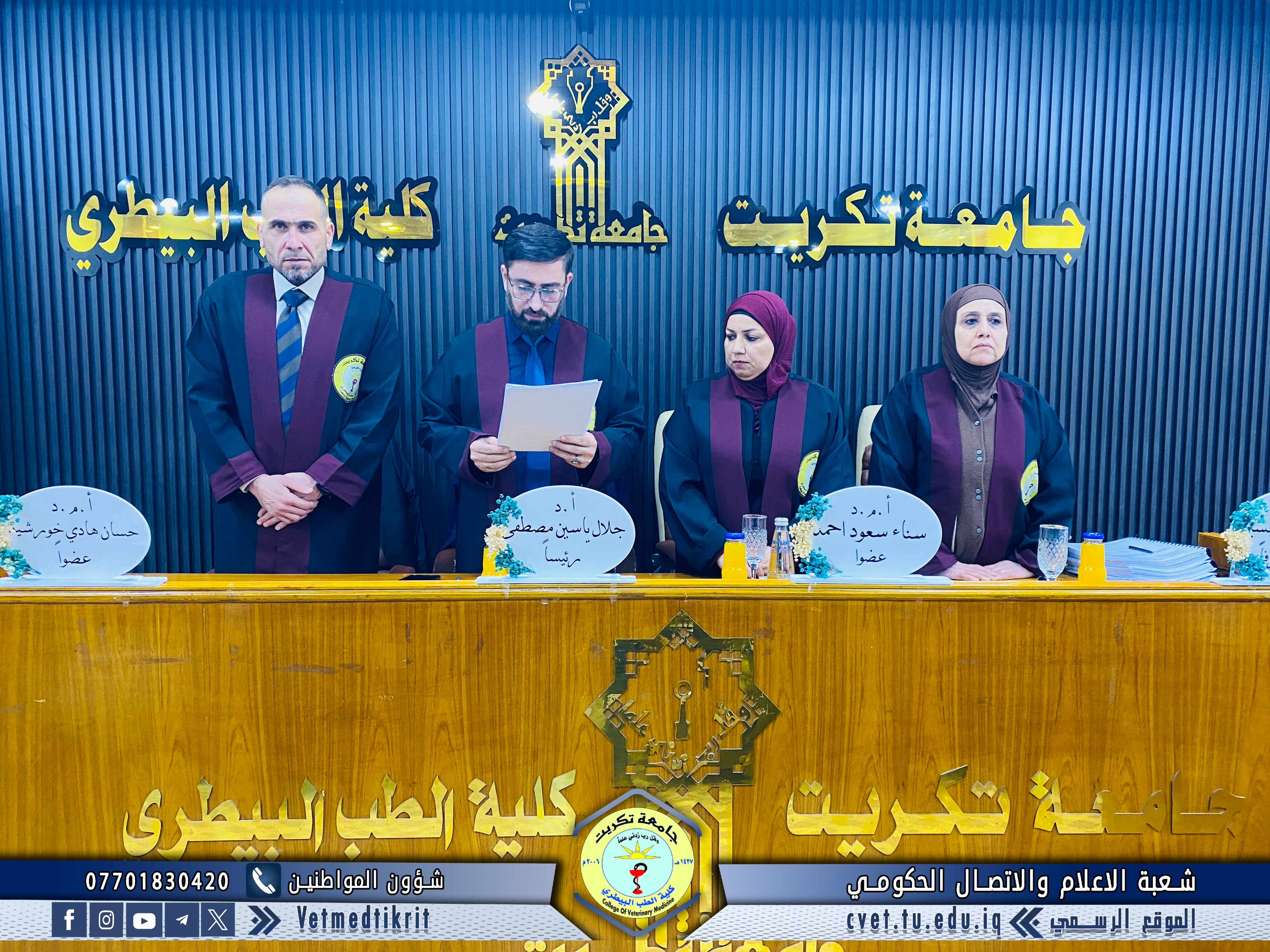 By the grace of Almighty God, and in the presence of Professor Dr. Bashar Sadiq Noumi, Dean of the College of Veterinary Medicine at the University of Tikrit, the Master’s thesis entitled: