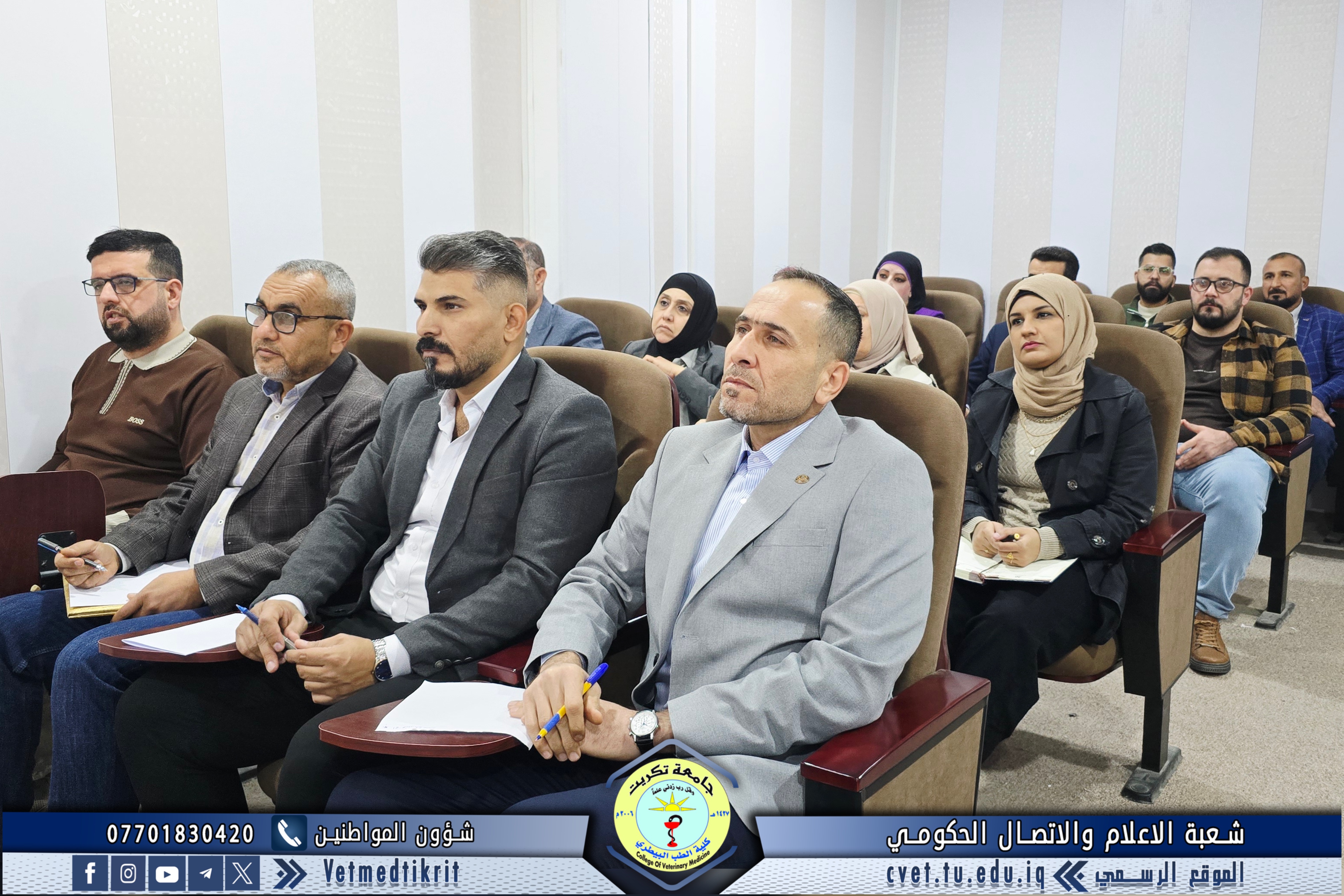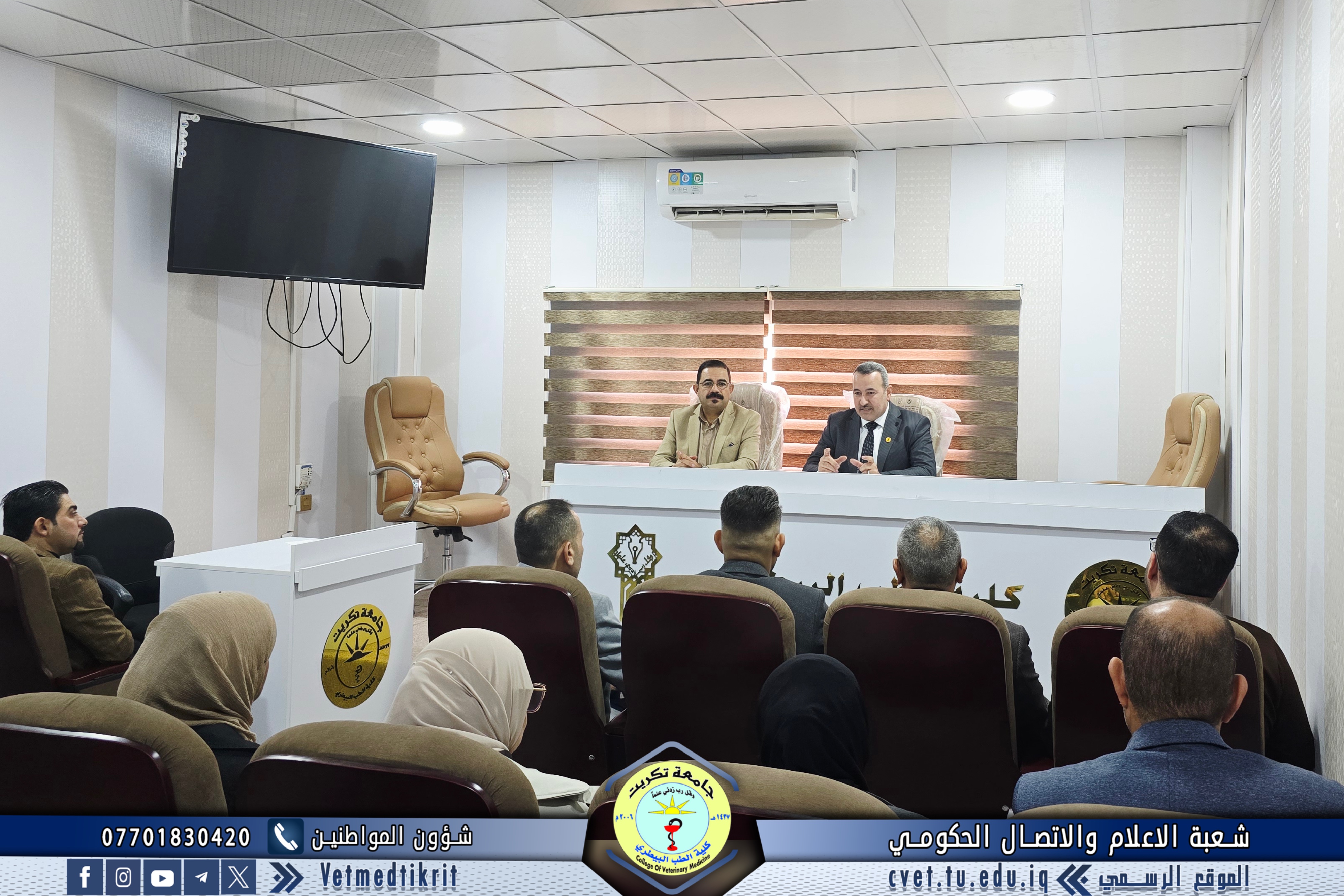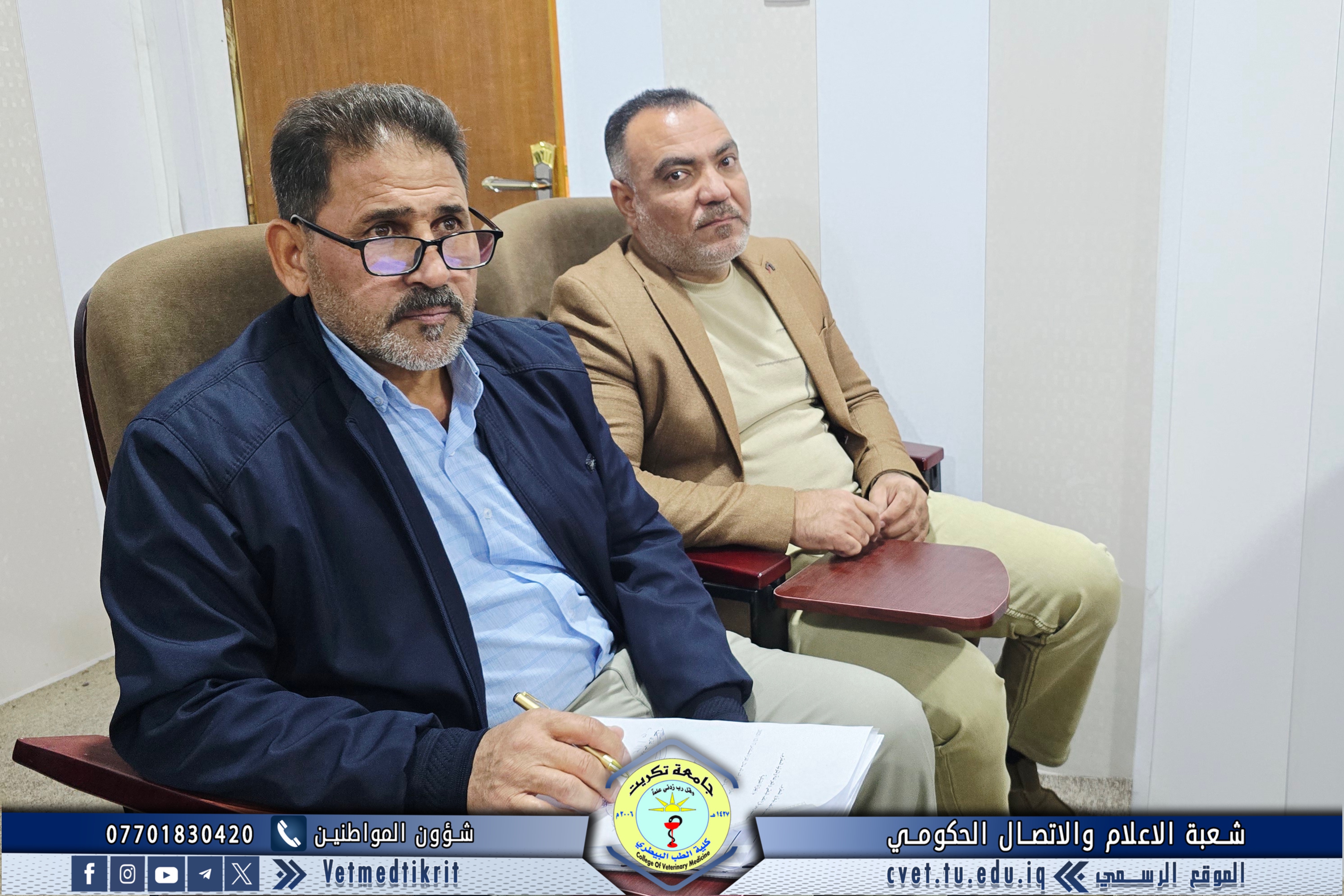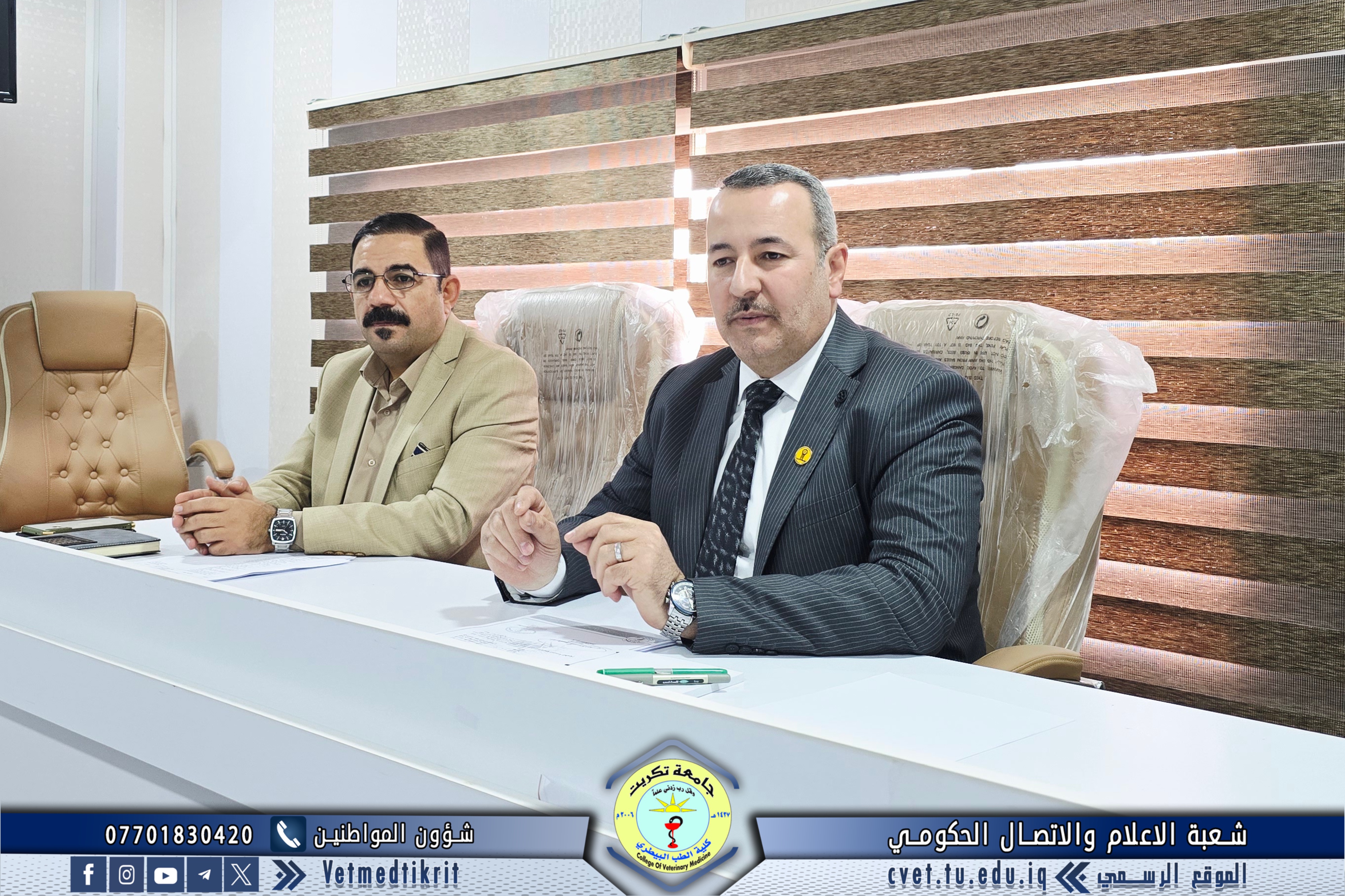 The Administration of the College of Veterinary Medicine at the University of Tikrit held an extensive meeting chaired by Prof. Dr. Bashar Sadiq Noami, Dean of the College, and attended by Asst. Prof. Dr. Montasir Mohammed Hilal, Associate Dean for Scientific Affairs, along with the heads and members of the committees responsible for completing the college’s institutional accreditation requirements.