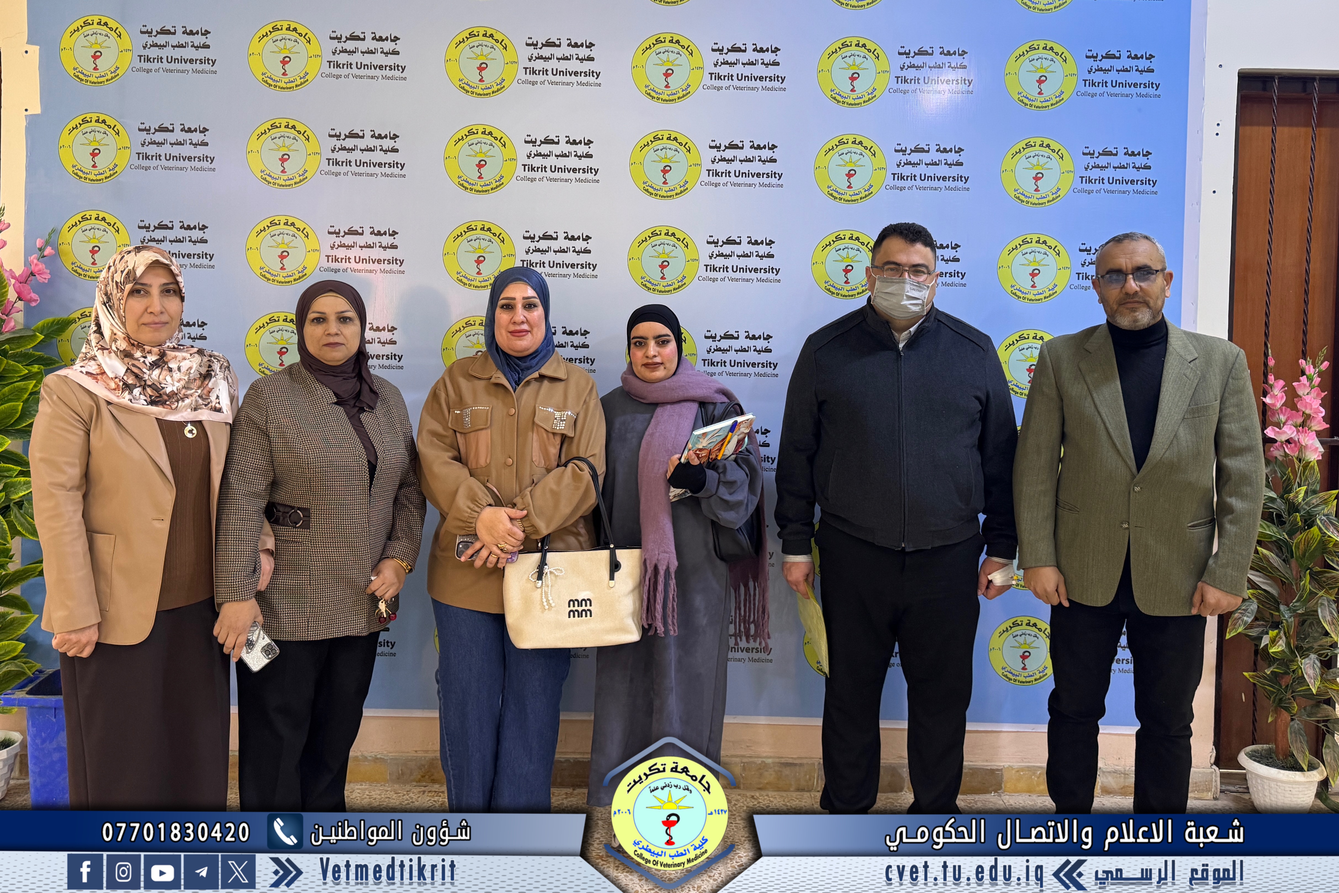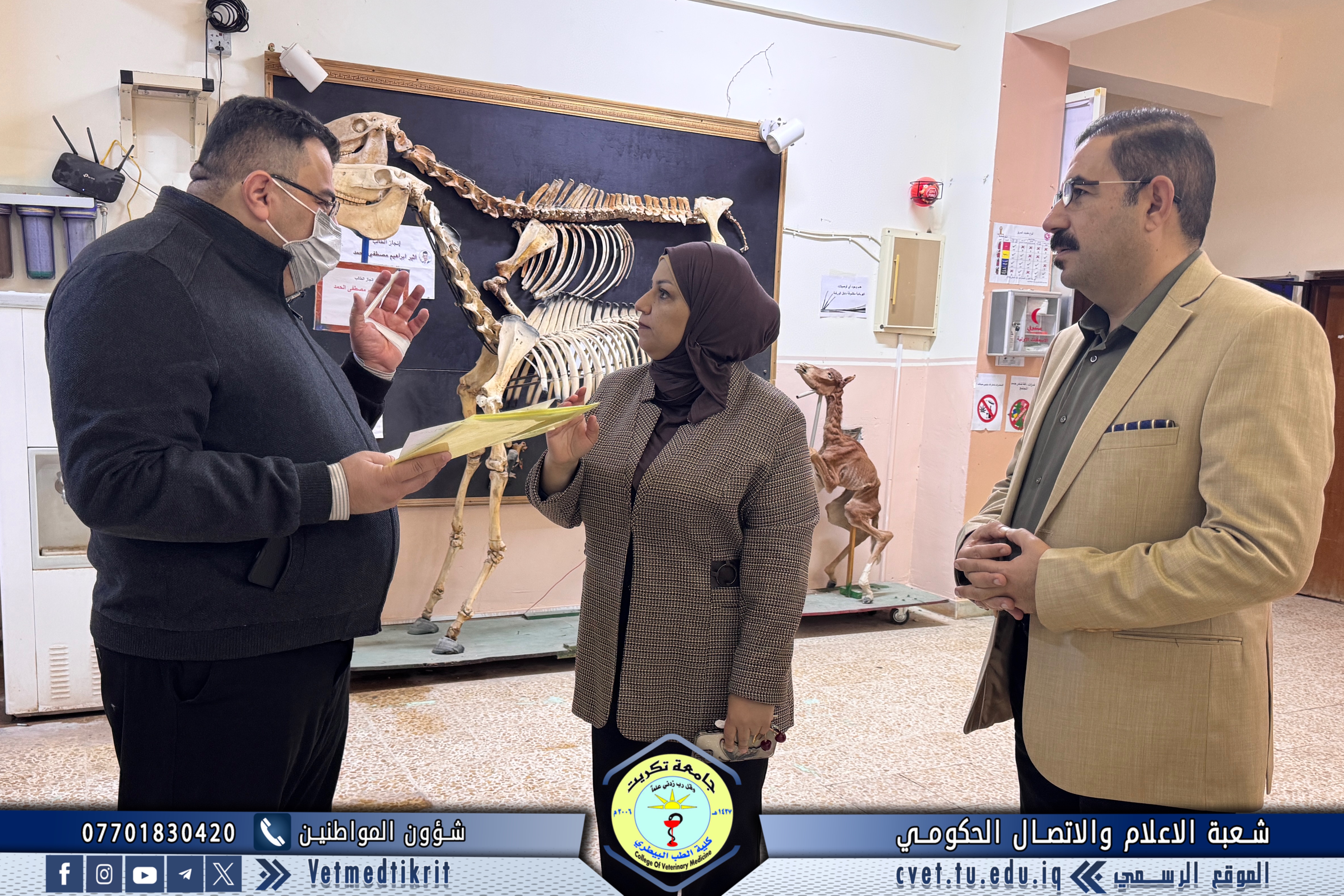 The College of Veterinary Medicine at the University of Tikrit welcomed a committee from the Internal Audit and Control Department at the University Presidency, where they were received by the College’s Assistant Dean for Scientific Affairs, Assistant Professor Dr. Muntaser Mohammed Hilal.
