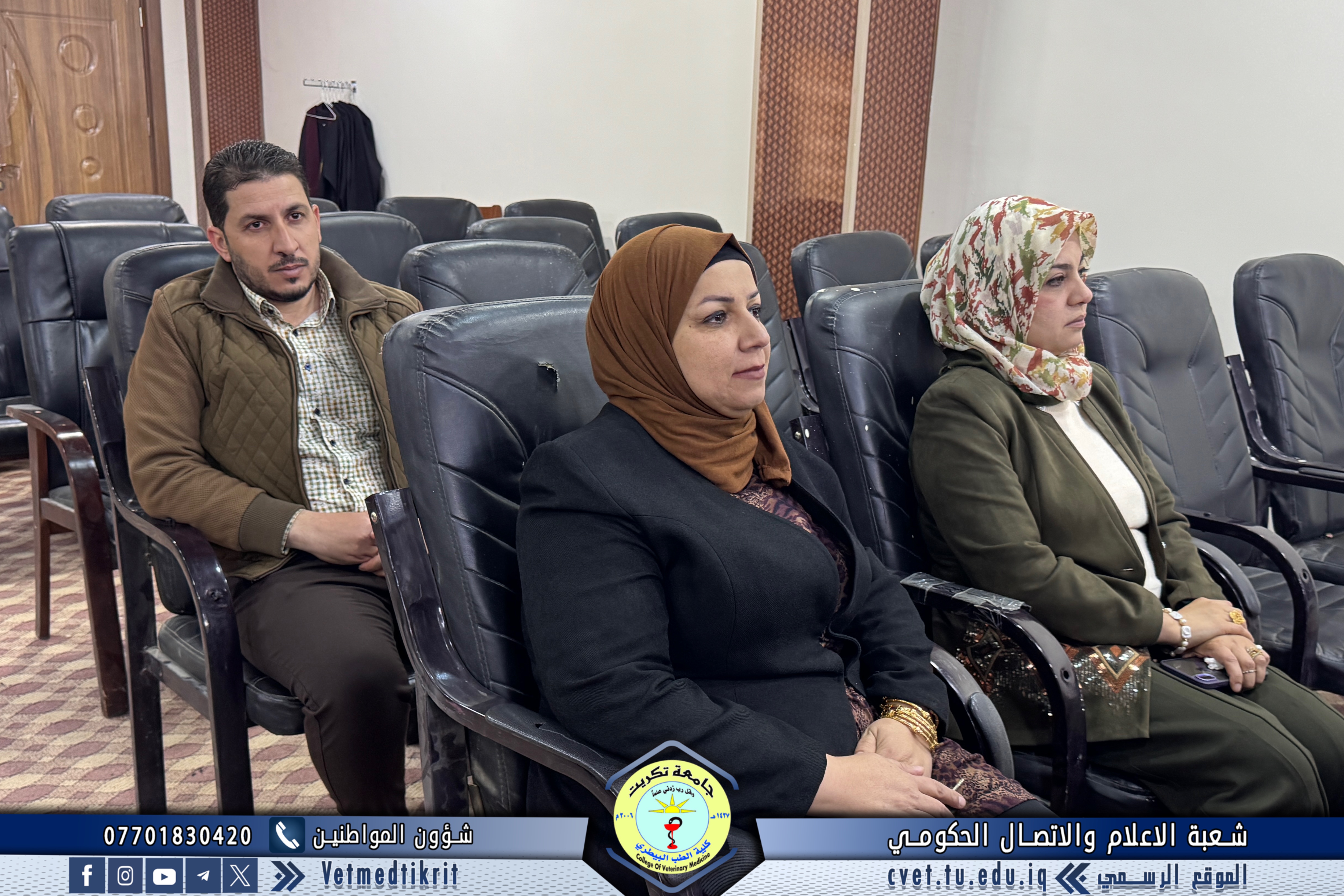 The College of Veterinary Medicine at the University of Tikrit hosted an academic awareness seminar entitled “The Academics’ Syndicate: A Pillar for Building the Academic Future”, in cooperation with the Iraqi Academics’ Syndicate – Salah Al-Din Branch. The seminar was held in Dr. Muhannad Maher Hall at the college and was attended by a number of faculty members.