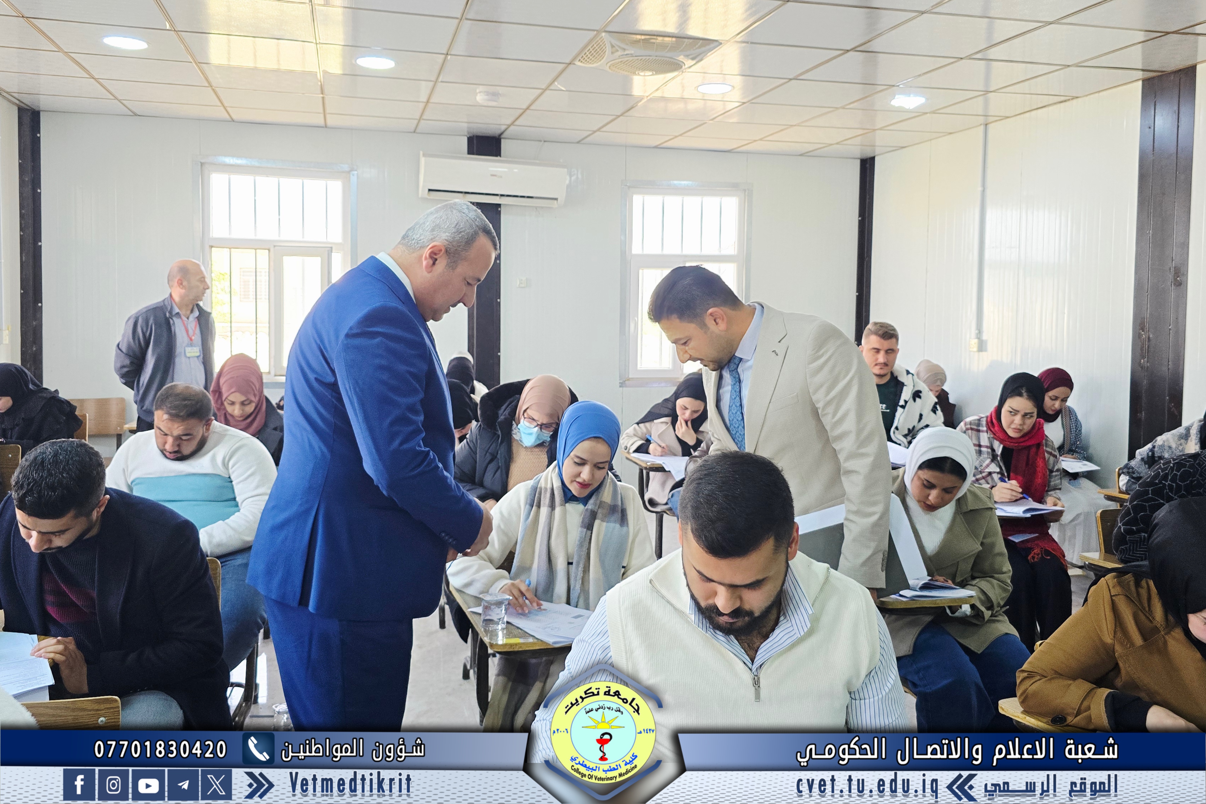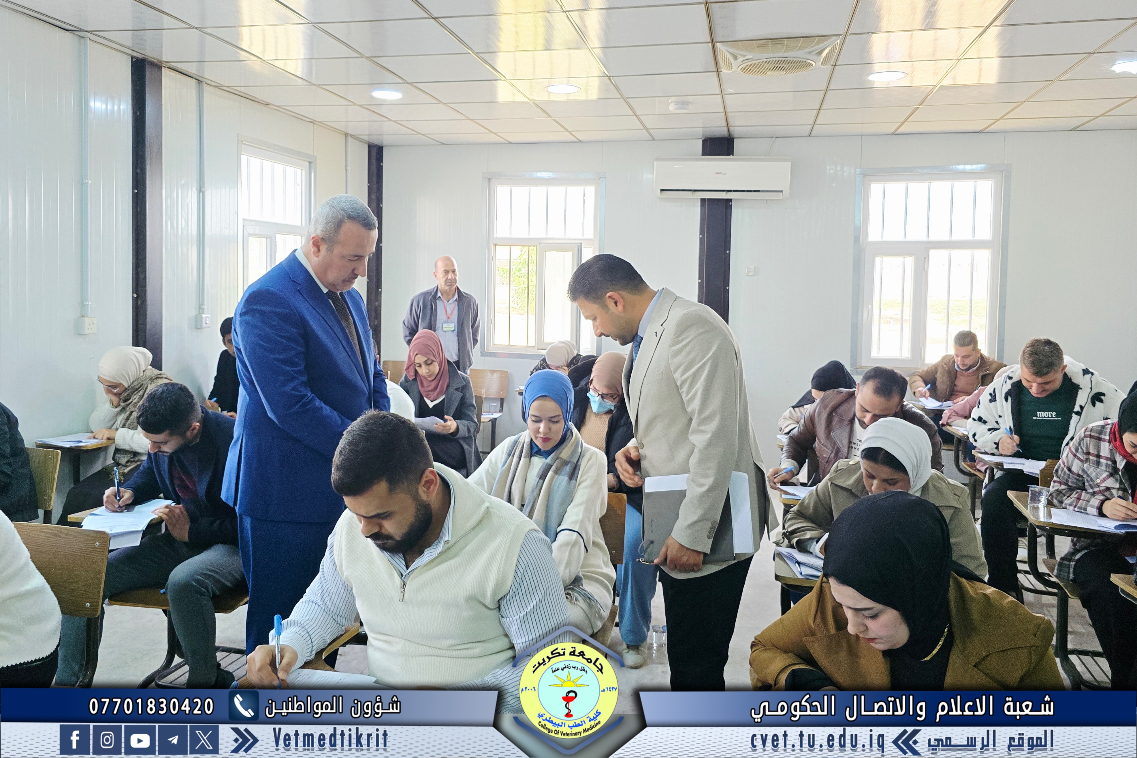 A university committee from the Presidency of the University of Tikrit visited the College of Veterinary Medicine to follow up on the progress of the final examinations for the first semester of the academic year 2025–2026. This visit comes as part of the university’s commitment to ensuring the smooth conduct of the examination process and adherence to approved regulations and instructions.