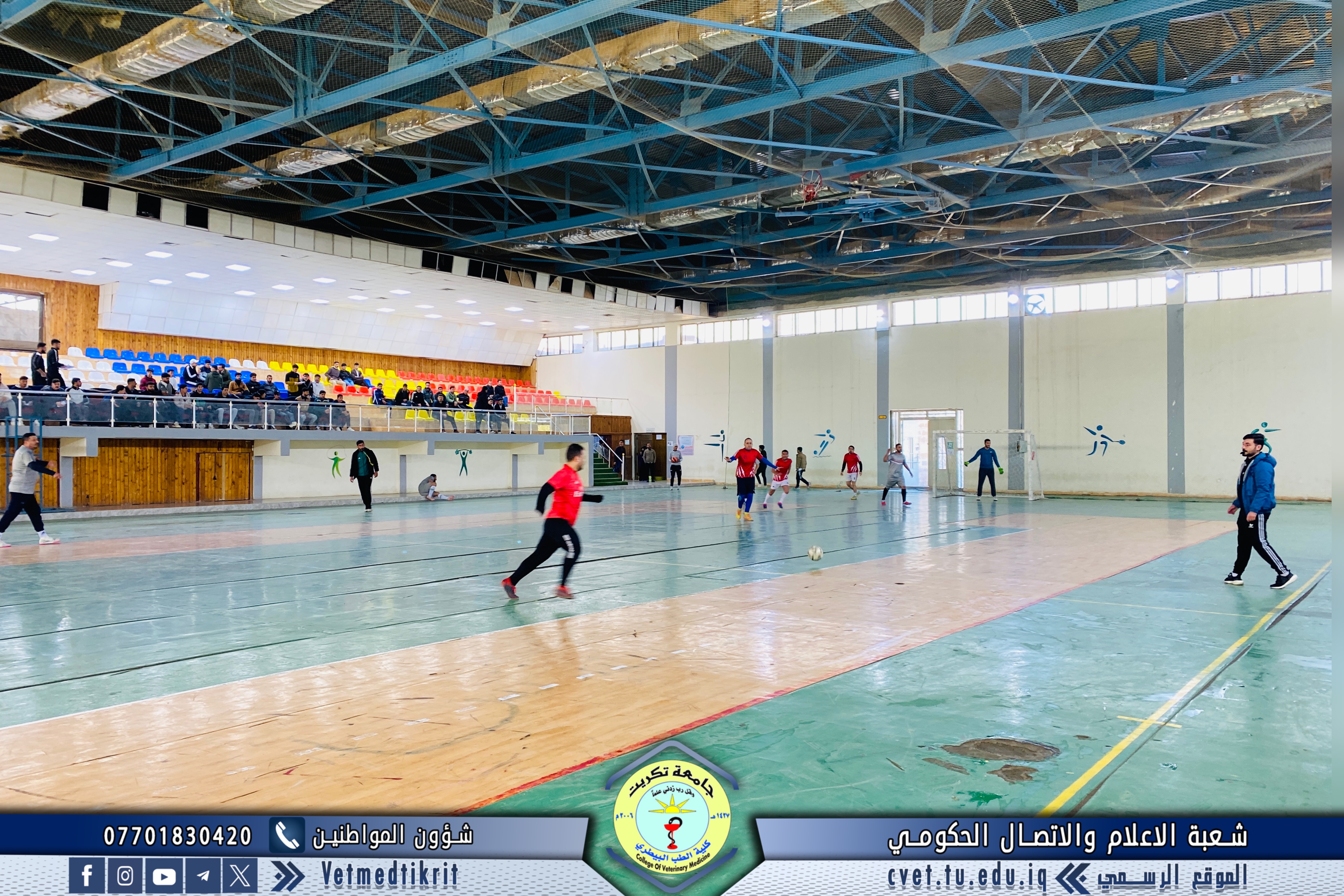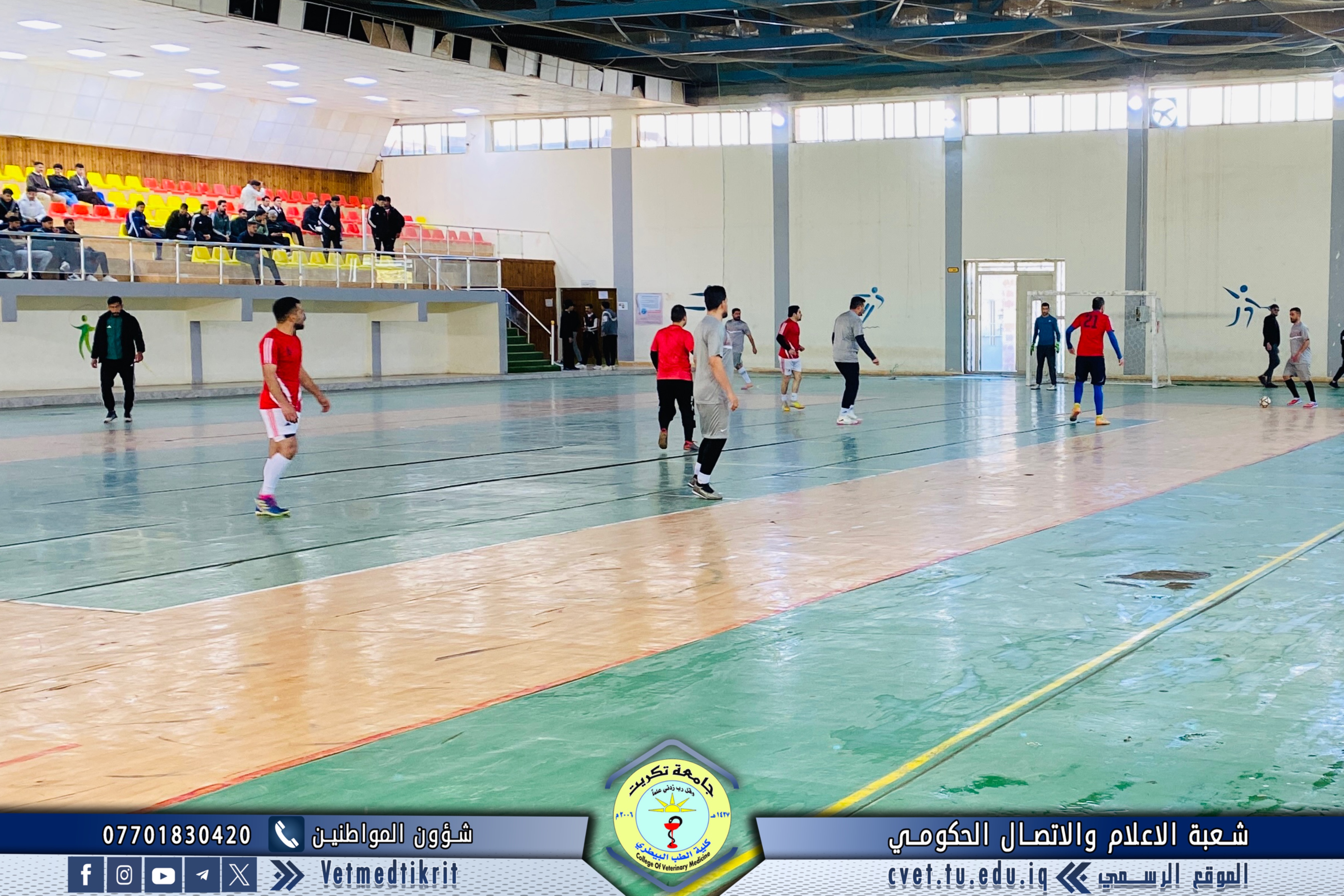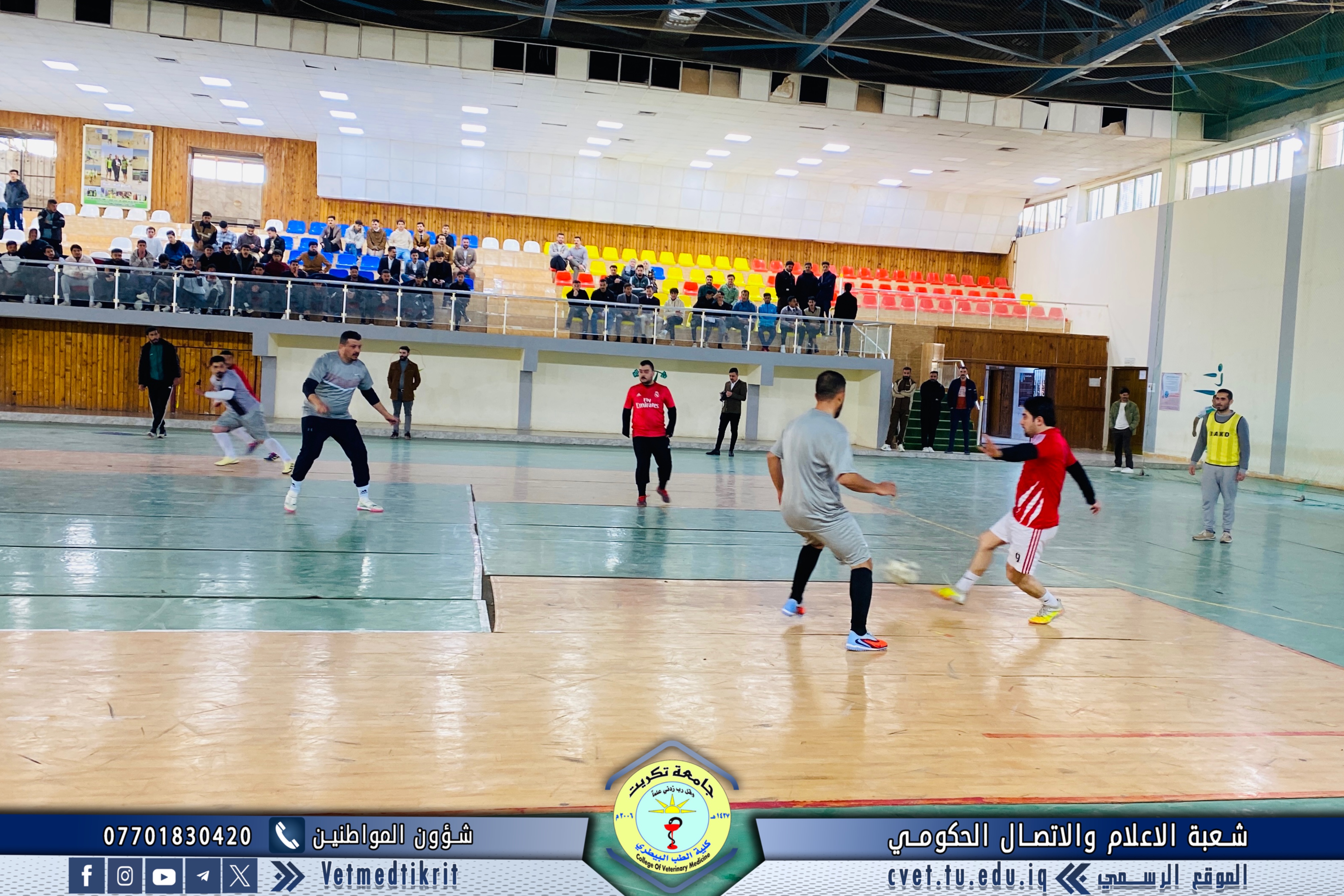 The College of Veterinary Medicine five-a-side football team for teaching staff achieved its second victory over the team of the College of Physical Education and Sports Sciences with a score of (3–2), as part of the quarterfinal round of the Tikrit University President’s Five-a-Side Football League for teaching staff.