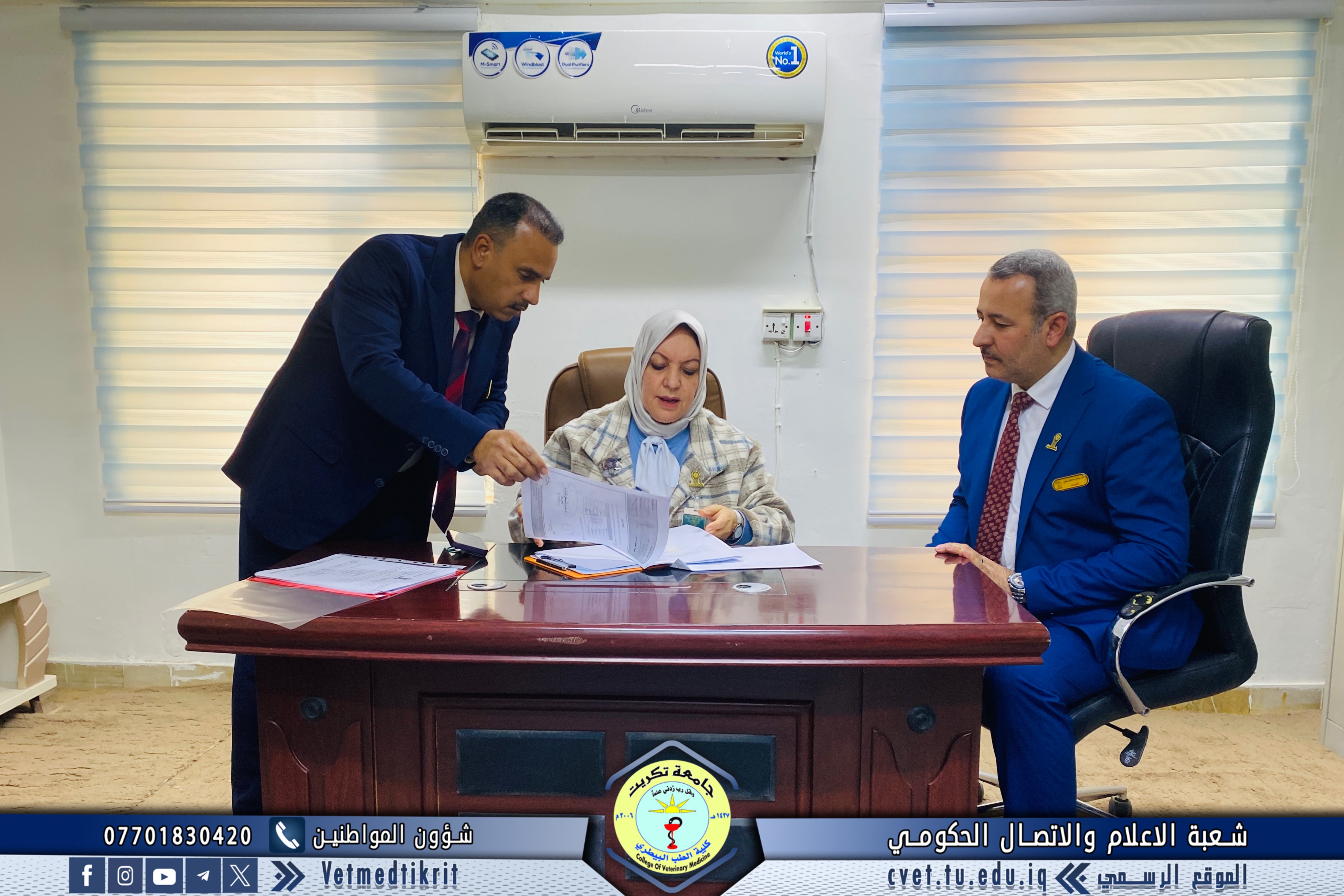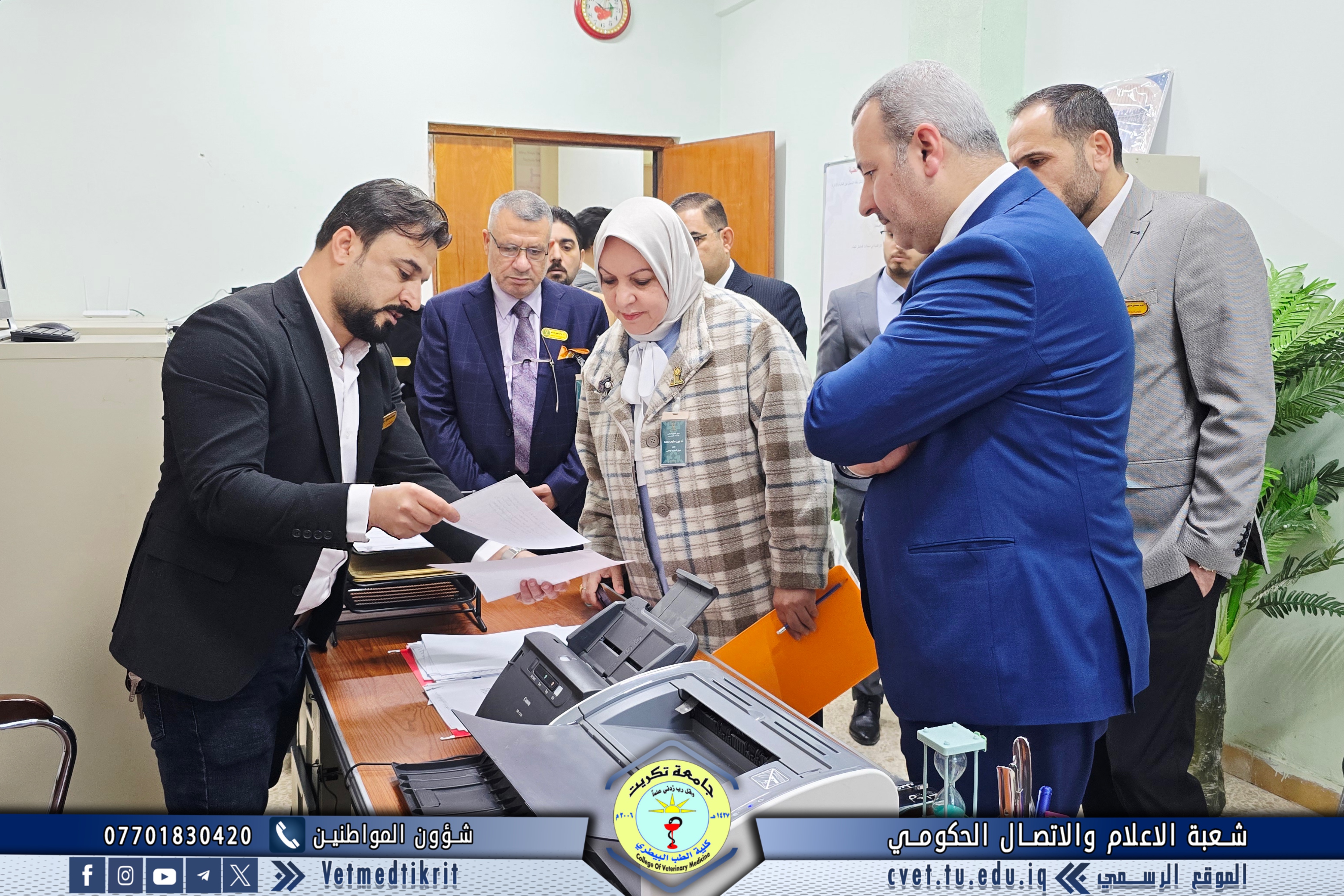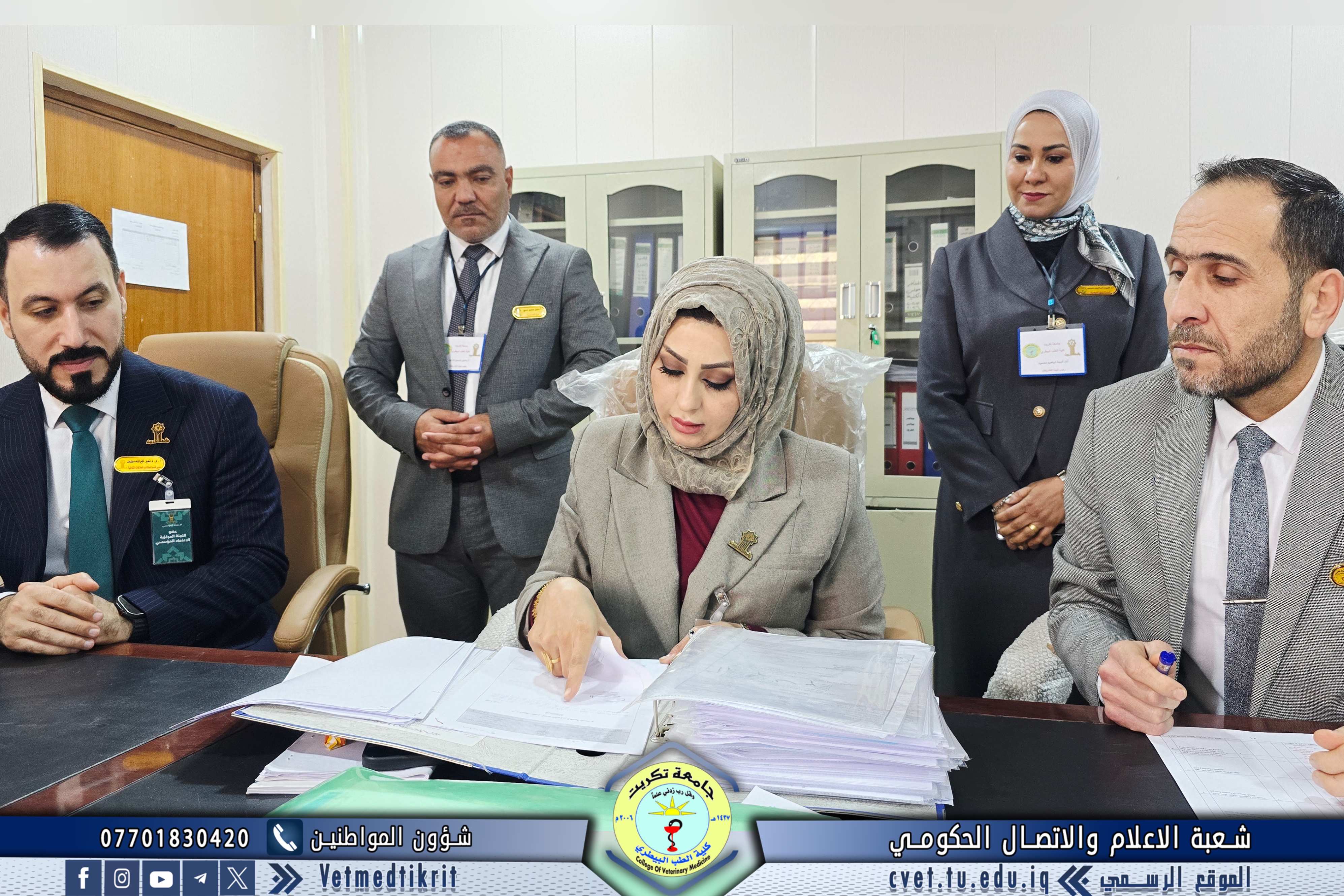 The College of Veterinary Medicine at Tikrit University received the ministerial evaluation team for institutional accreditation as part of the procedures to follow up on the university’s institutional accreditation requirements. The team was welcomed by Prof. Dr. Bashar Sadiq Nomi, Dean of the College, along with the Vice Deans and Heads of the academic departments.