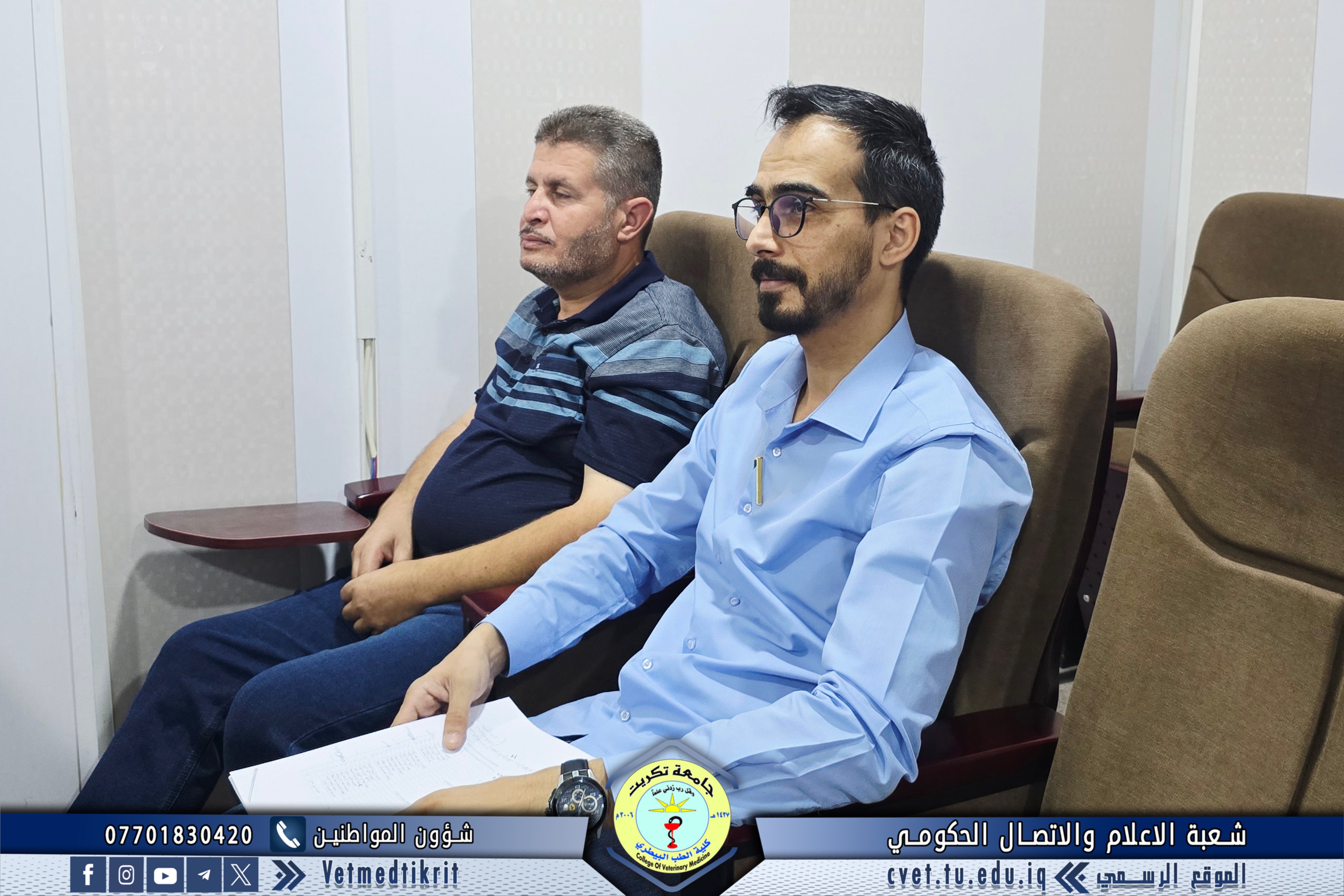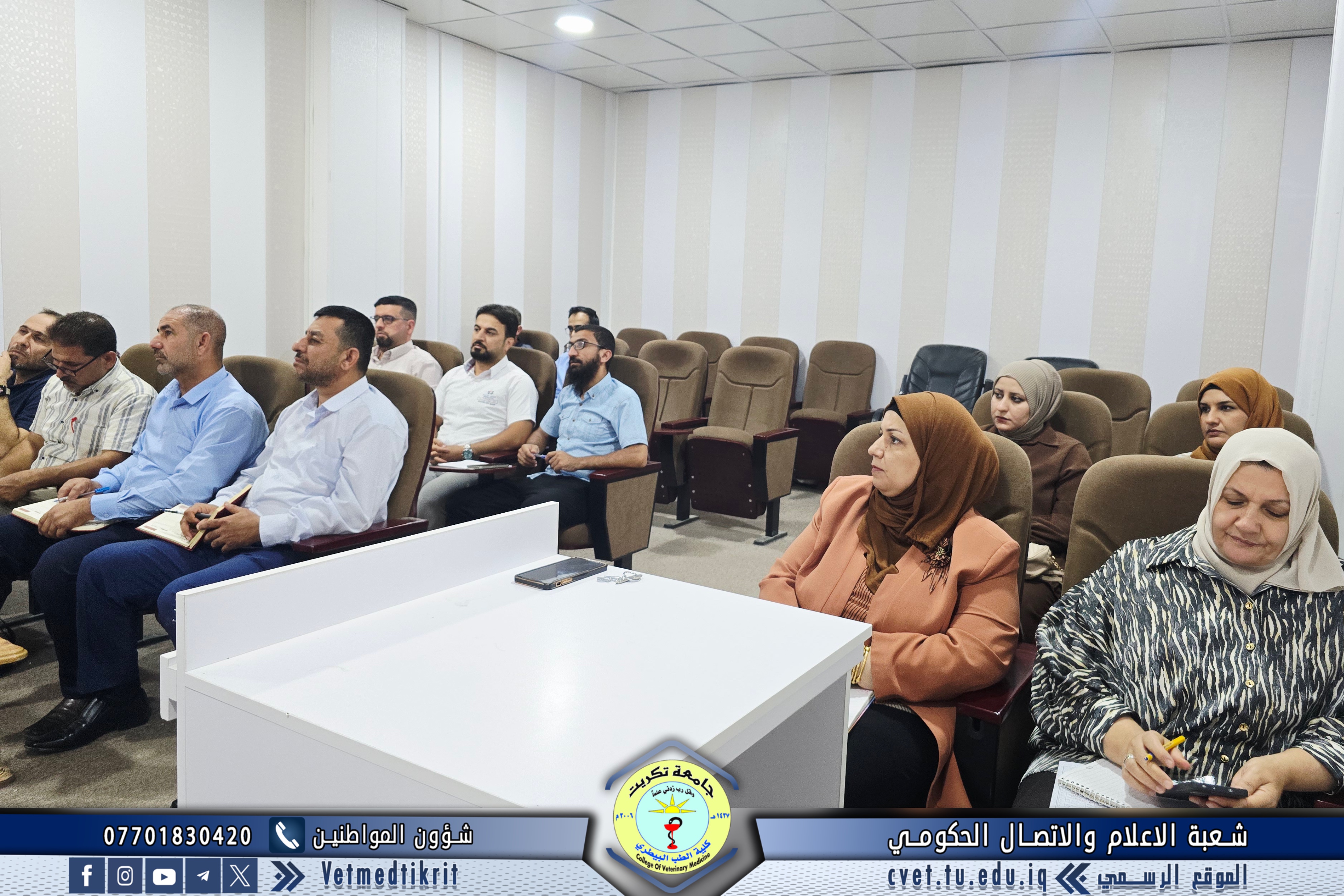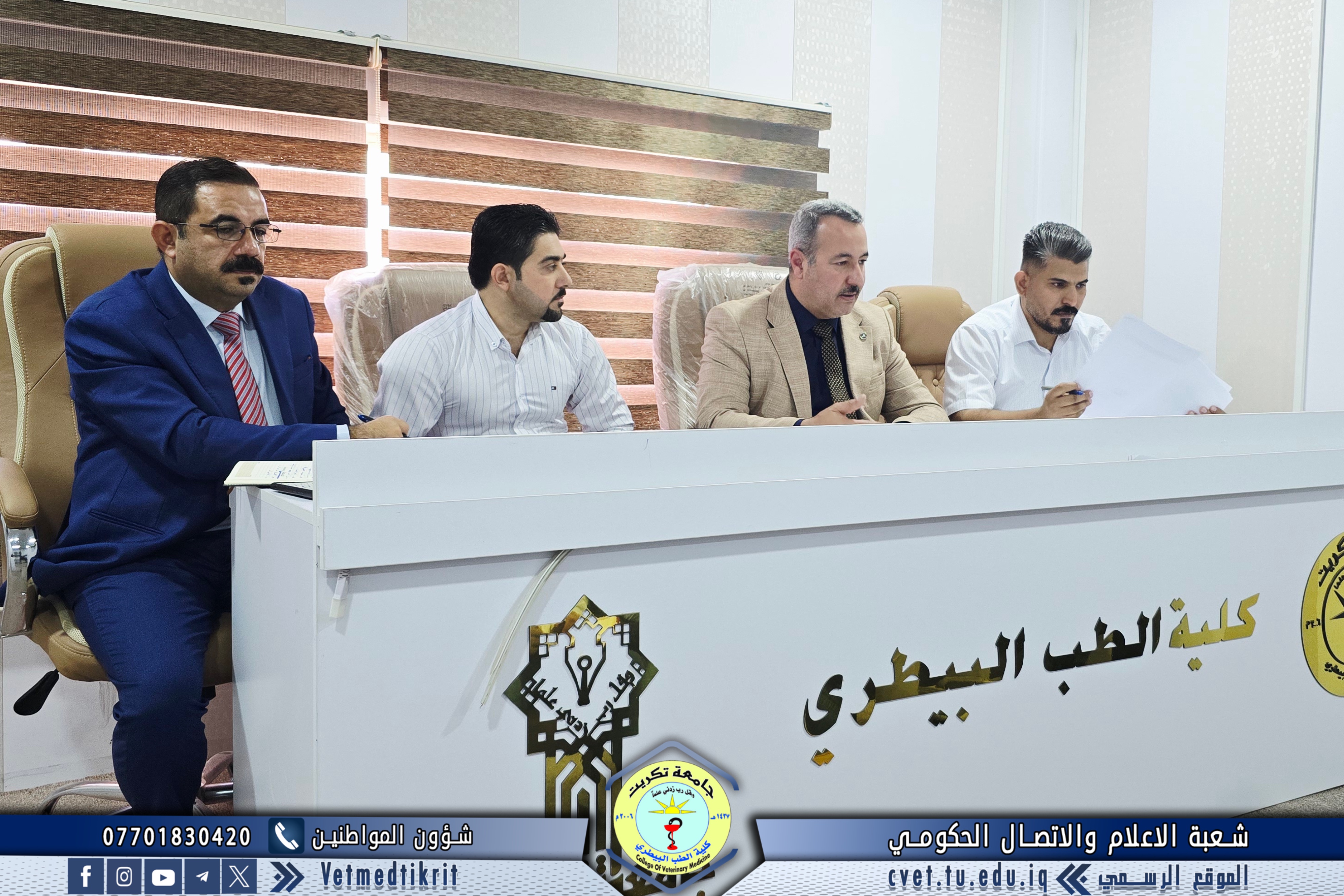 Professor Dr. Bashar Sadiq Noumi, Dean of the College of Veterinary Medicine, chaired an expanded meeting with the heads of academic departments and divisions at the college. The meeting was attended by Assistant Professor Dr. Montaser Mohammed Hilal, Assistant Dean for Academic Affairs; Assistant Professor Saad Sabbar Nassif, Secretary of the College Council; and Assistant Lecturer Montaser Mohammed Neda, Director of the Administrative Affairs Division. The meeting discussed several important topics for the start of the new academic year, most notably: emphasizing commitment to and organization of official working hours; assigning a number of faculty and administrative staff members to tasks in divisions, units, and laboratories; and monitoring administrative and organizational aspects to ensure smooth workflow and achieve the best results. This meeting comes within the framework of the Deanship of the College's commitment to strengthening discipline and improving the level of academic and administrative performance, which will positively impact the college's educational and research progress.