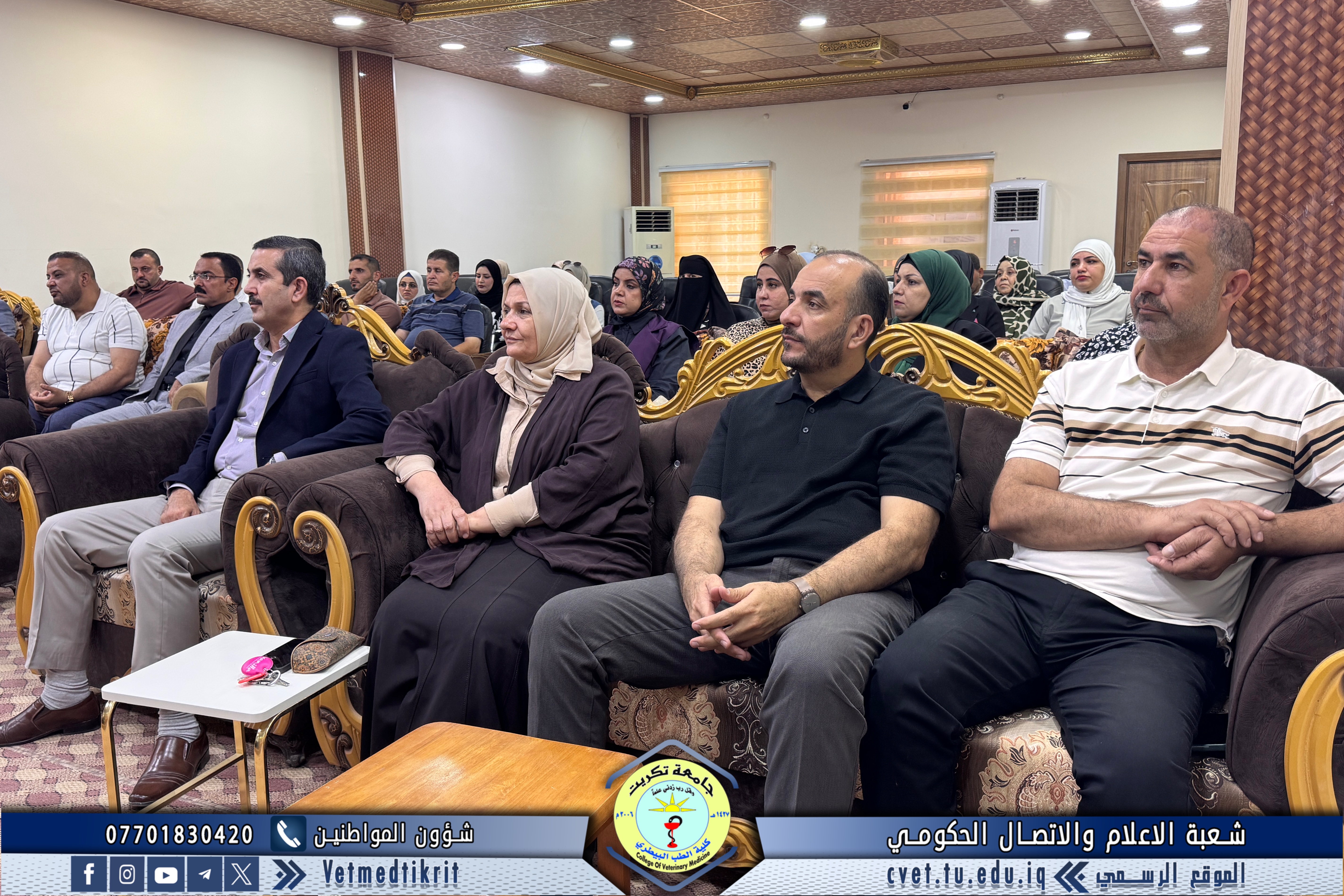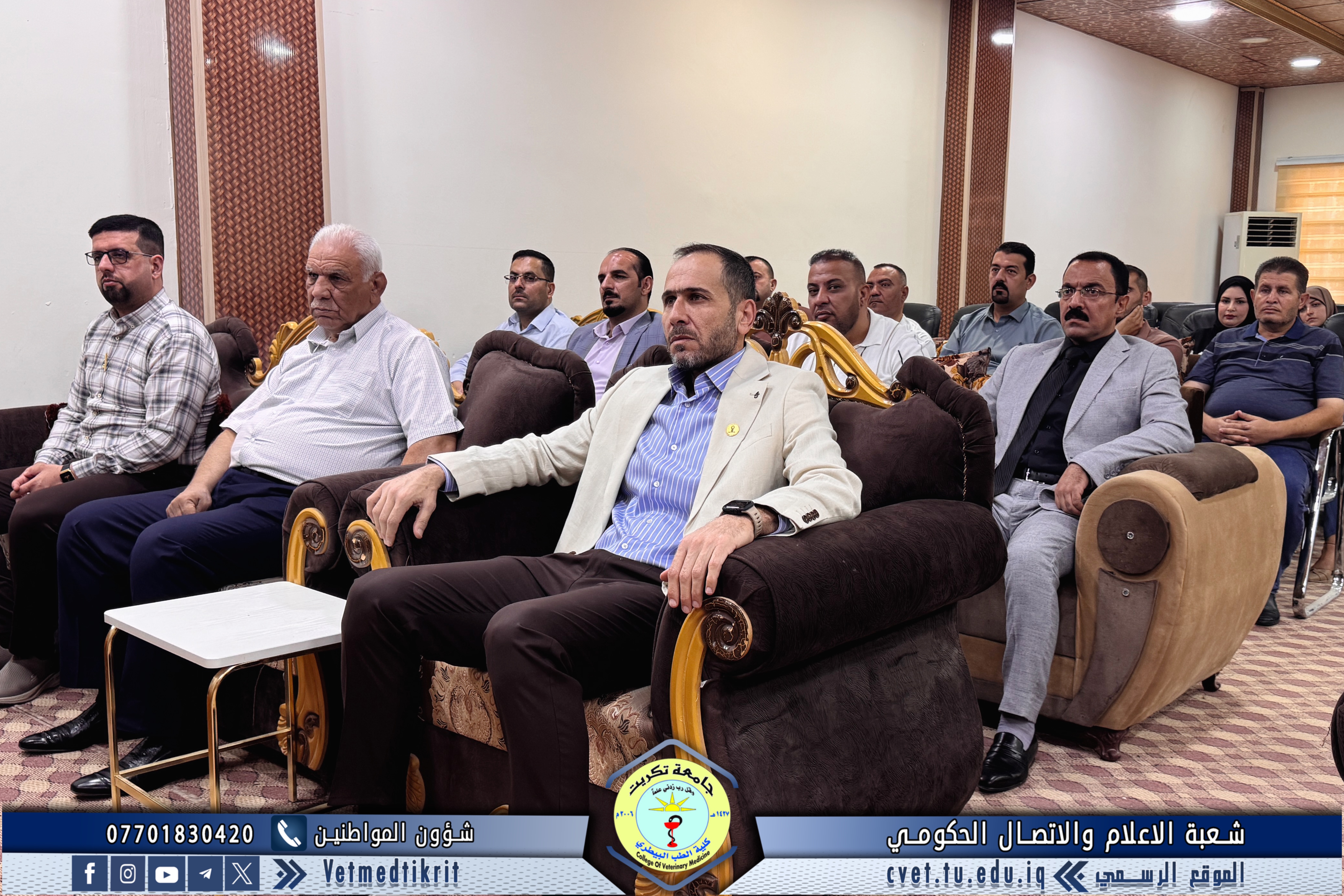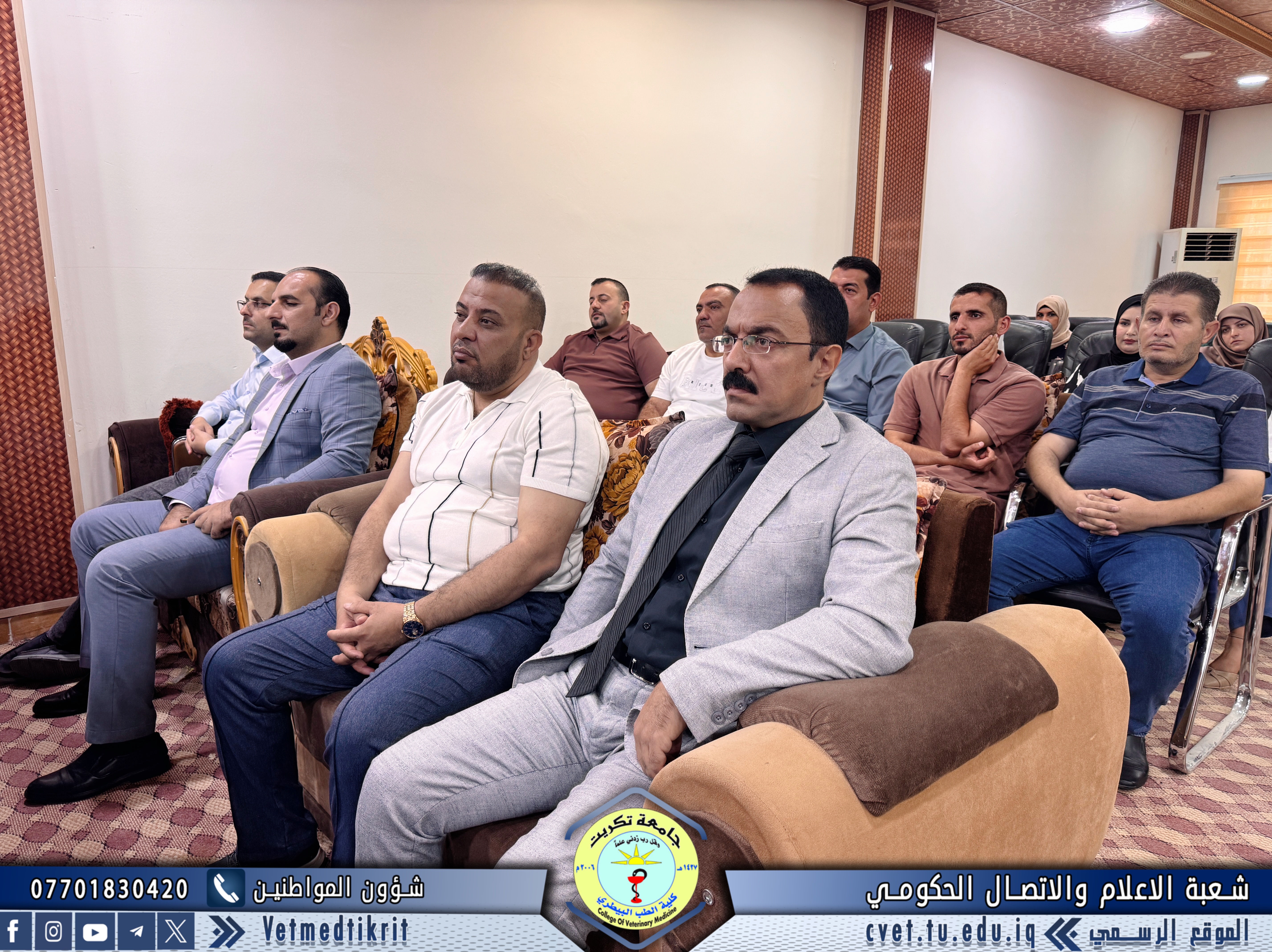 The Deanship of the College of Veterinary Medicine at Tikrit University held an expanded meeting with faculty members to mark the start of the new academic year. The meeting was attended by Professor Dr. Bashar Sadiq Noumi, Dean of the College; Assistant Professor Dr. Muntaser Muhammad Hilal, Assistant Dean for Academic Affairs; Assistant Professor Dr. Osama Hamid Shihab, Assistant Dean for Administrative Affairs; and Assistant Professor Saad Sabbar Nassif, Secretary of the College Council. The Dean began the meeting with a speech welcoming the faculty, wishing them a successful and productive academic year. He emphasized the importance of cooperation and teamwork to advance the college's academic and scientific level. The meeting addressed several important topics, most notably: dividing lectures to achieve a balance between theoretical and practical requirements; emphasizing the importance of enhancing the practical and applied aspects of lectures to provide students with the necessary experience and skills; discussing mechanisms for implementing institutional accreditation standards and ensuring the quality of education; and examining some administrative and organizational aspects related to the progress of the educational process. At the conclusion of the meeting, the Dean emphasized the need to redouble efforts to achieve a distinguished academic year that contributes to providing society with solid scientific competencies capable of serving the veterinary medicine sector.