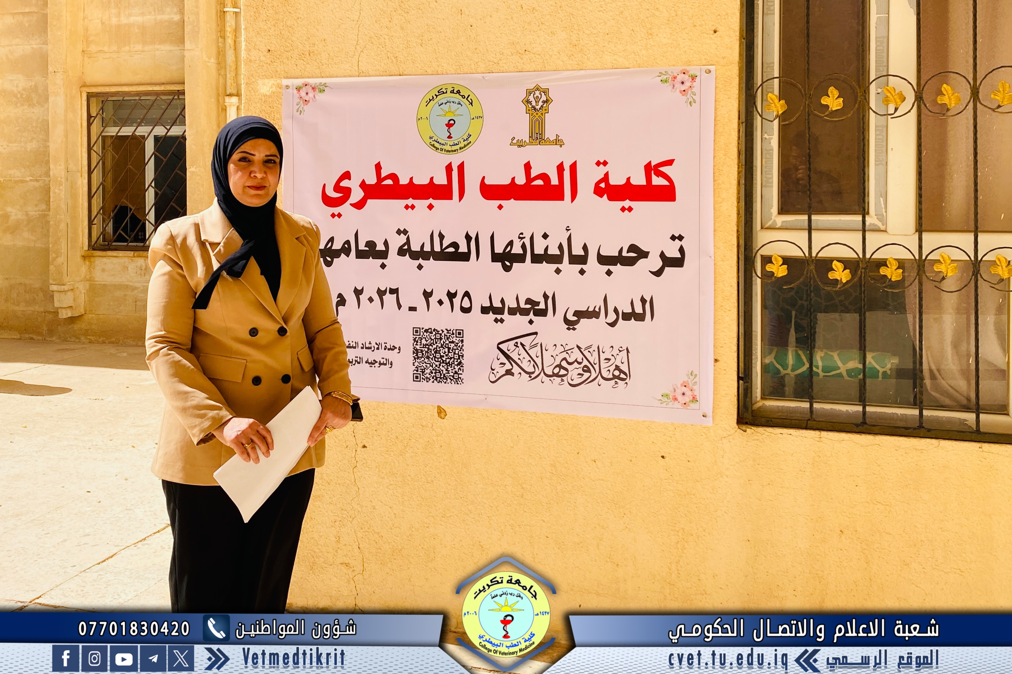 As part of its mission to support students both academically and psychologically, the Psychological Counseling and Educational Guidance Unit at the College of Veterinary Medicine – University of Tikrit has launched an awareness campaign titled “Getting Ready for the New Academic Year.” The campaign included the distribution of informational brochures designed to encourage students to begin their studies with motivation, focus, and effective organization.