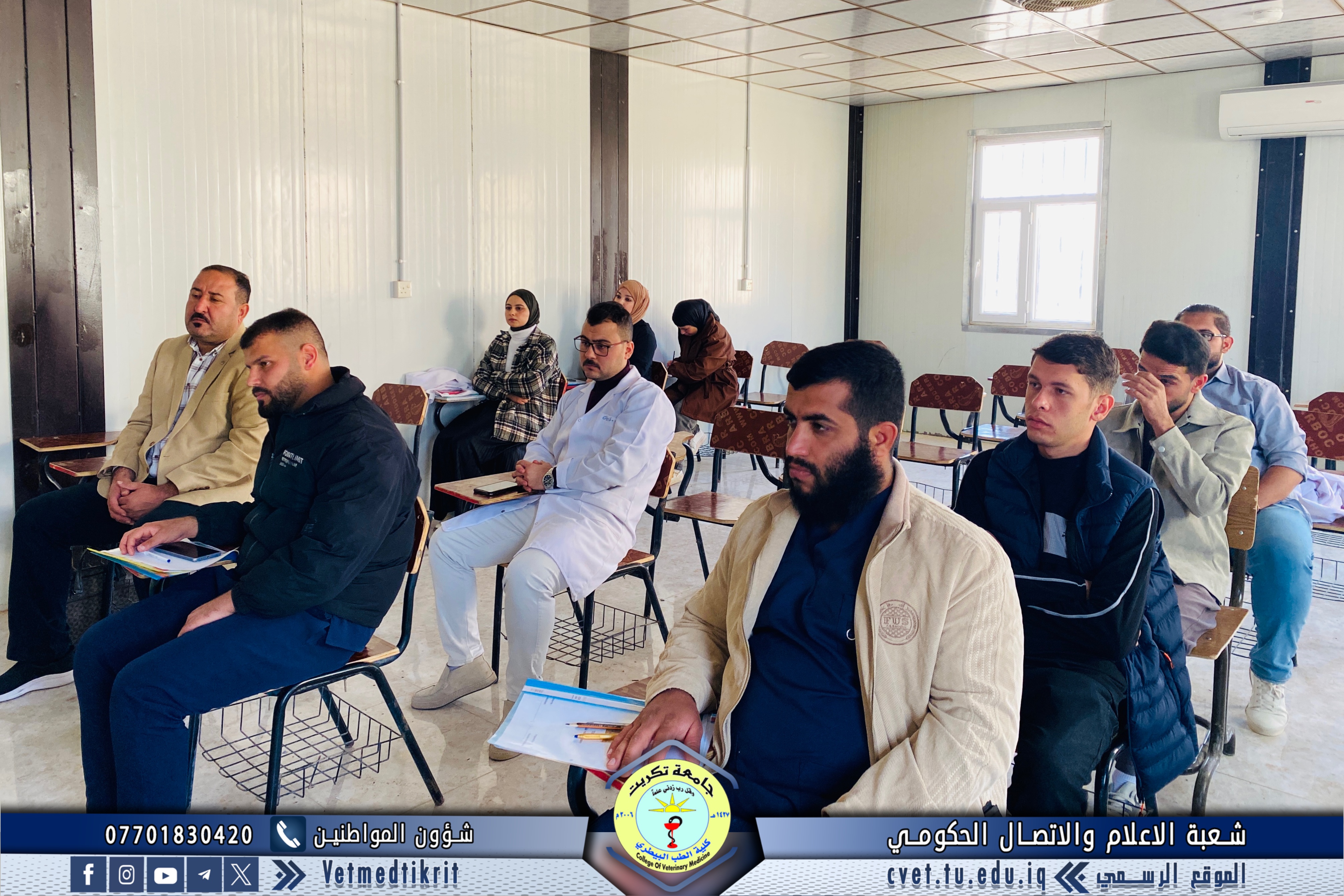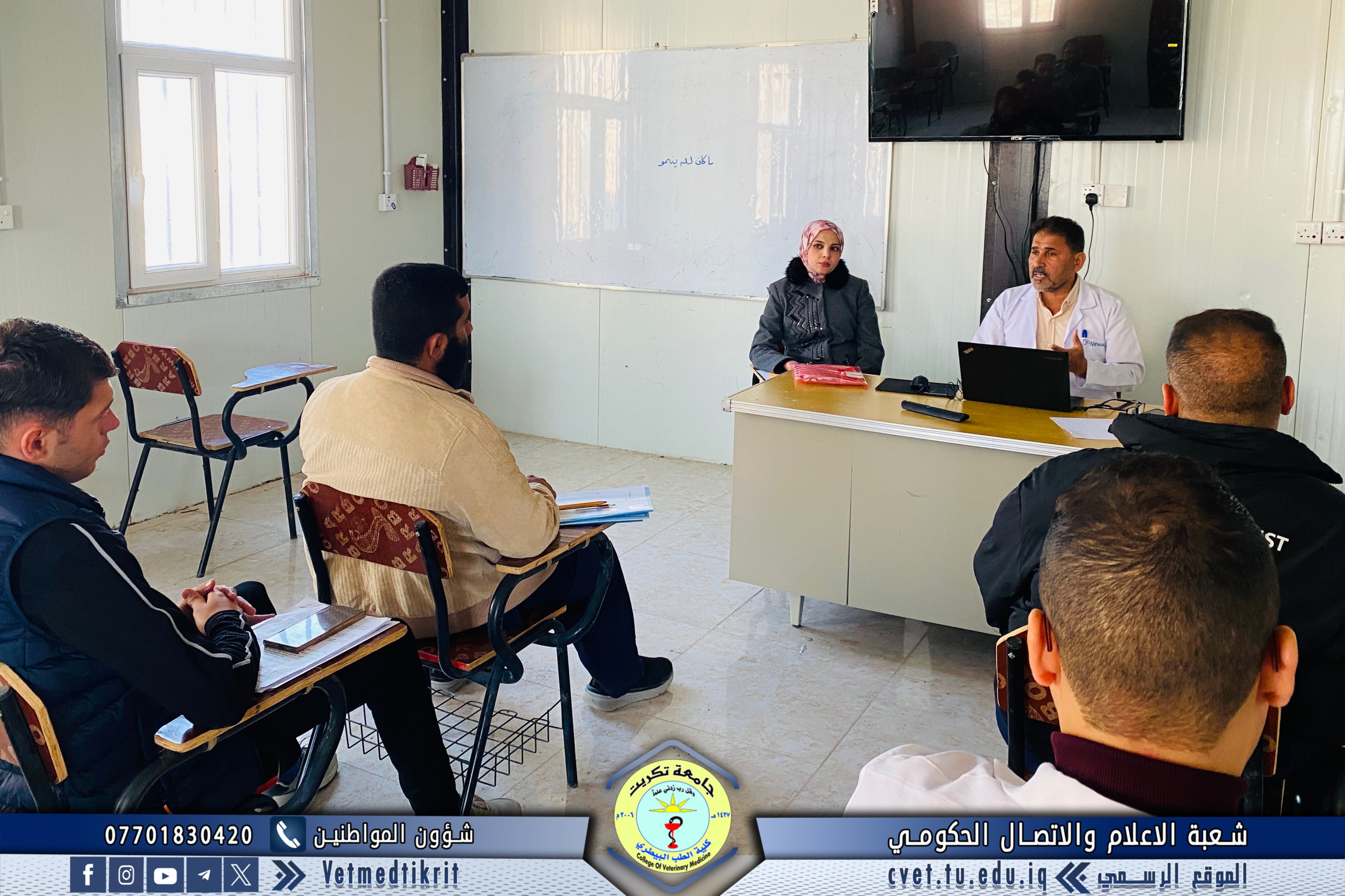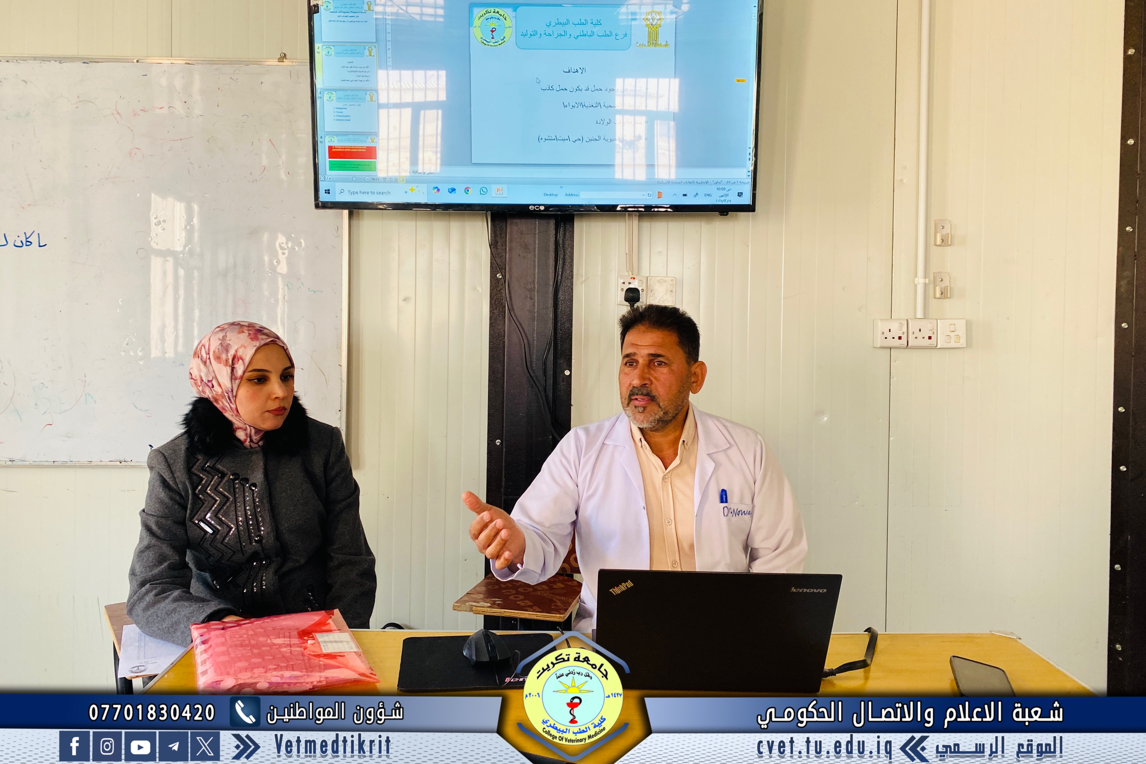 Under the patronage of the College of Veterinary Medicine and in cooperation with the Continuing Education Center at the University of Tikrit, a scientific workshop titled “Pregnancy Diagnosis in Farm Animals” was held, delivered by Asst. Prof. Dr. Nawaf Noreddin Dhahir and Asst. Lecturer Manar Sabah Issa from the Department of Internal Medicine, Surgery, and Obstetrics.