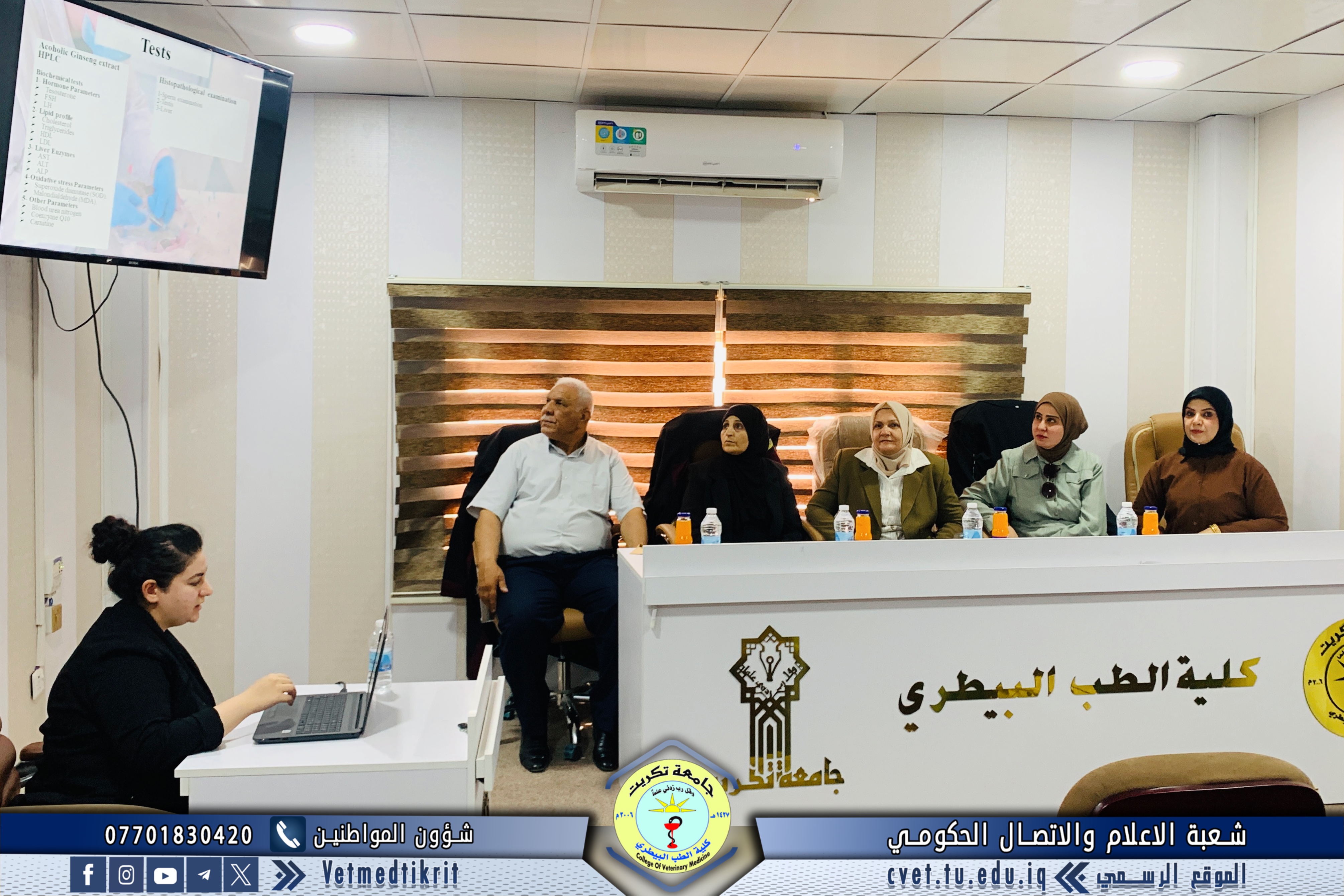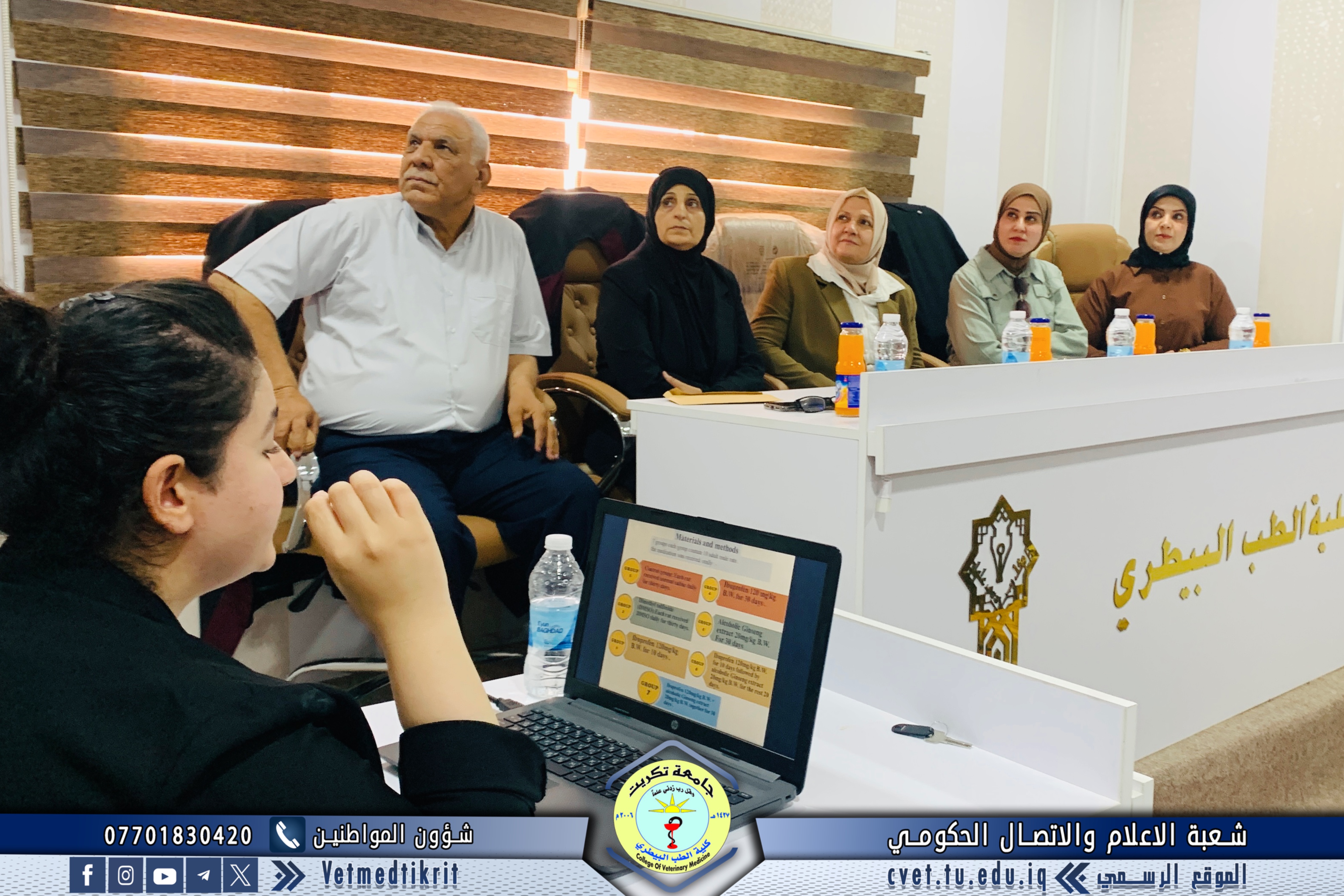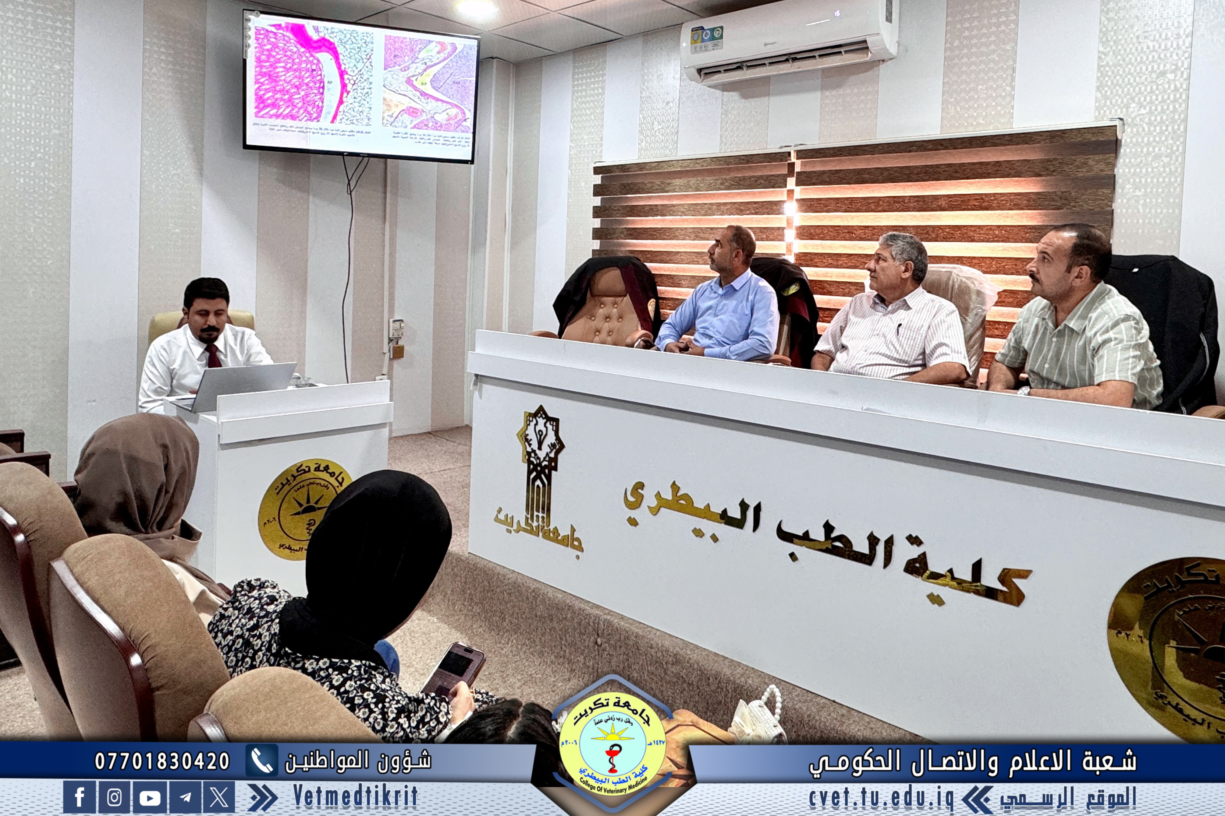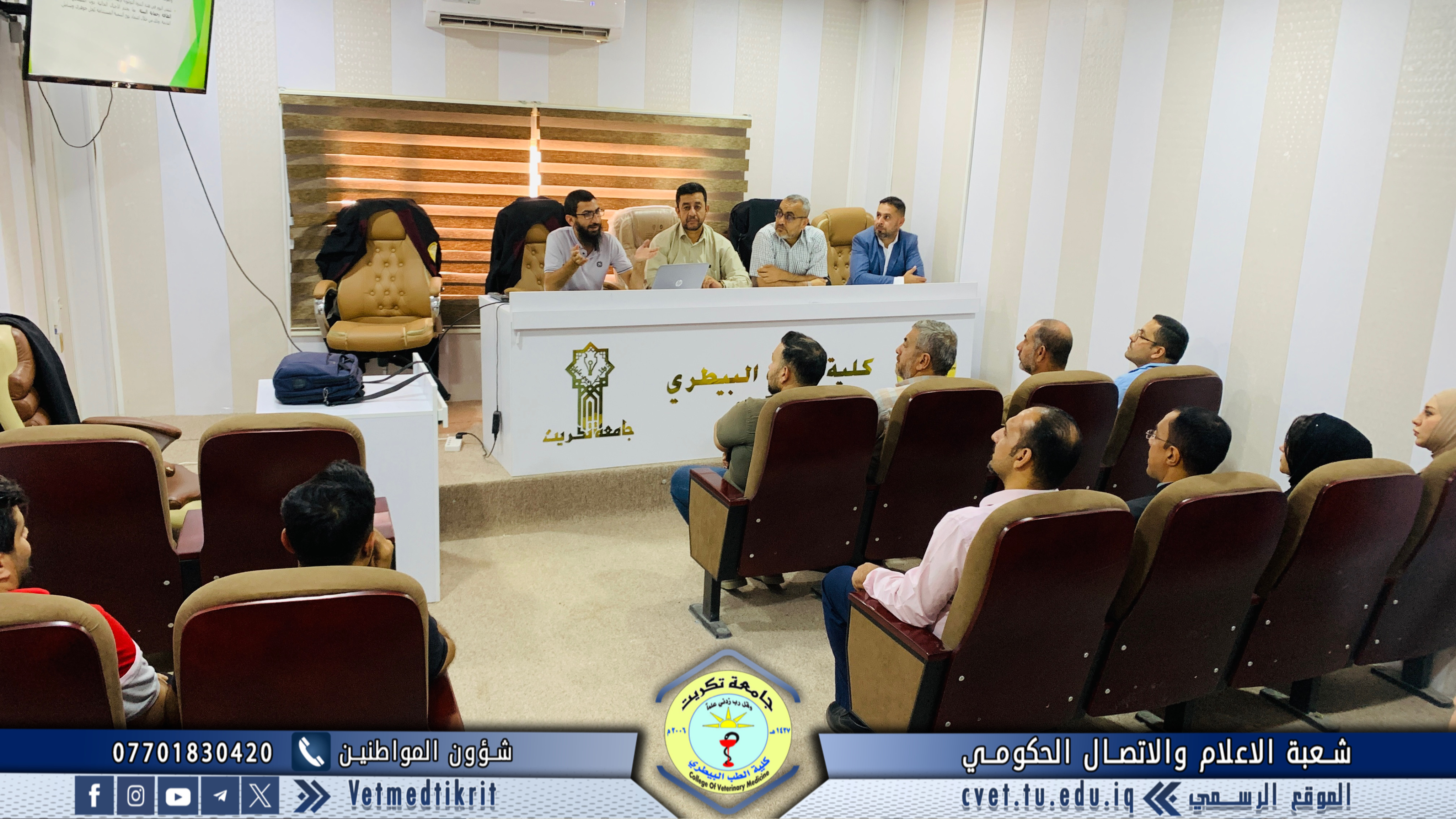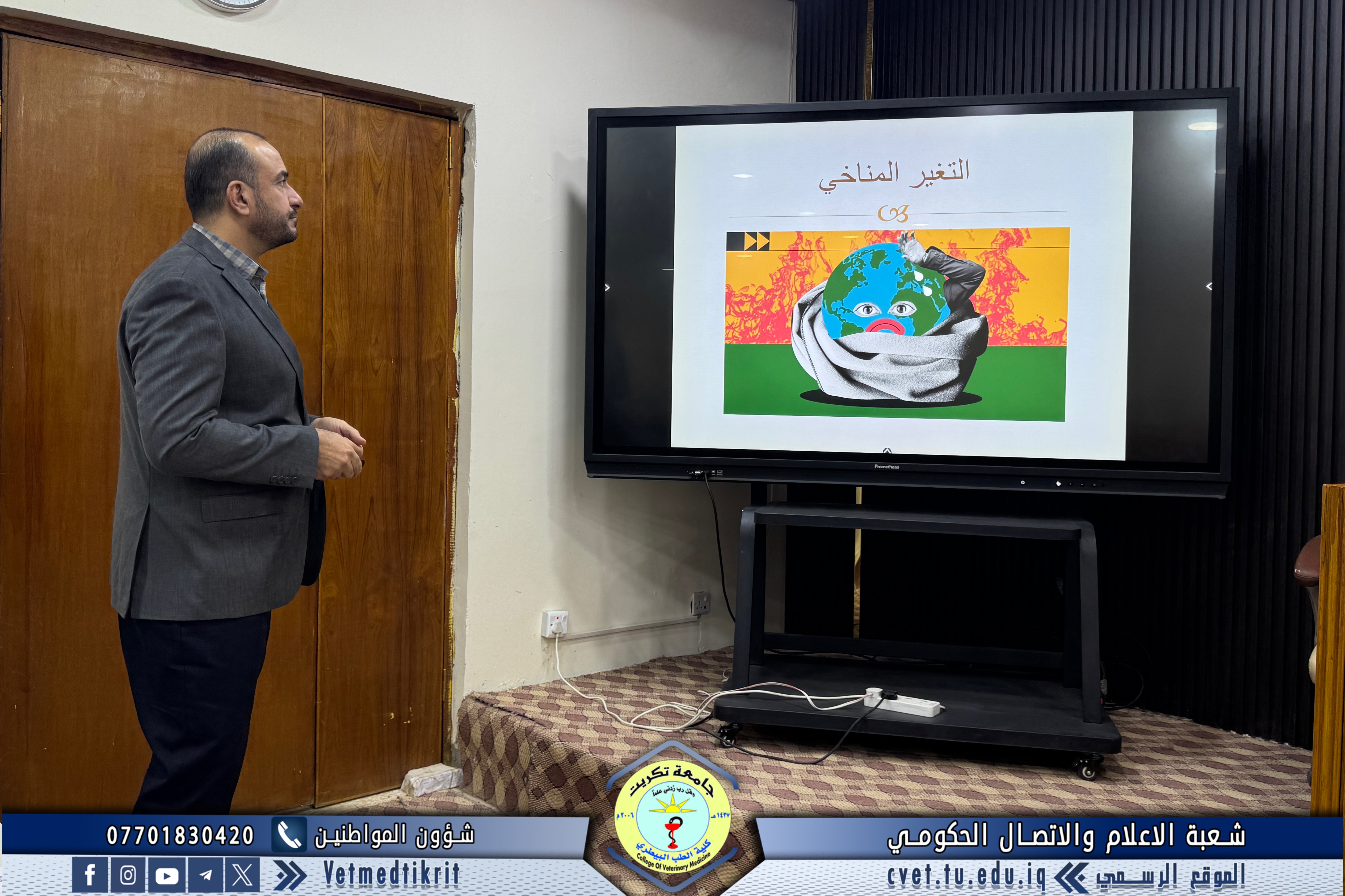 The College of Veterinary Medicine at the University of Tikrit, in cooperation with the Continuing Education Center, held a scientific seminar titled “Cows and Climate Change.” The seminar was delivered by Prof. Dr. Ziyad Tareq Omar and Assistant Lecturer Amer Ibrahim Ali.