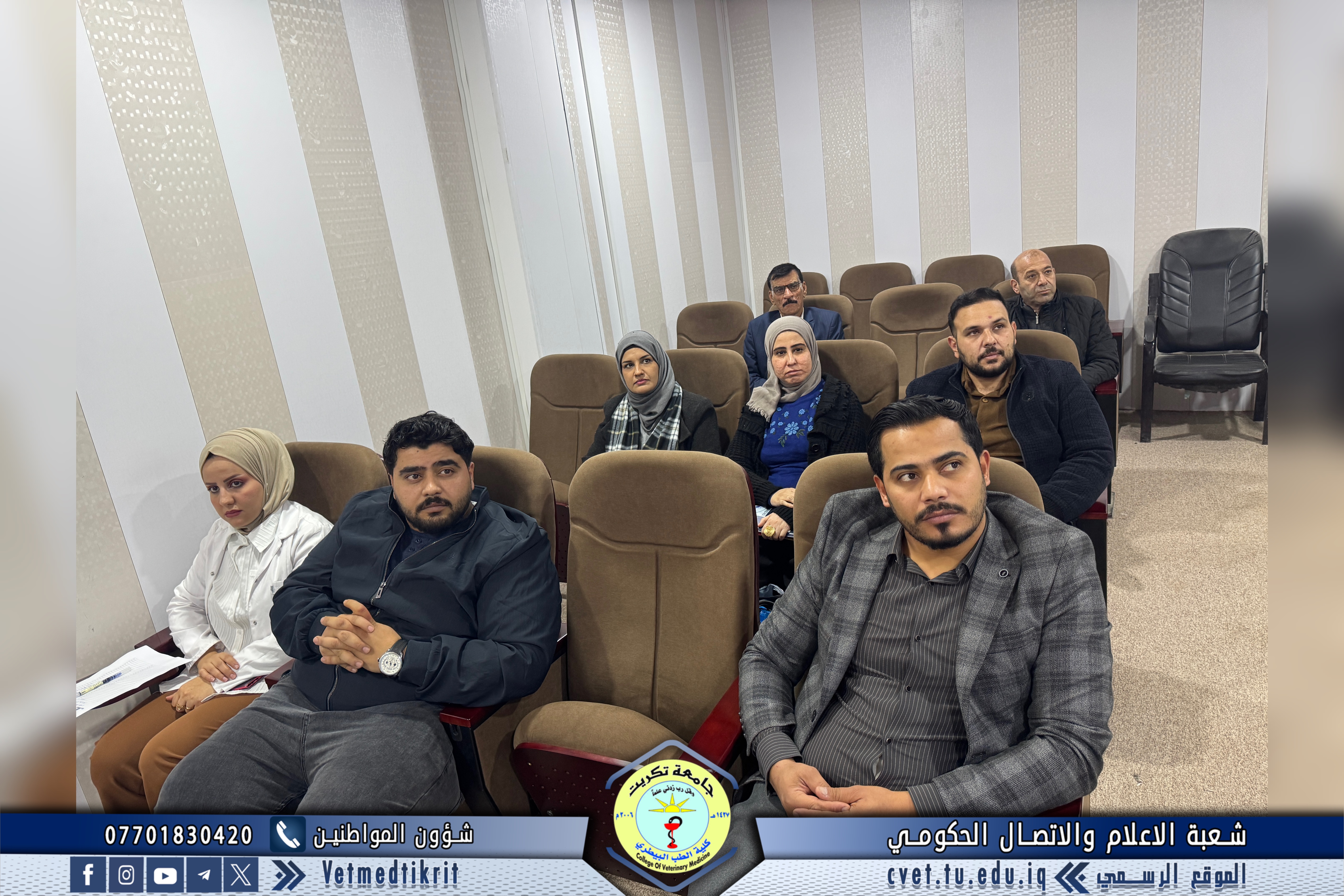 Under the patronage of the College of Veterinary Medicine and in cooperation with the Center for Continuing Education at the University of Tikrit, a scientific seminar titled “Artificial Intelligence” was held, presented by Veterinarian Mousa Dakheel Bahr and students Abdullah Alaa Mutlak and Haider Ali Essam.