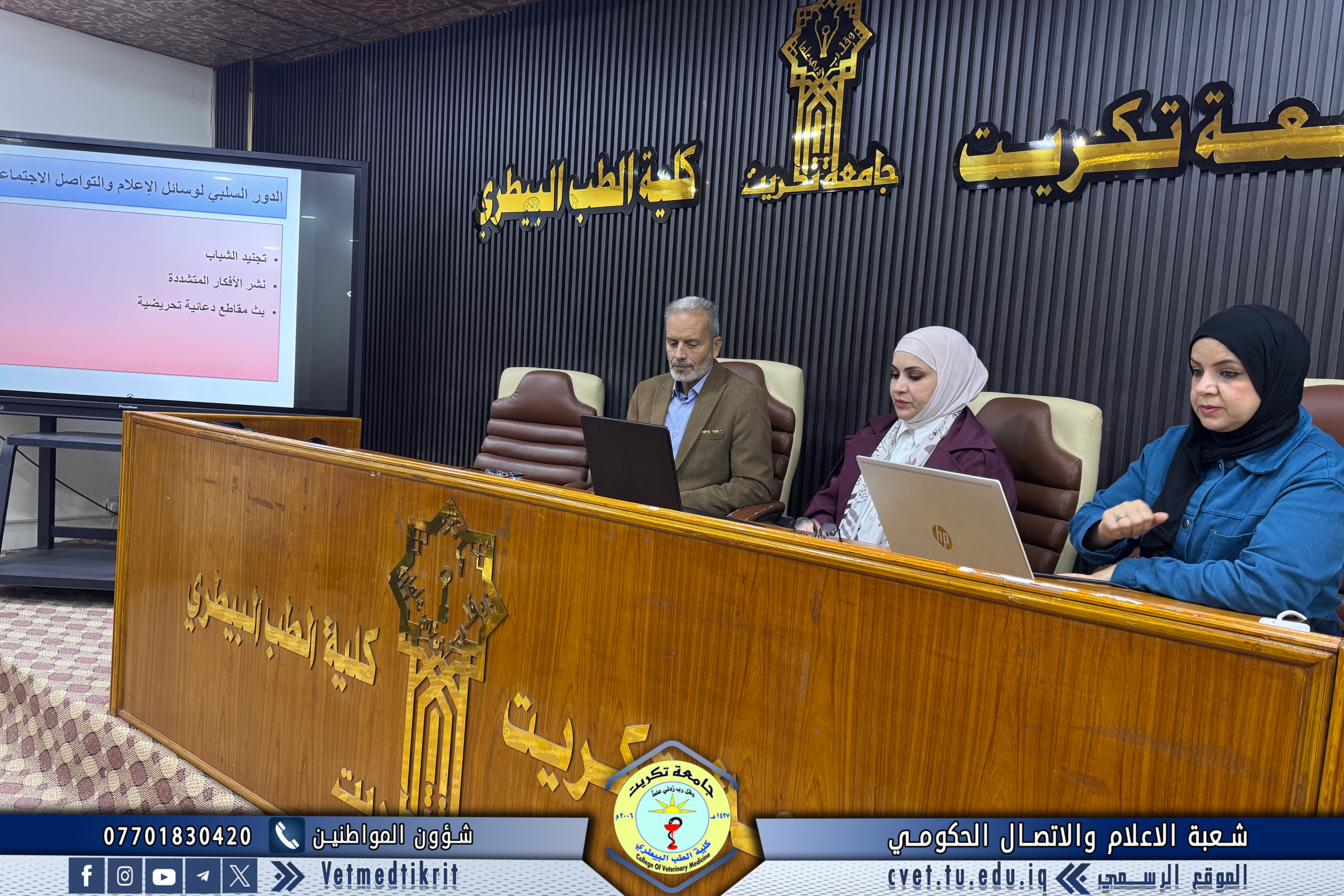 As part of the activities of the Global Entrepreneurship Week, and under the patronage of Professor Dr. Waad Mahmoud Raouf, President of Tikrit University, the Psychological Counseling and Educational Guidance Unit at the College of Veterinary Medicine, in cooperation with the College of Arts, organized a scientific seminar entitled “The Role of Media in Countering Violent Extremism and Reducing Its Impact on Individuals and Society.”