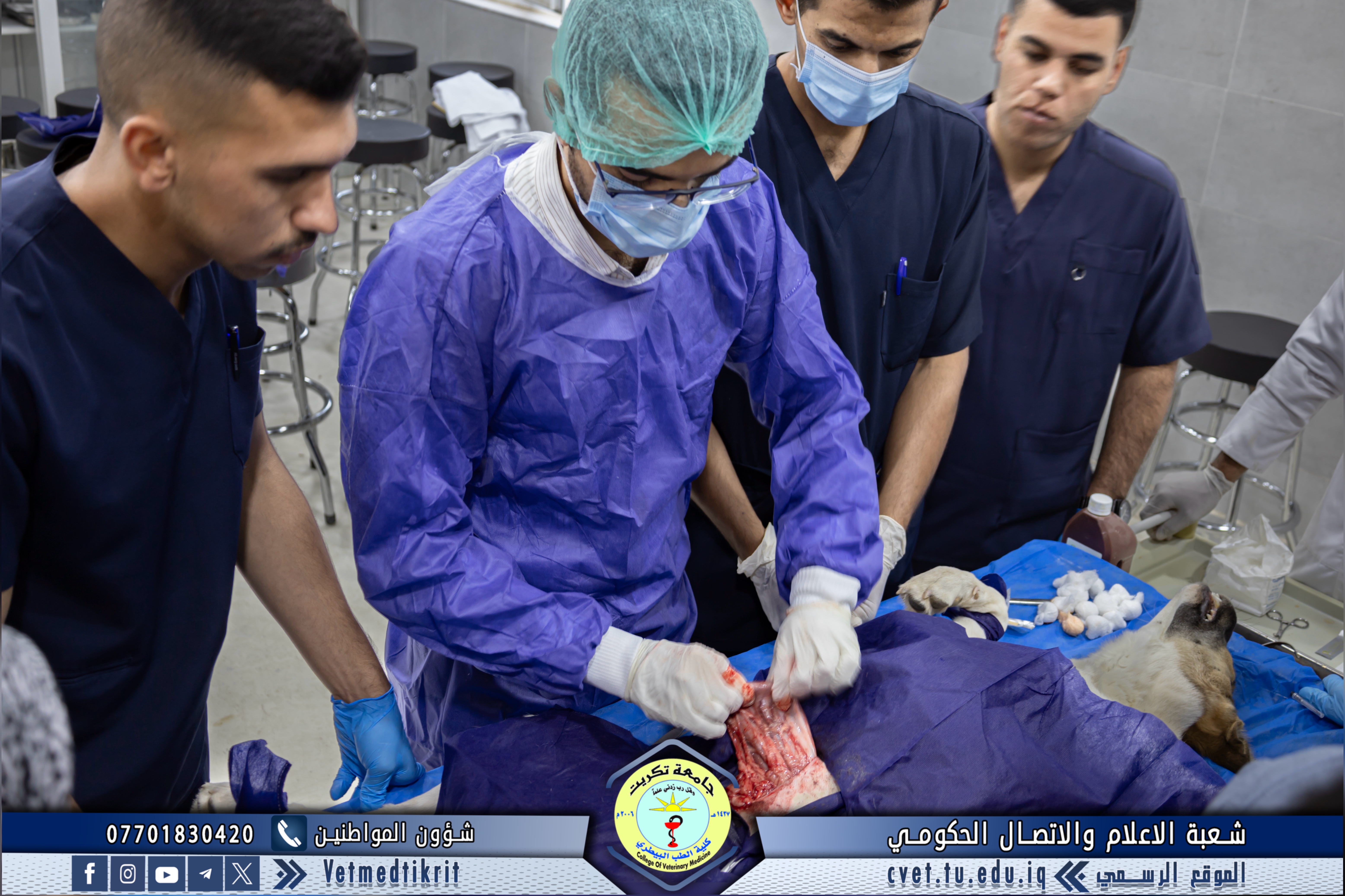 As part of the practical training program in Veterinary Surgery, fifth-year students at the College of Veterinary Medicine, University of Tikrit, carried out a splenectomy (removal of the spleen) procedure in dogs, under the supervision of Asst. Prof. Dr. Ali Ghazi Atiya at the college’s External Clinic Unit.