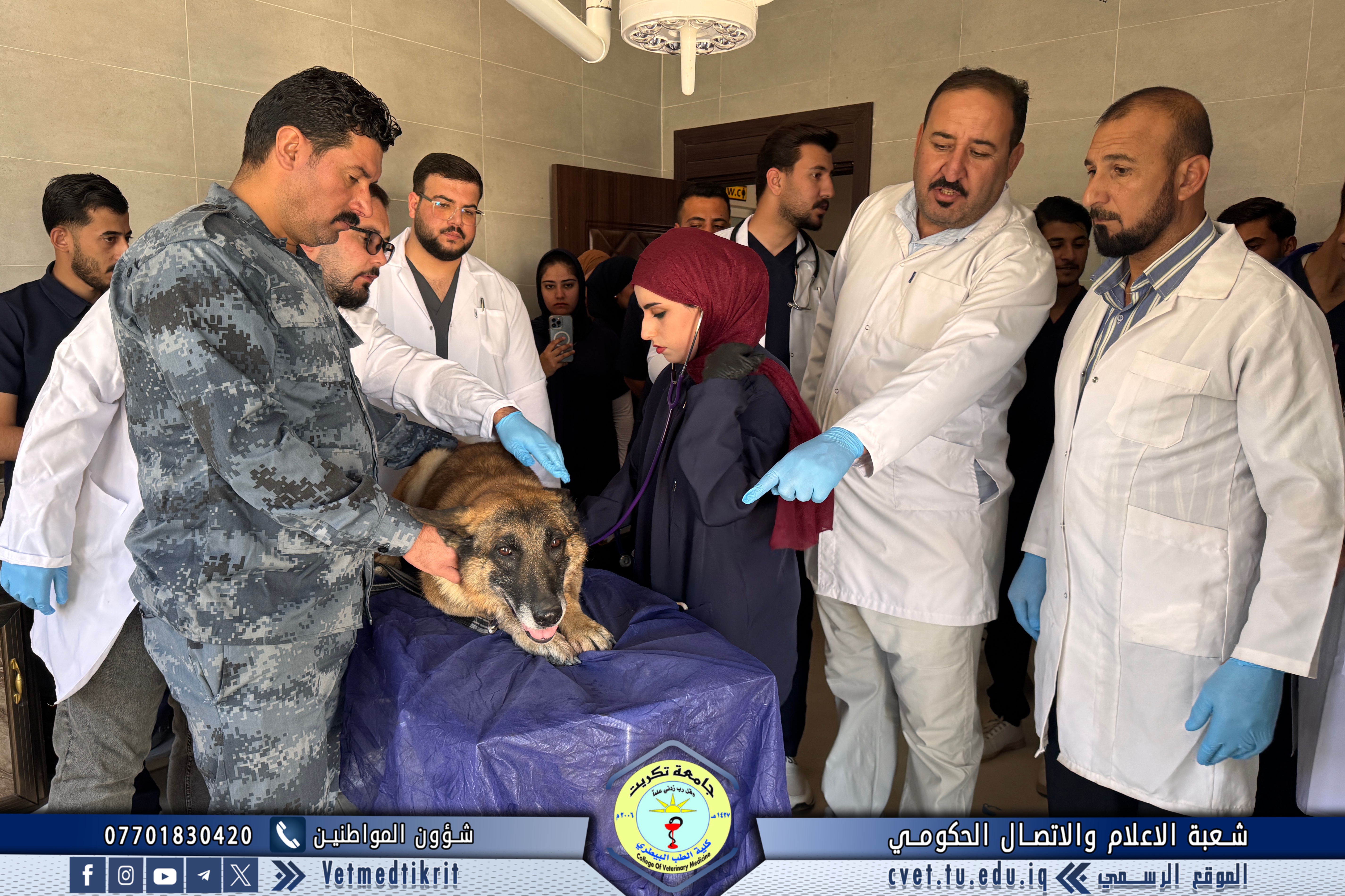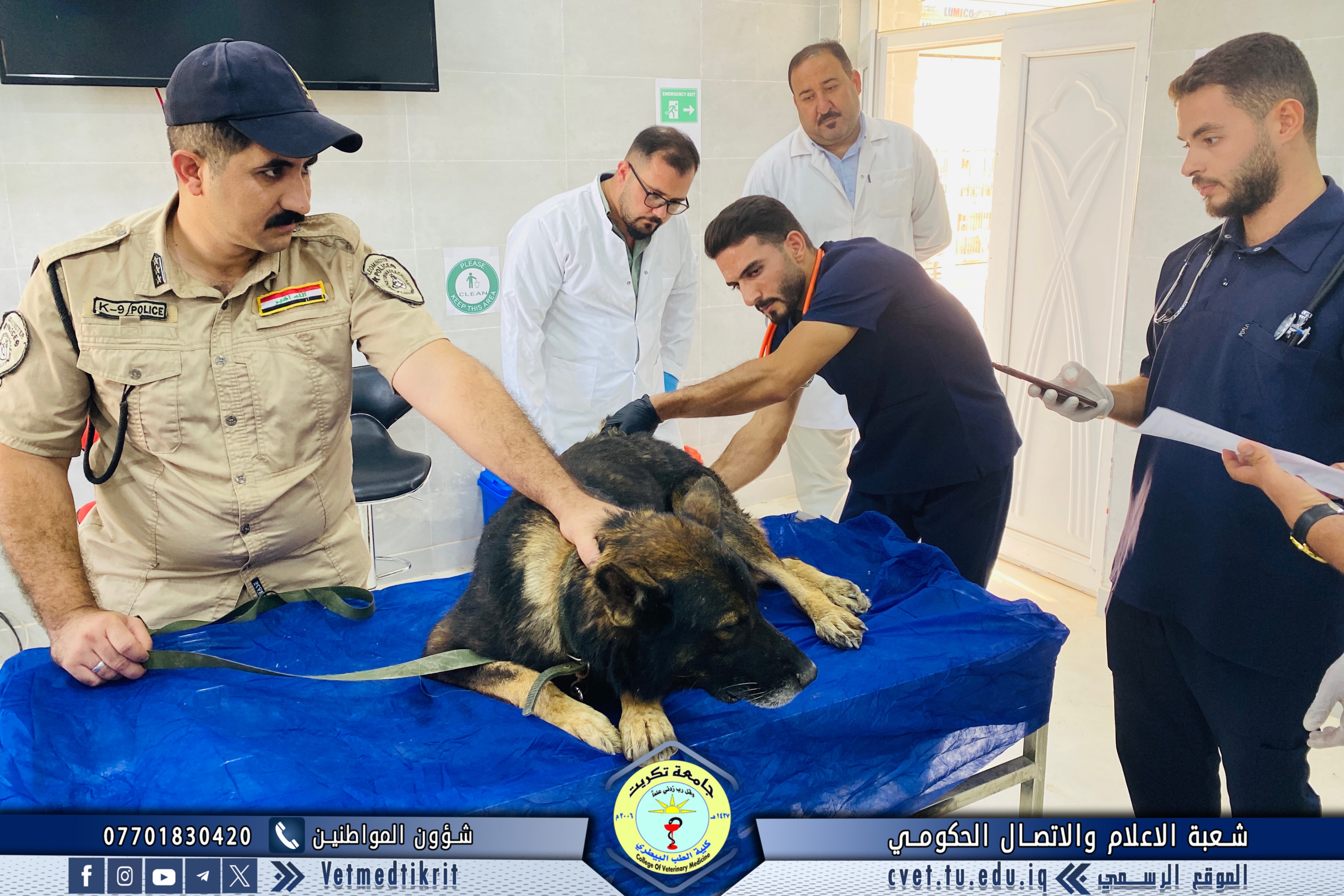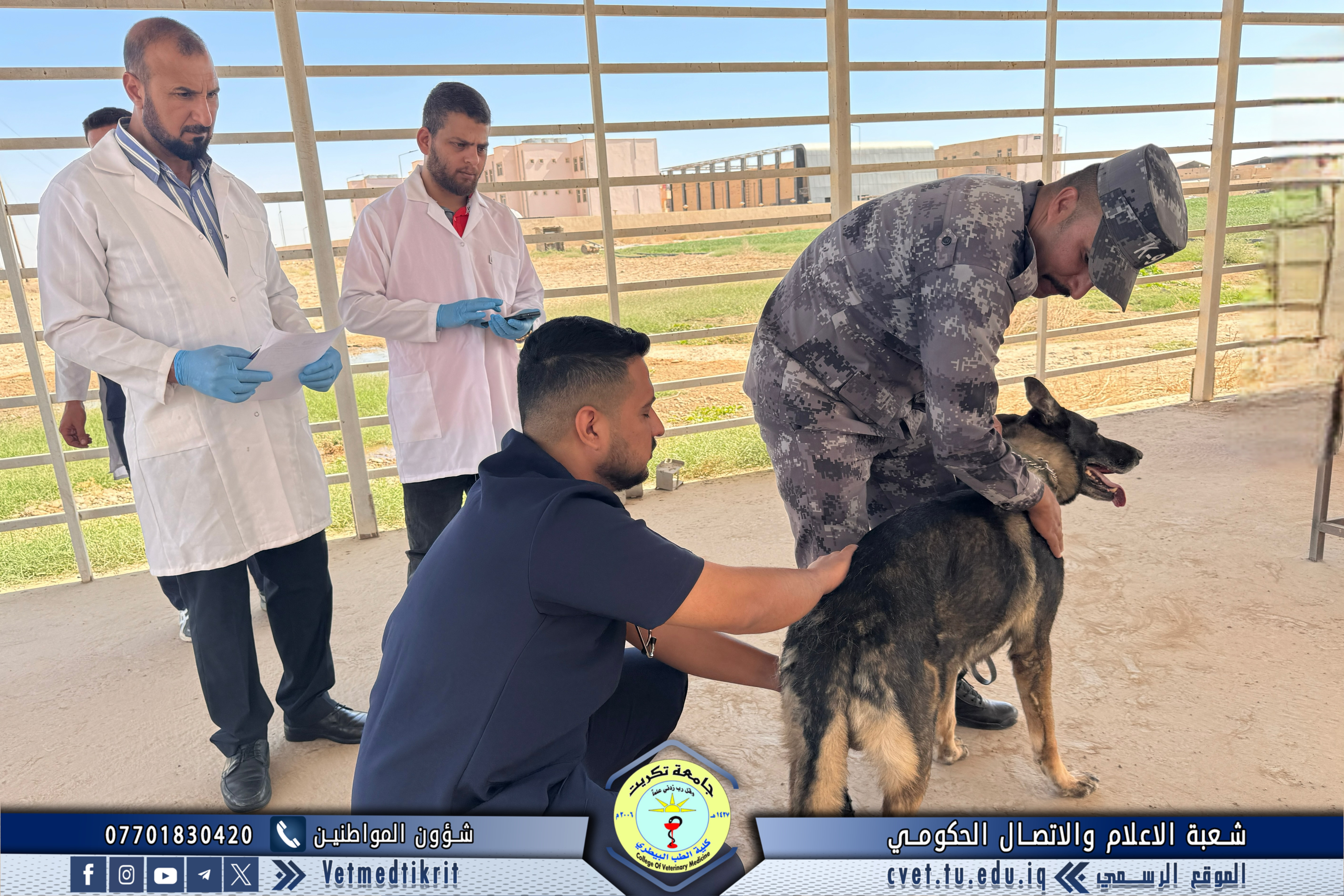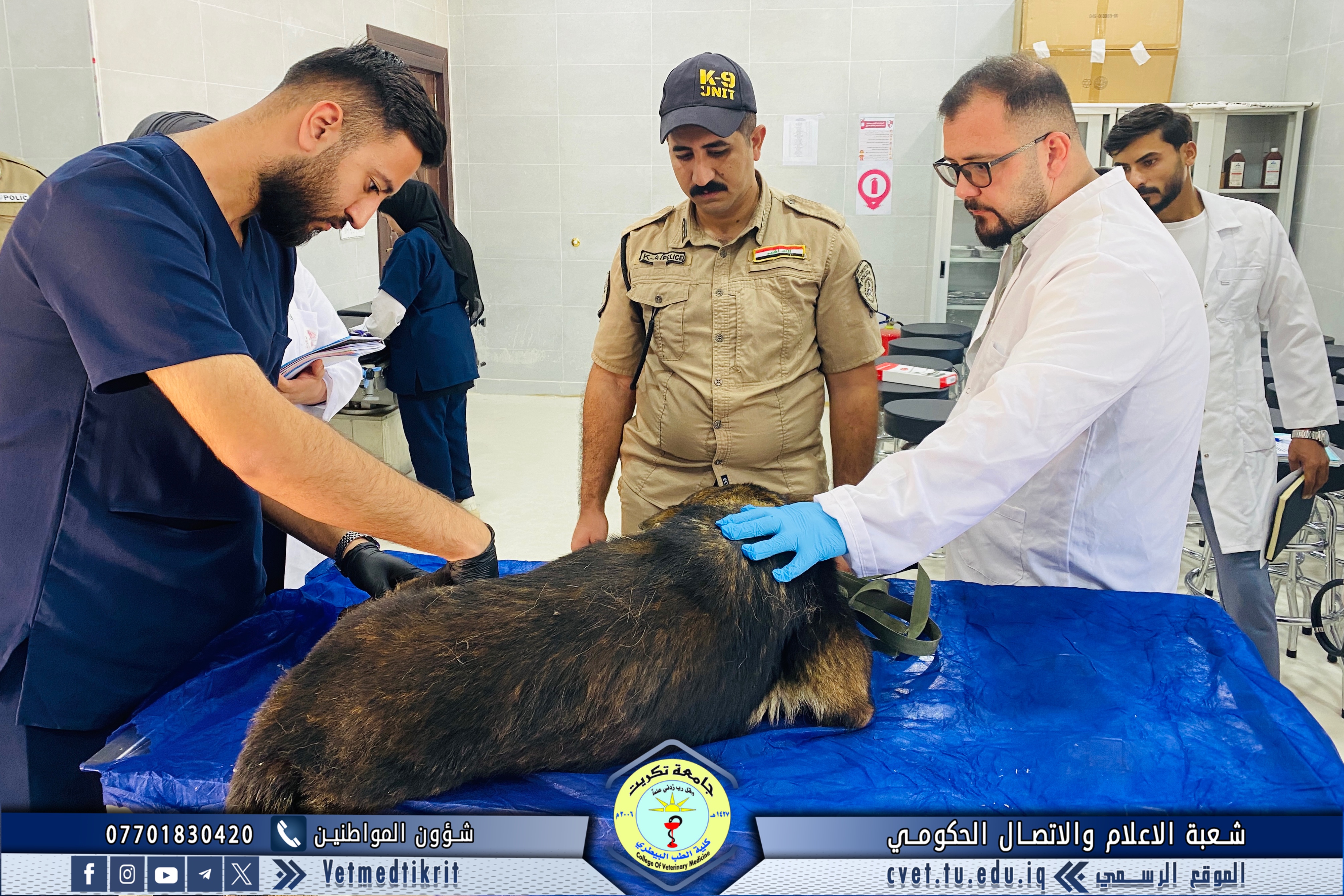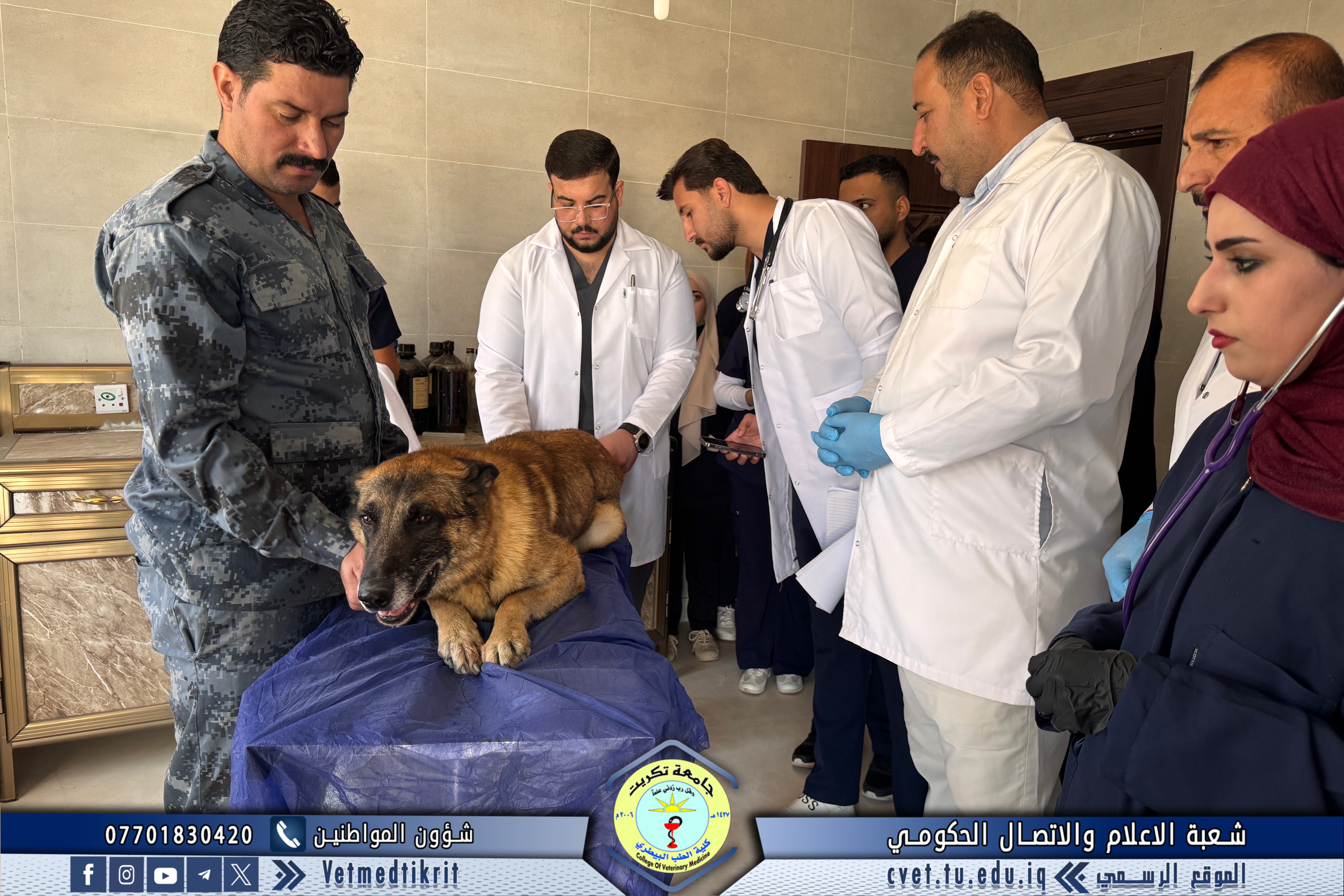 The Outpatient Clinic Unit at the Teaching Hospital of the College of Veterinary Medicine, Tikrit University, received several veterinary cases this week involving police dogs from the Salahaddin Police Command, as part of the ongoing cooperation between the college and security institutions in the field of veterinary health care.