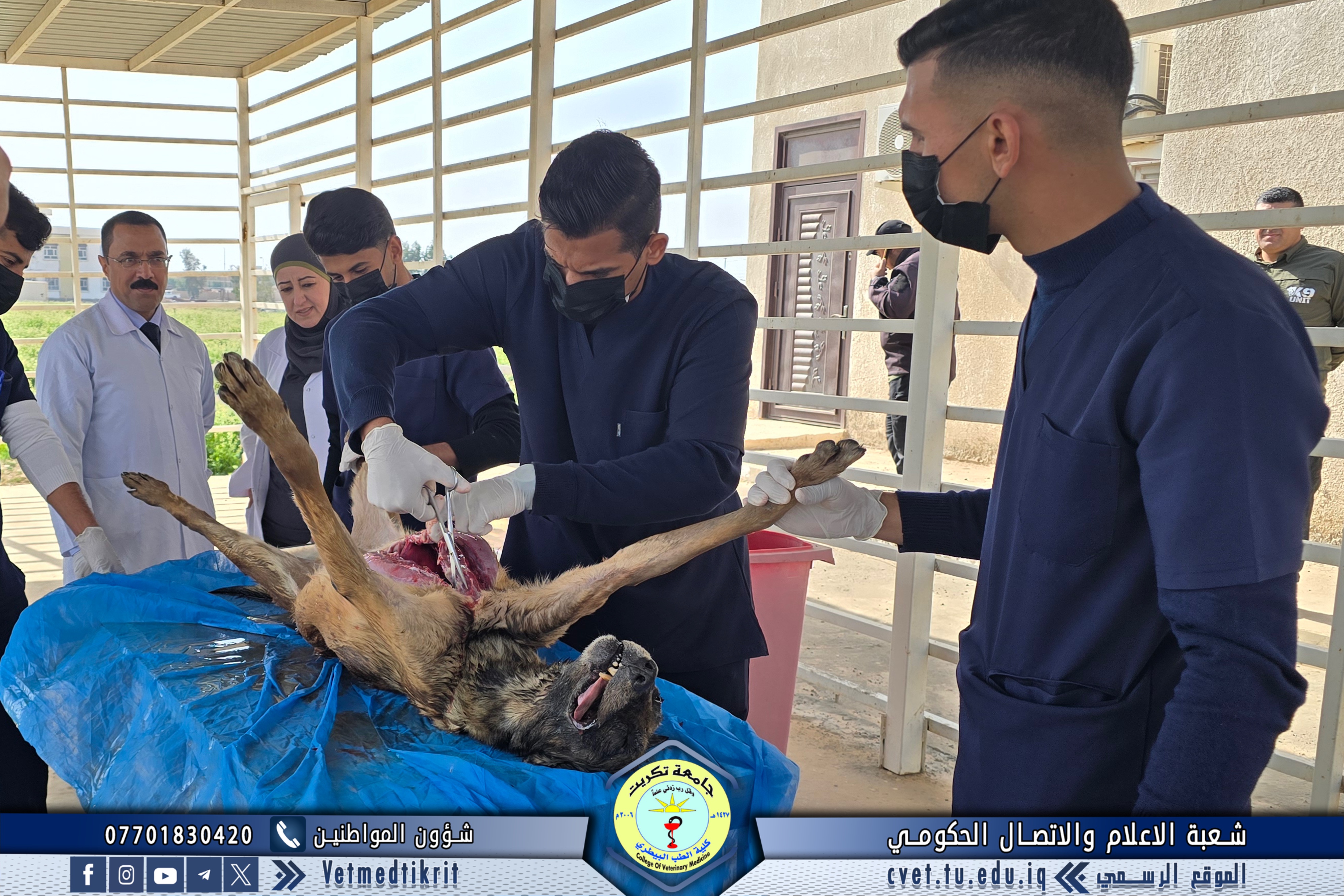 In line with the approach of the College of Veterinary Medicine at Tikrit University in supporting the security forces in Salah Al-Din Province, the Outpatient Clinic Unit received a veterinary case referred by the Salah Al-Din Police Command, involving a deceased K-9 dog of the German Shepherd breed.