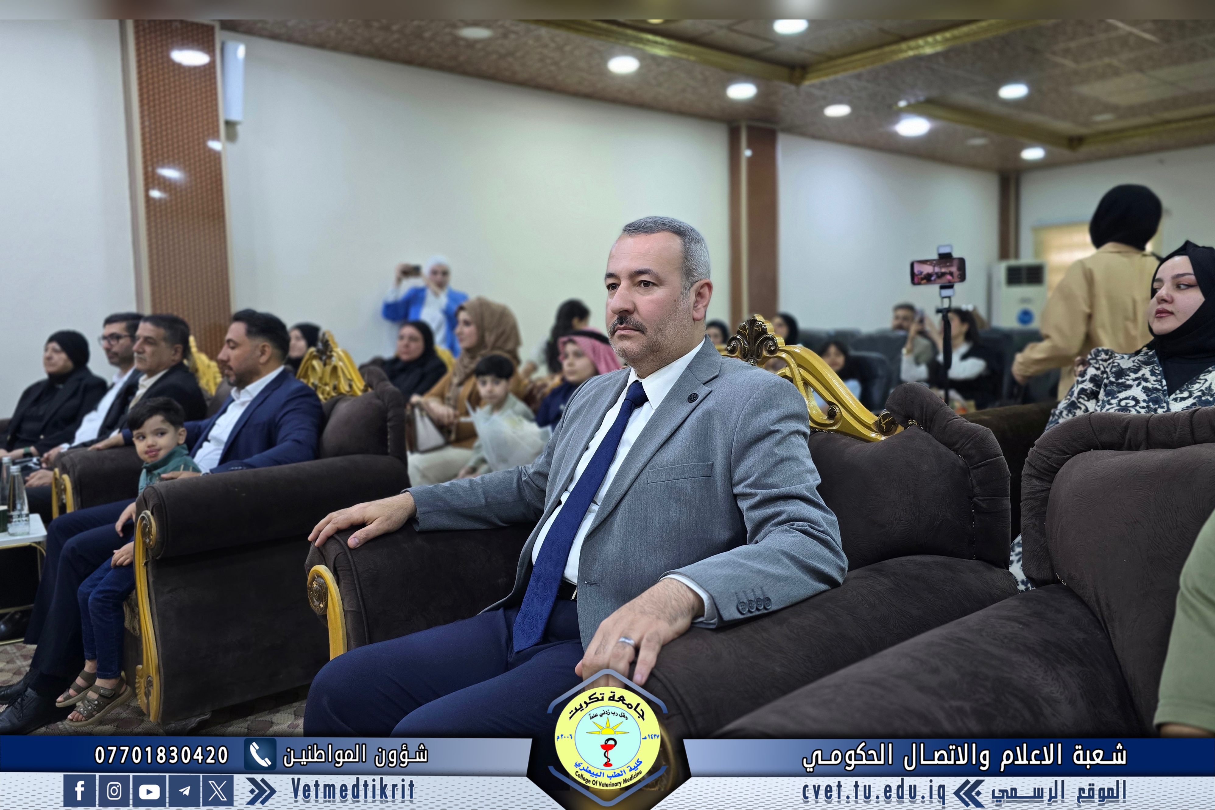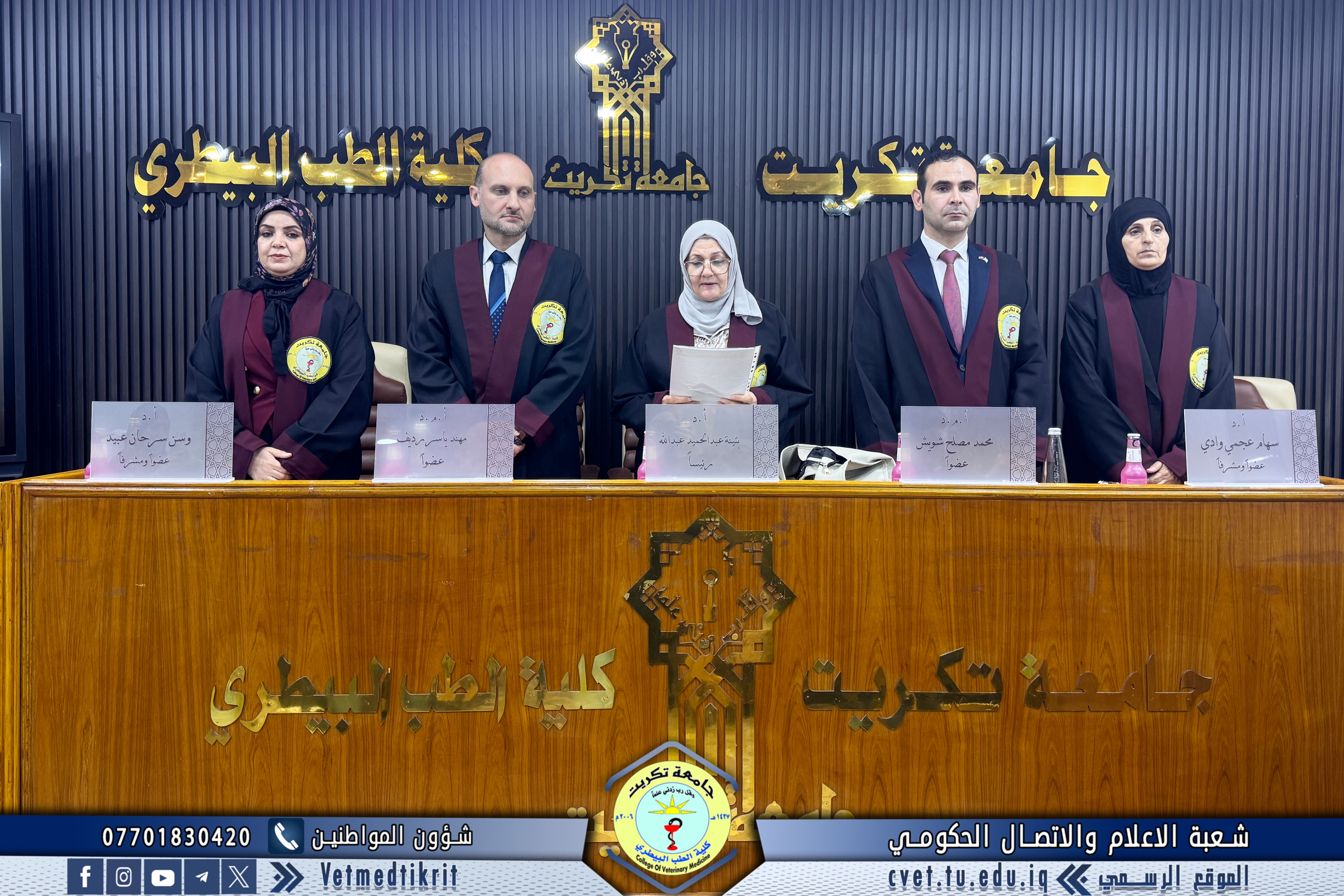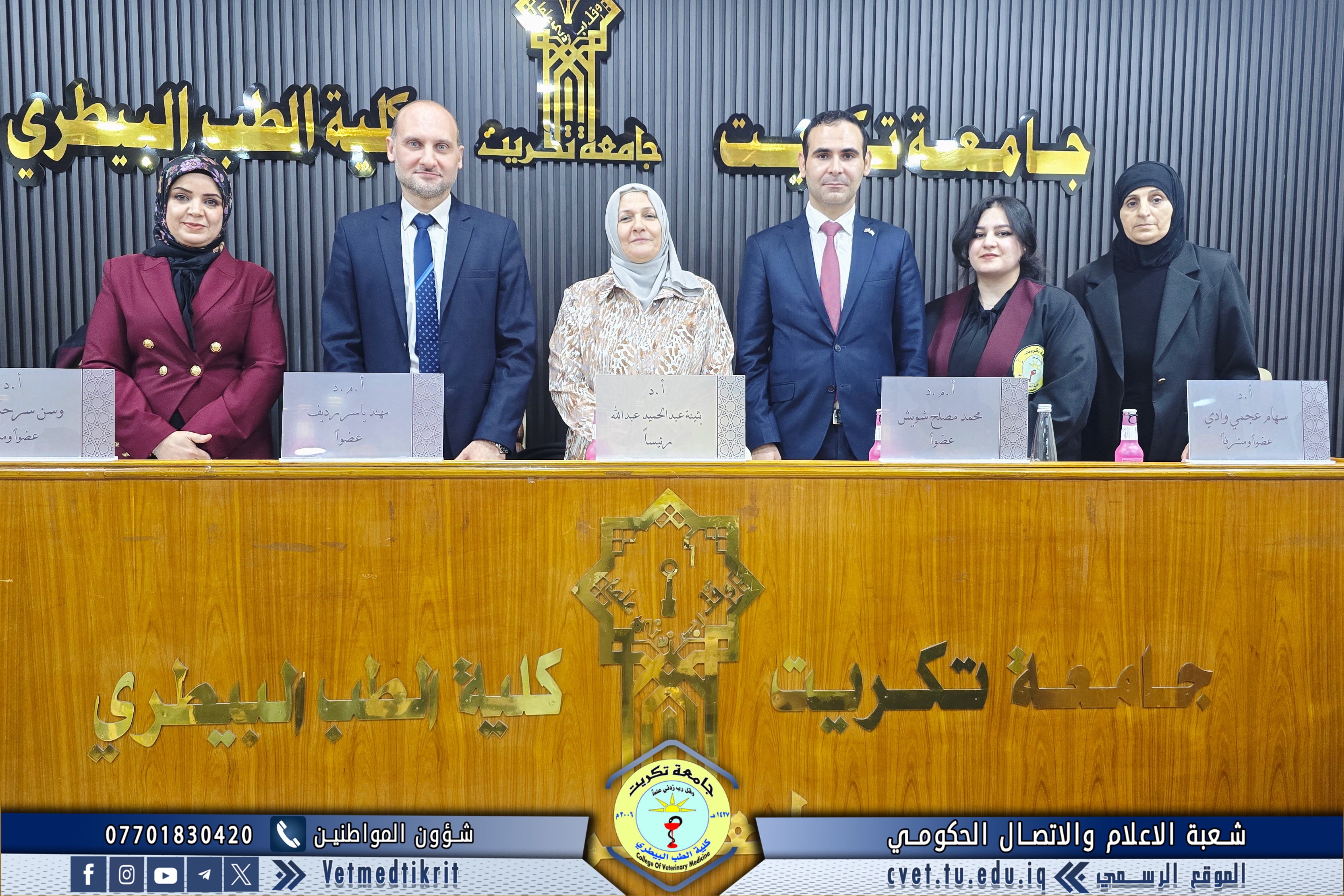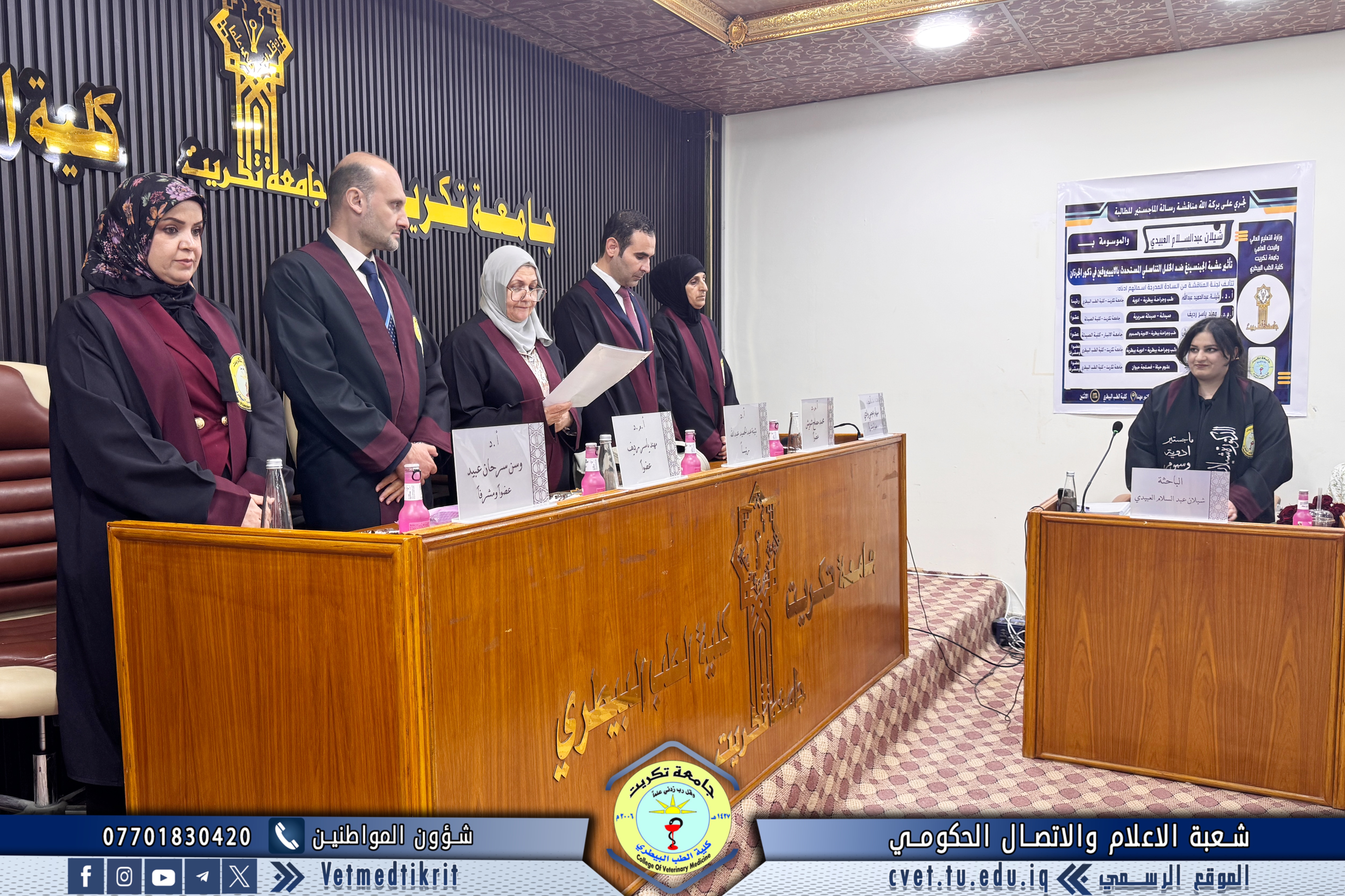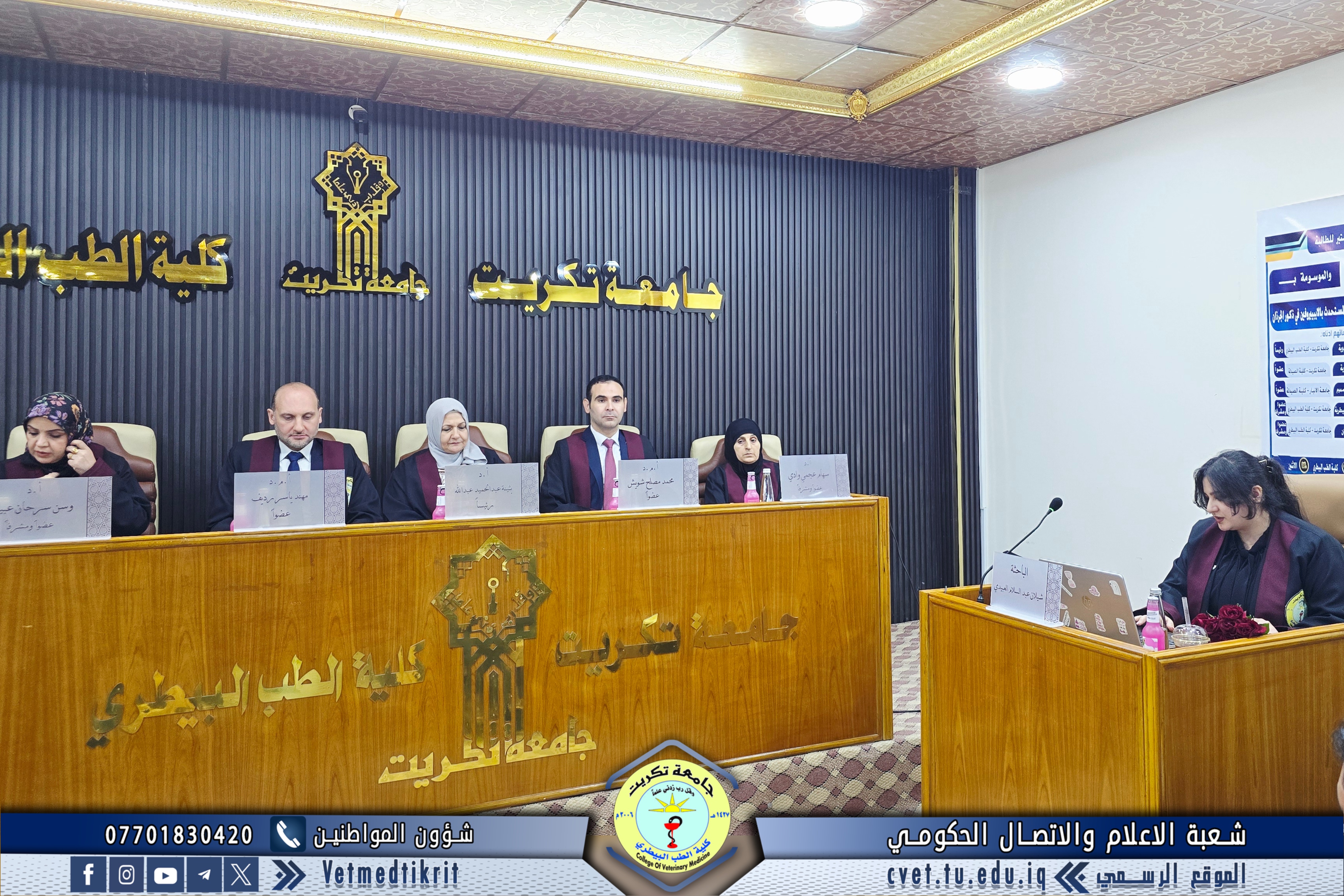 The defense took place at Dr. Muhannad Maher Hall in the College of Veterinary Medicine, attended by several faculty members and students.