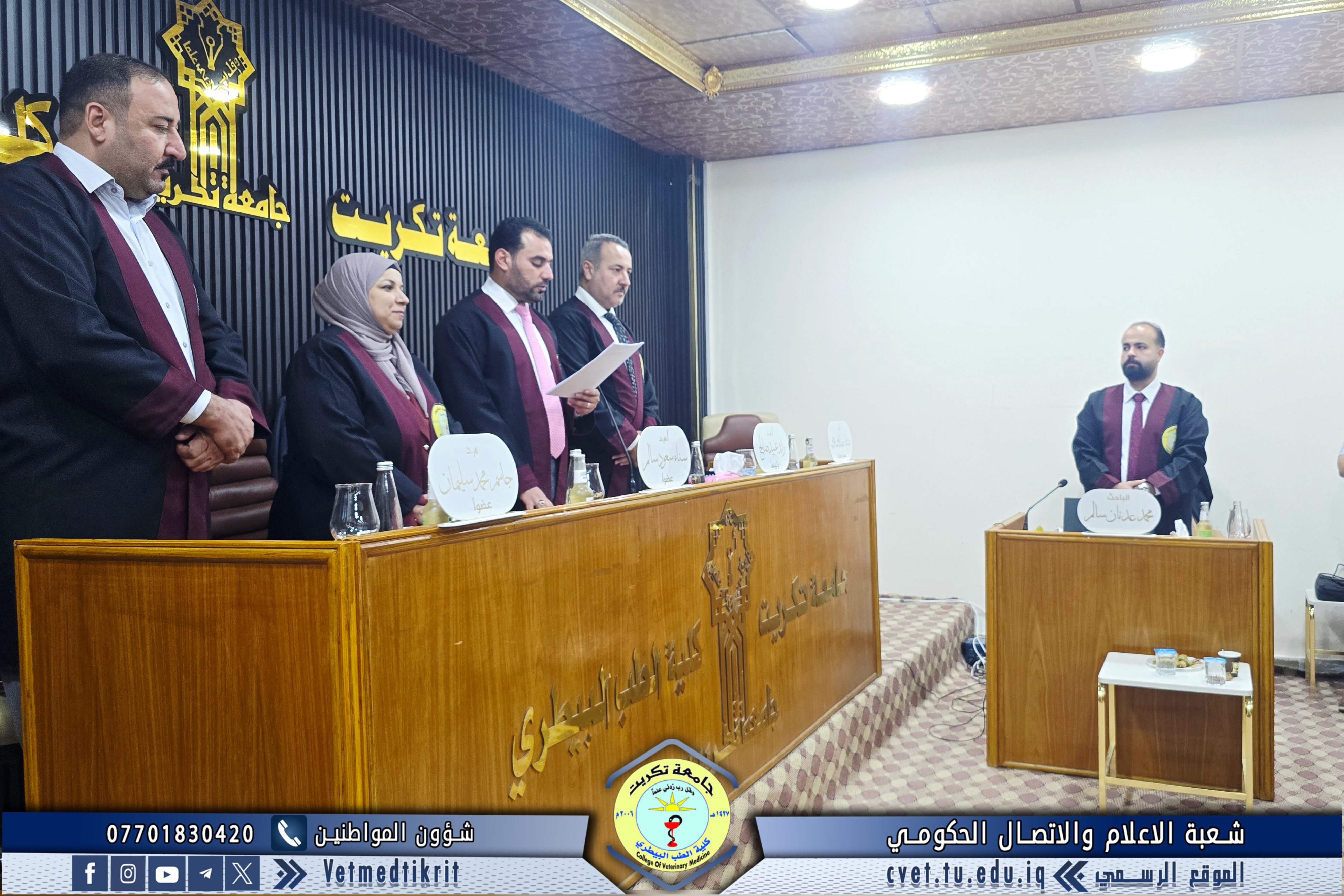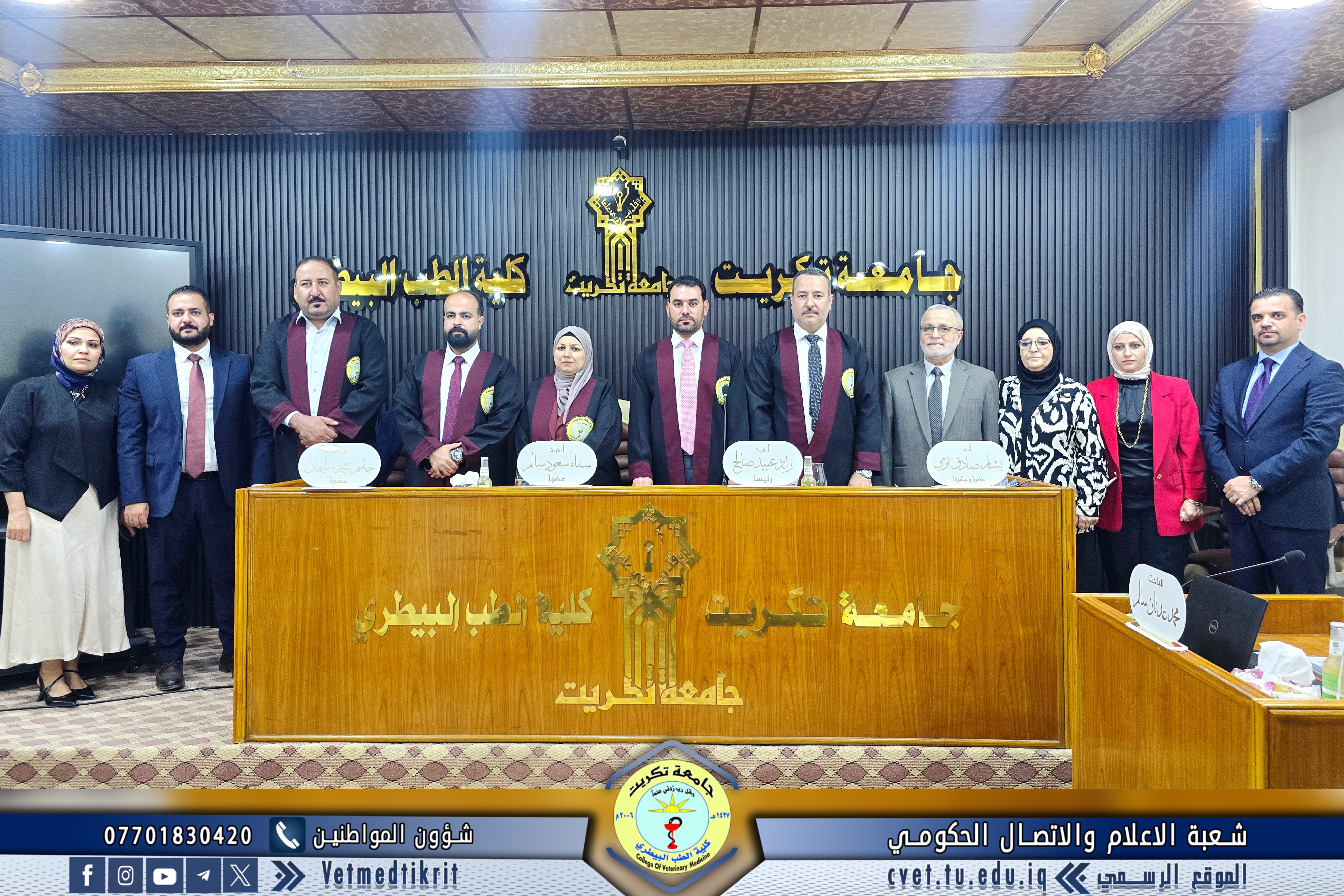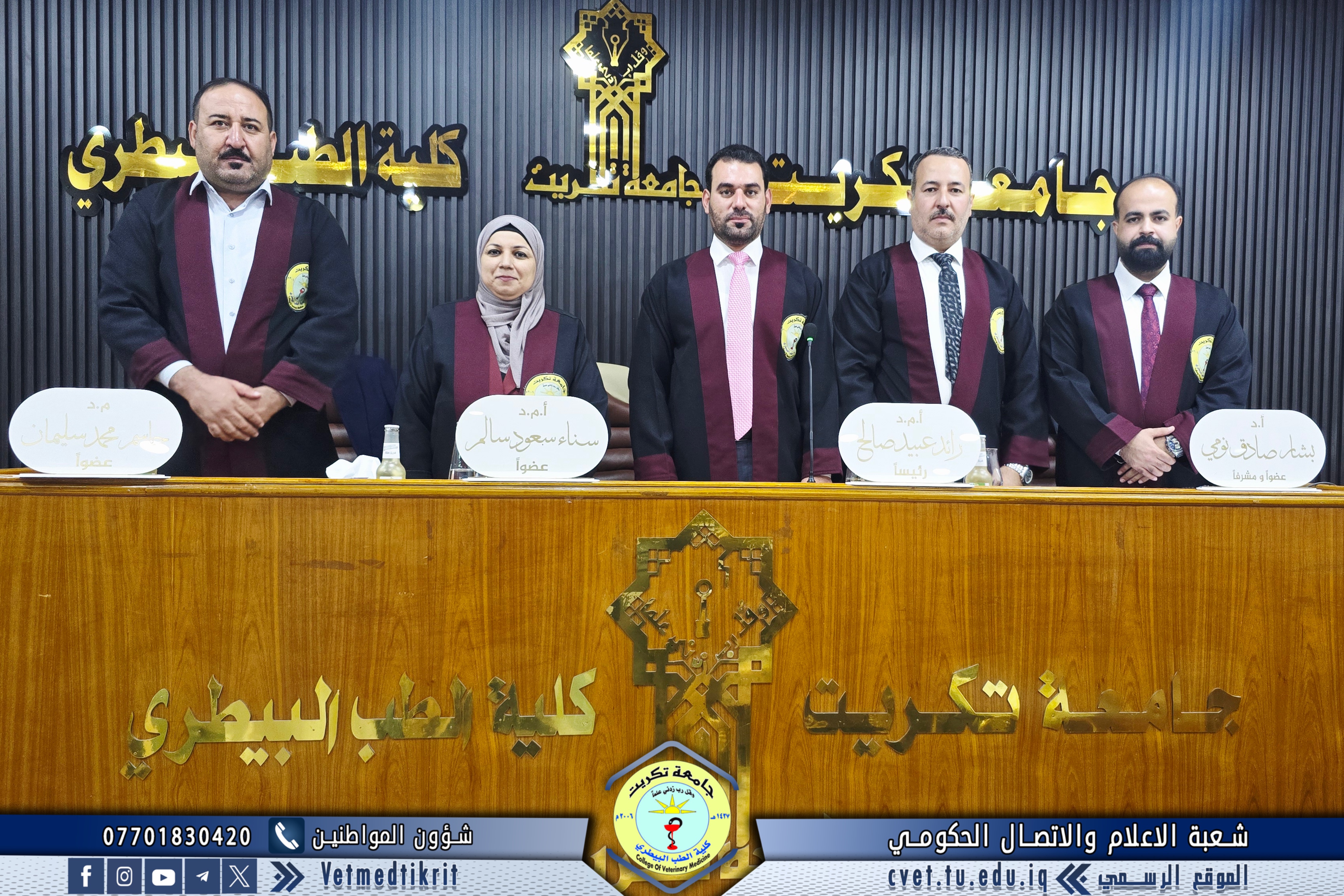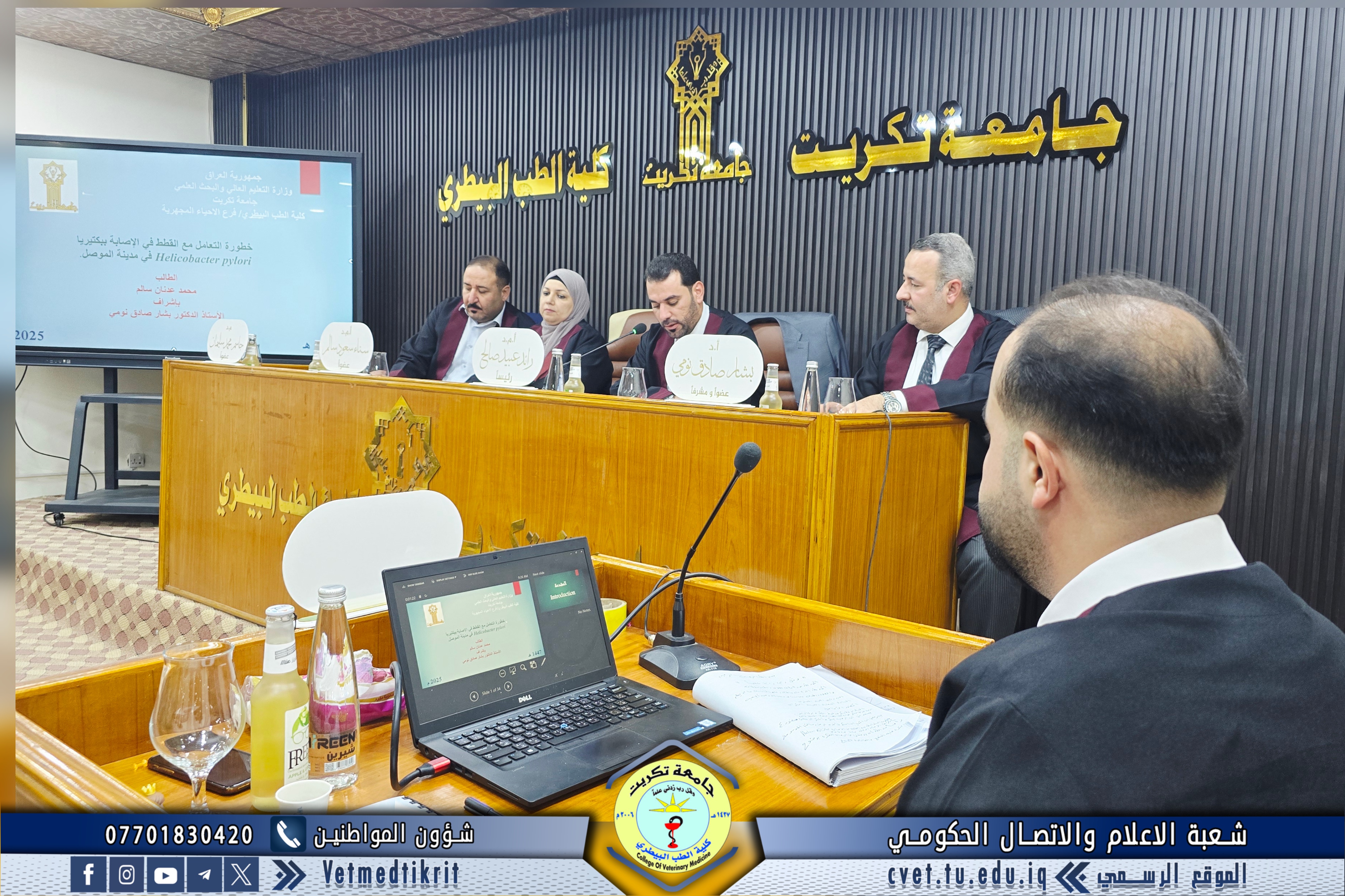 By the grace of God, the Master's thesis entitled "The Dangers of Handling Cats in Helicobacter pylori Infection in Mosul" was discussed by the student (Mohammed Adnan Salem Qasim) majoring in (Microbiology) at the College of Veterinary Medicine at Tikrit University. The discussion committee consisted of: