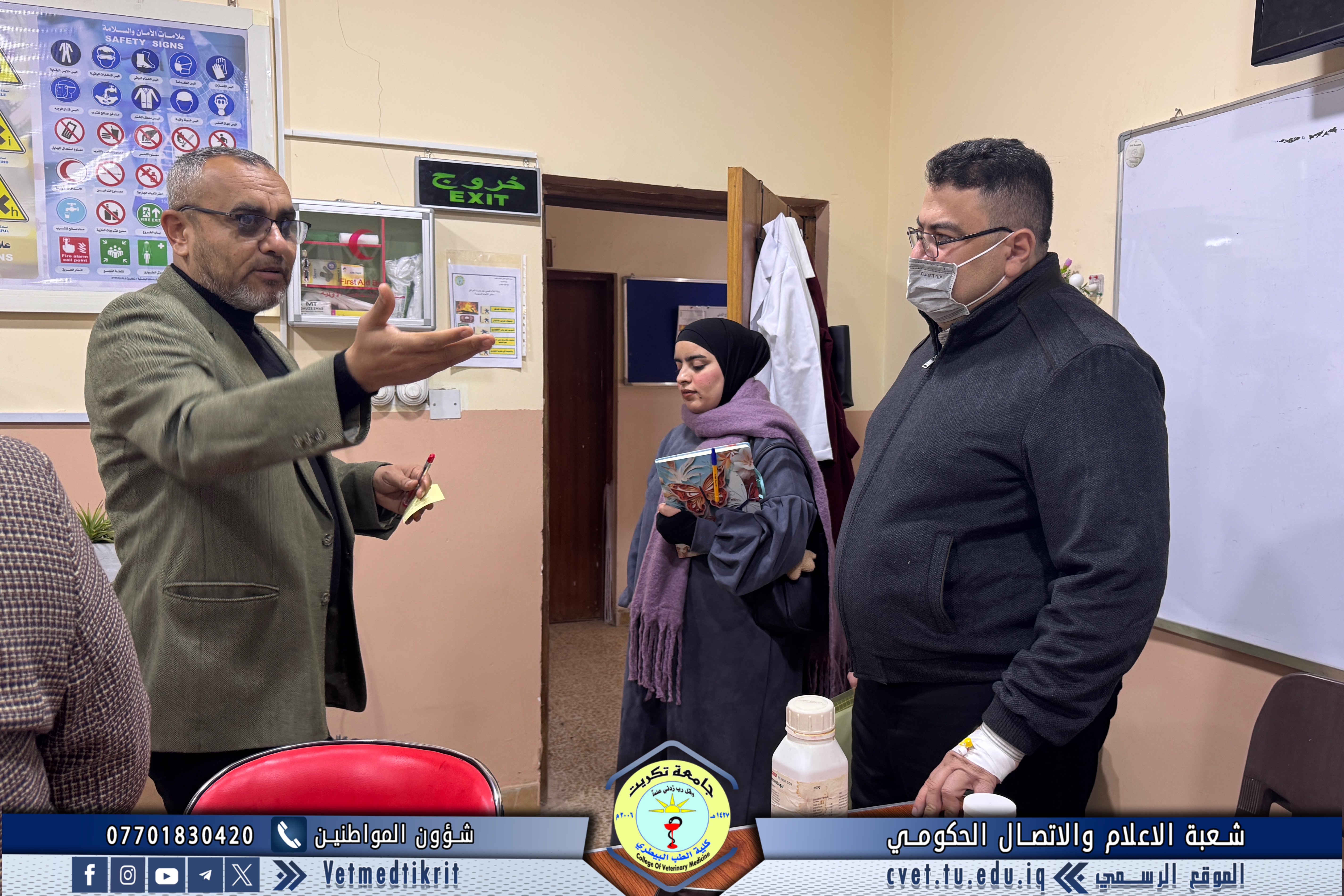 The College of Veterinary Medicine at the University of Tikrit welcomed a committee from the Internal Audit and Control Department at the University Presidency, where they were received by the College’s Assistant Dean for Scientific Affairs, Assistant Professor Dr. Muntaser Mohammed Hilal.