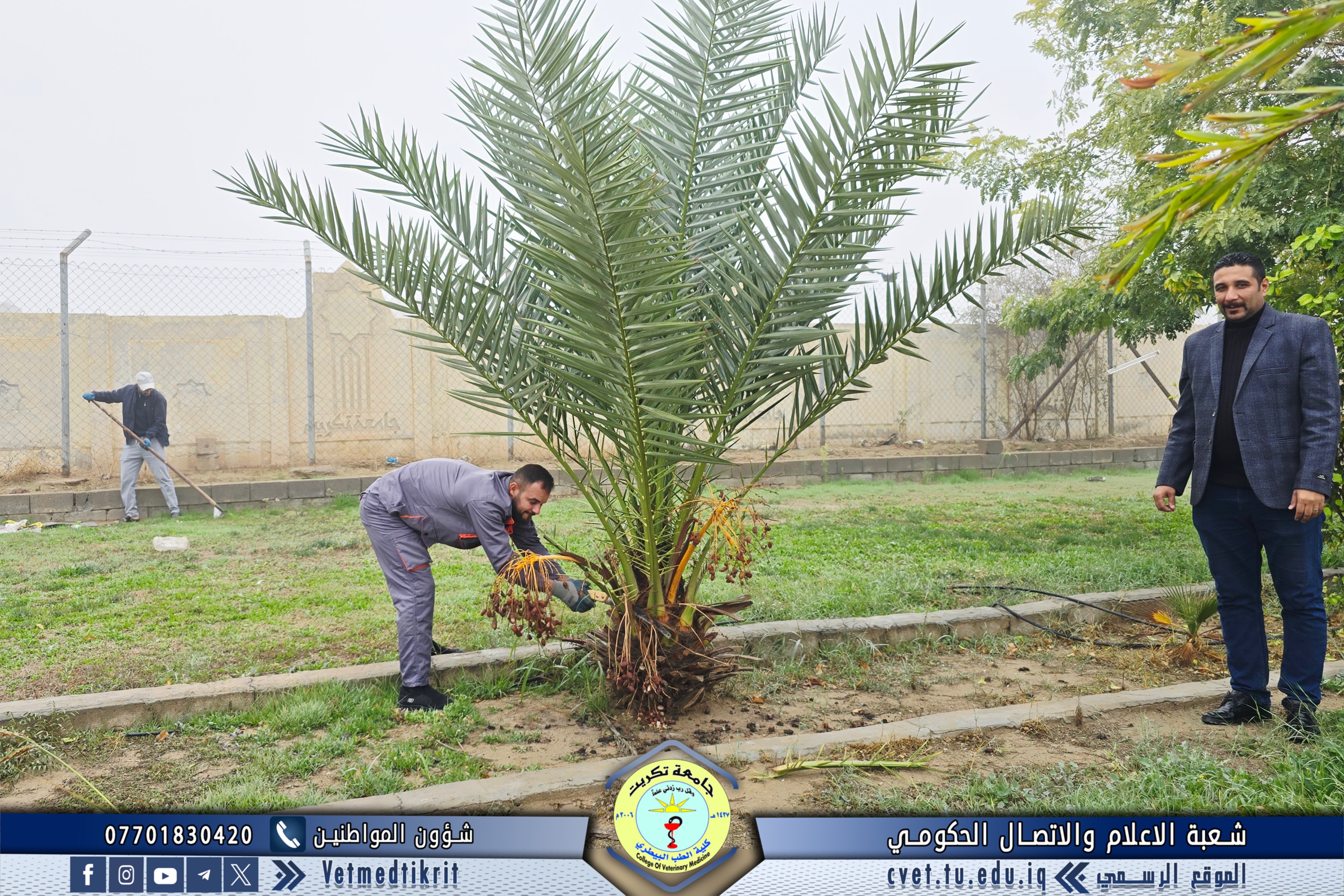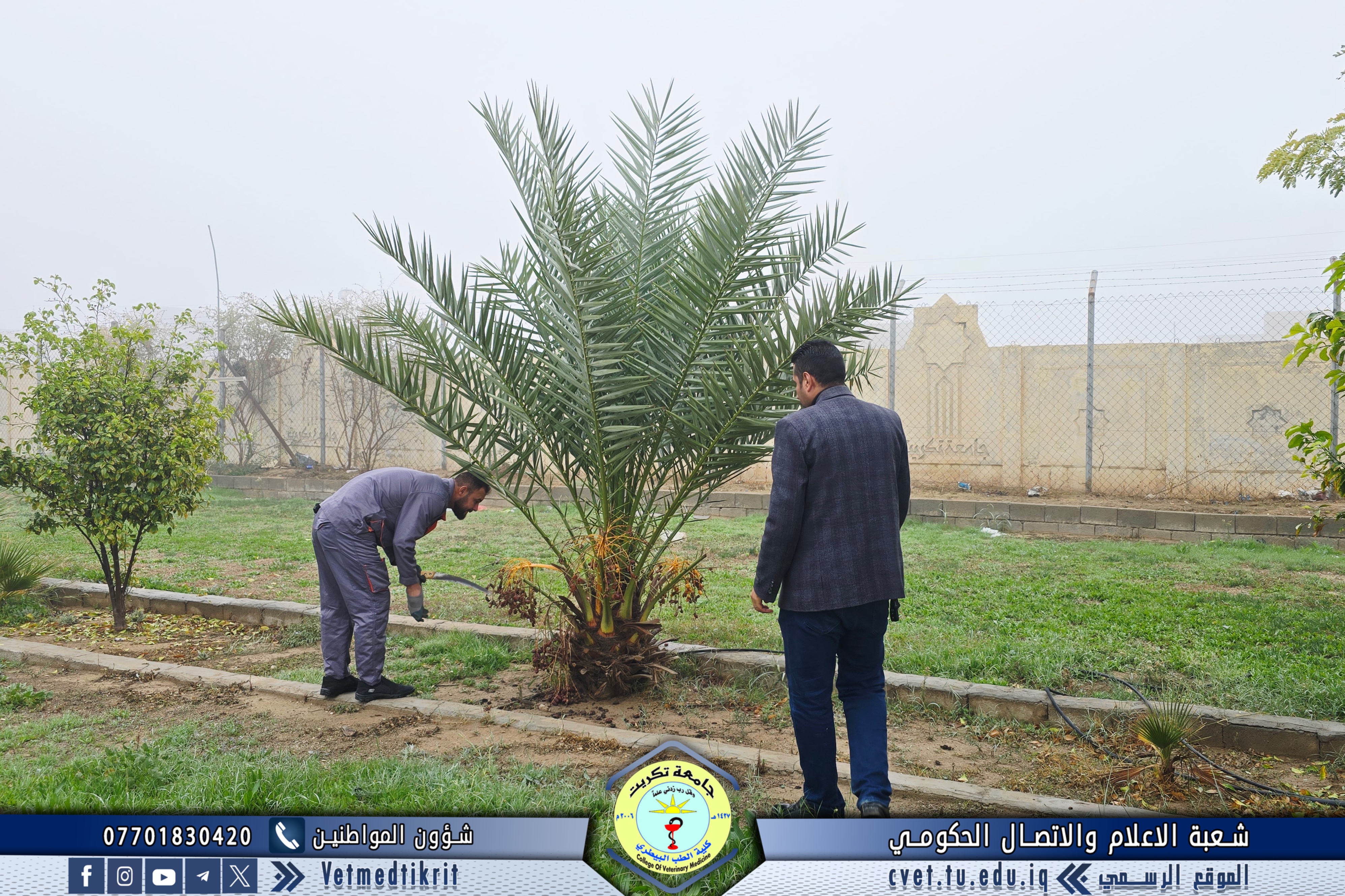 As part of the efforts of the College of Veterinary Medicine at the University of Tikrit to enhance the university environment and preserve the aesthetic appearance of the campus, the Gardens and Services Division implemented a comprehensive campaign to maintain and service the College’s outdoor gardens.