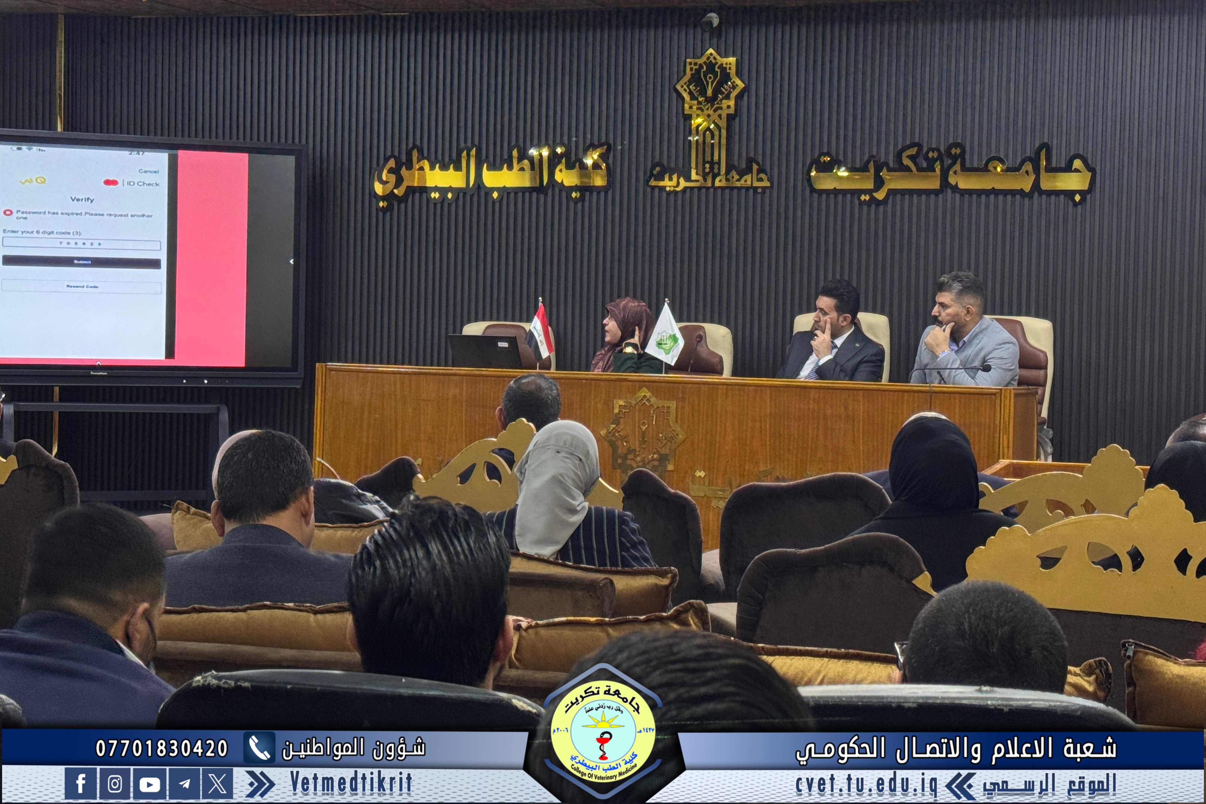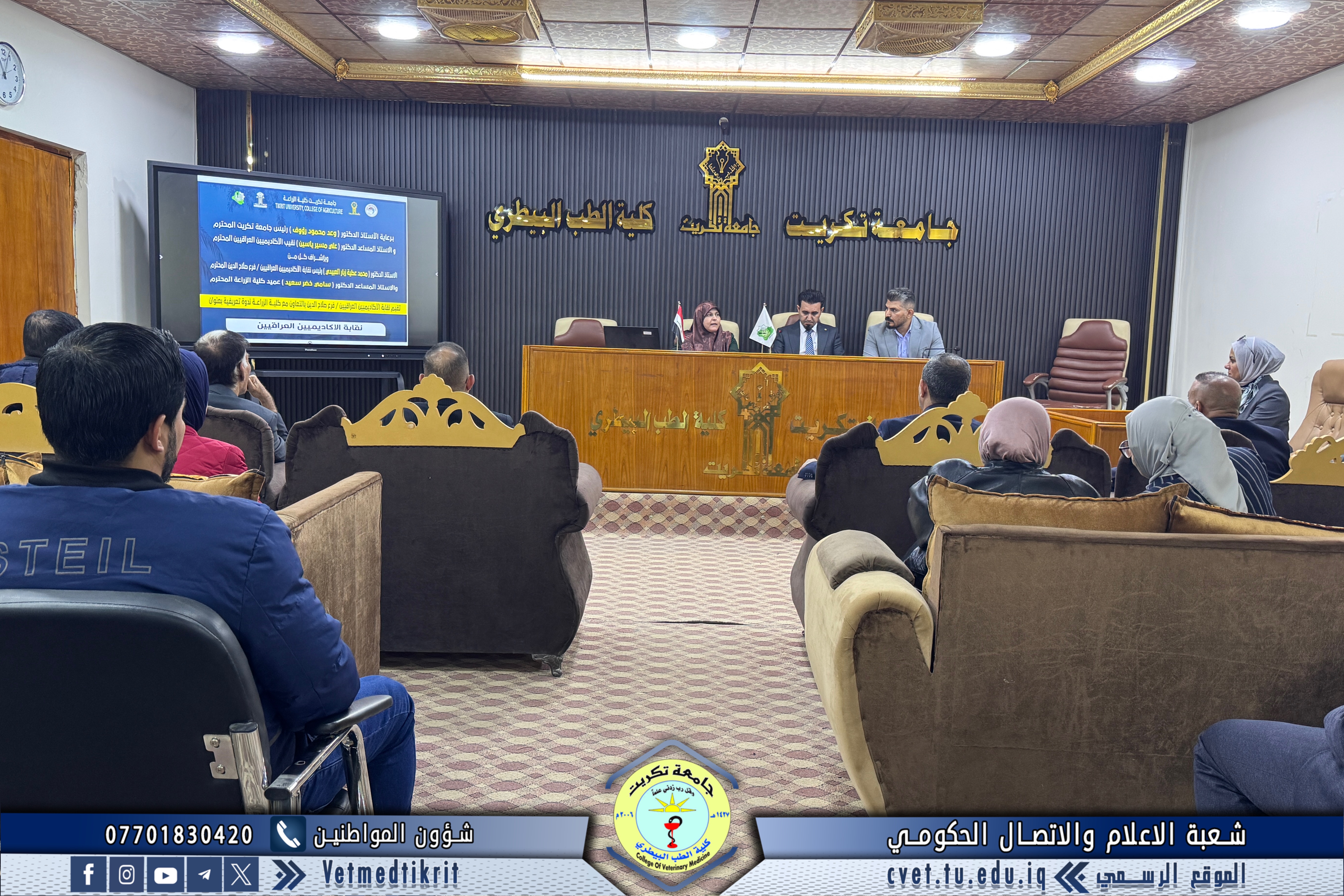 The College of Veterinary Medicine at the University of Tikrit hosted an academic awareness seminar entitled “The Academics’ Syndicate: A Pillar for Building the Academic Future”, in cooperation with the Iraqi Academics’ Syndicate – Salah Al-Din Branch. The seminar was held in Dr. Muhannad Maher Hall at the college and was attended by a number of faculty members.