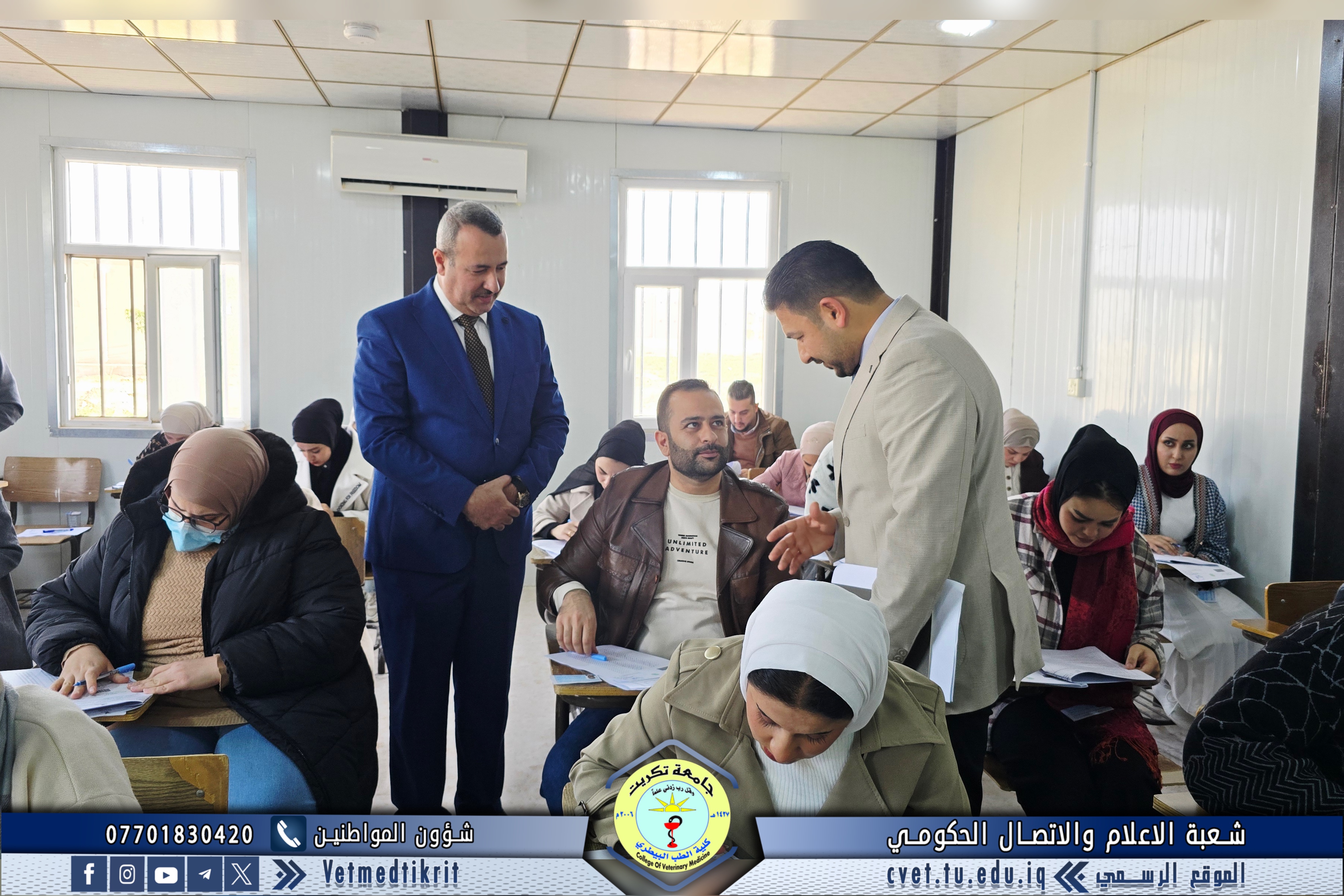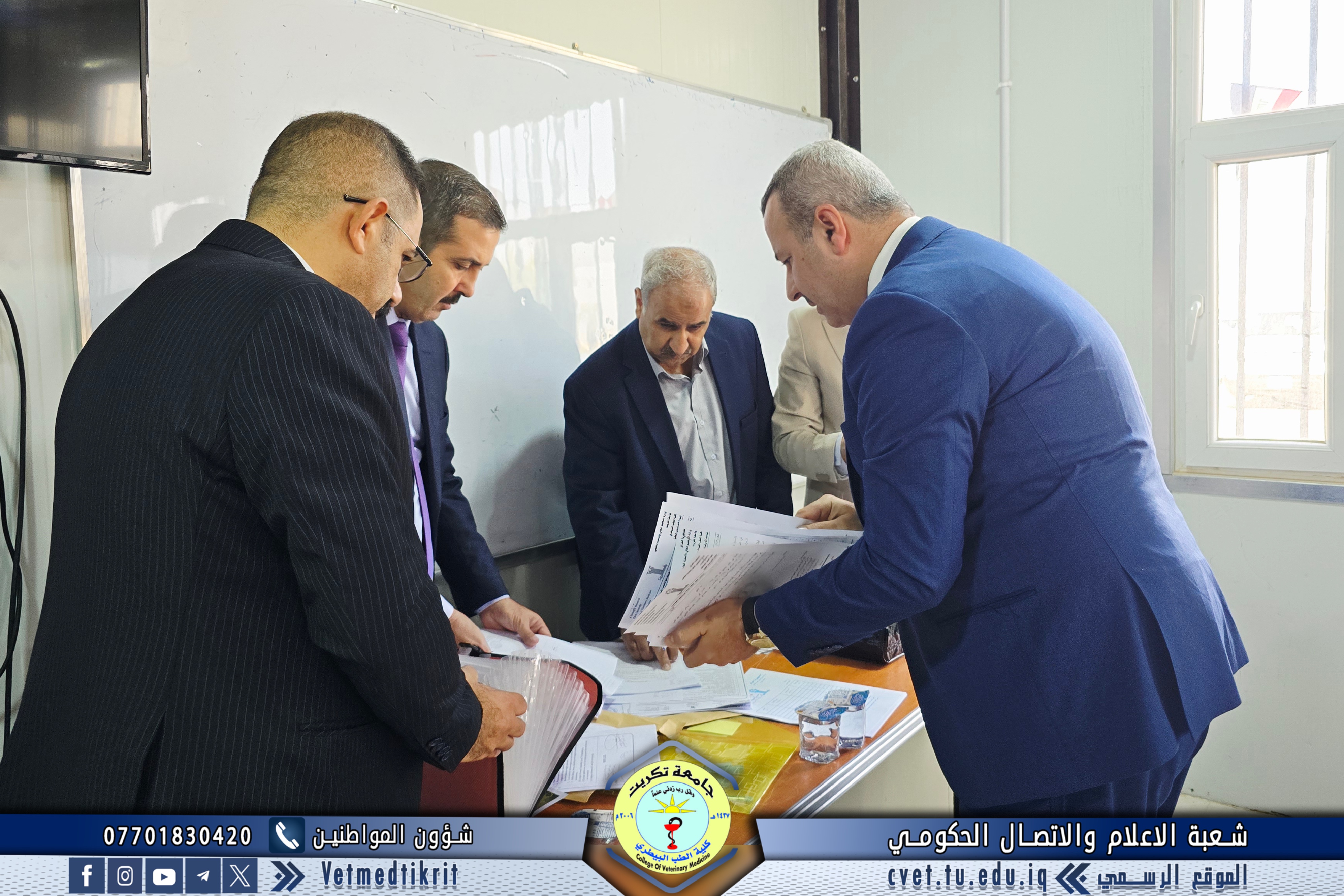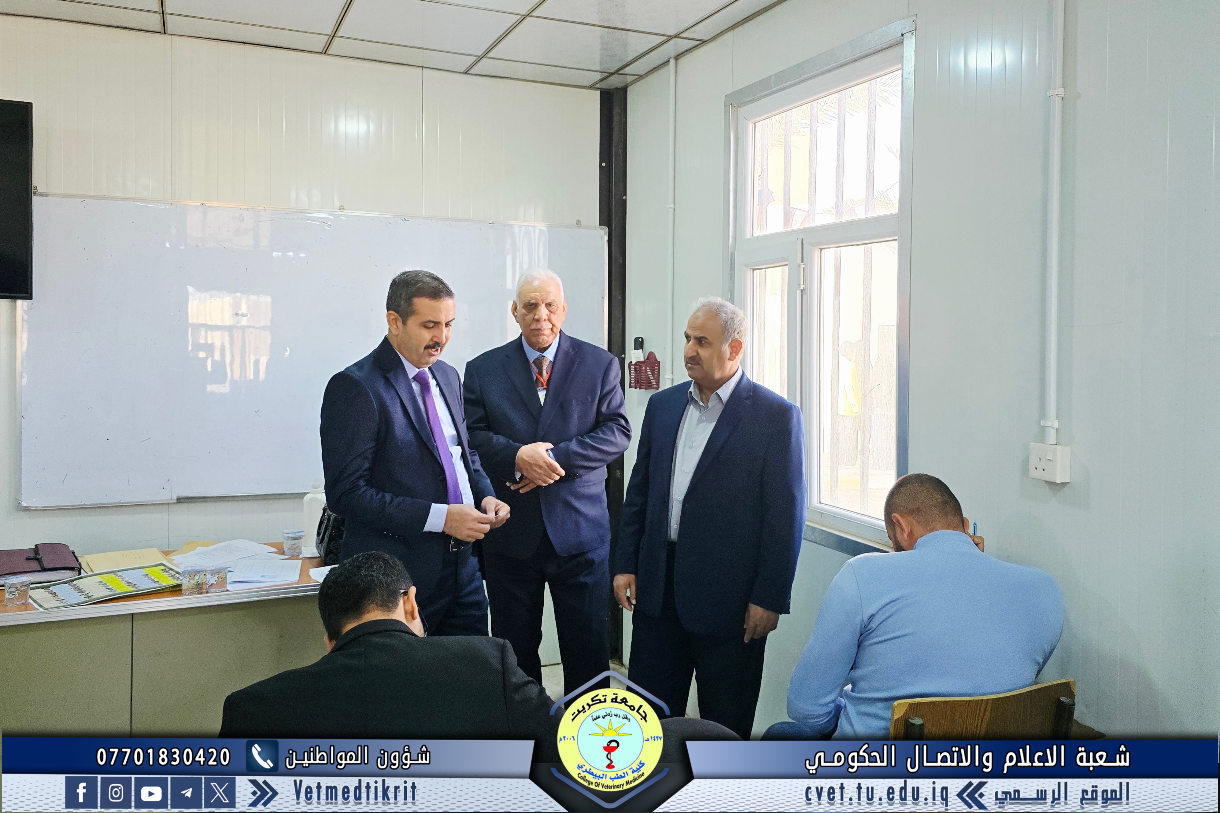 A university committee from the Presidency of the University of Tikrit visited the College of Veterinary Medicine to follow up on the progress of the final examinations for the first semester of the academic year 2025–2026. This visit comes as part of the university’s commitment to ensuring the smooth conduct of the examination process and adherence to approved regulations and instructions.