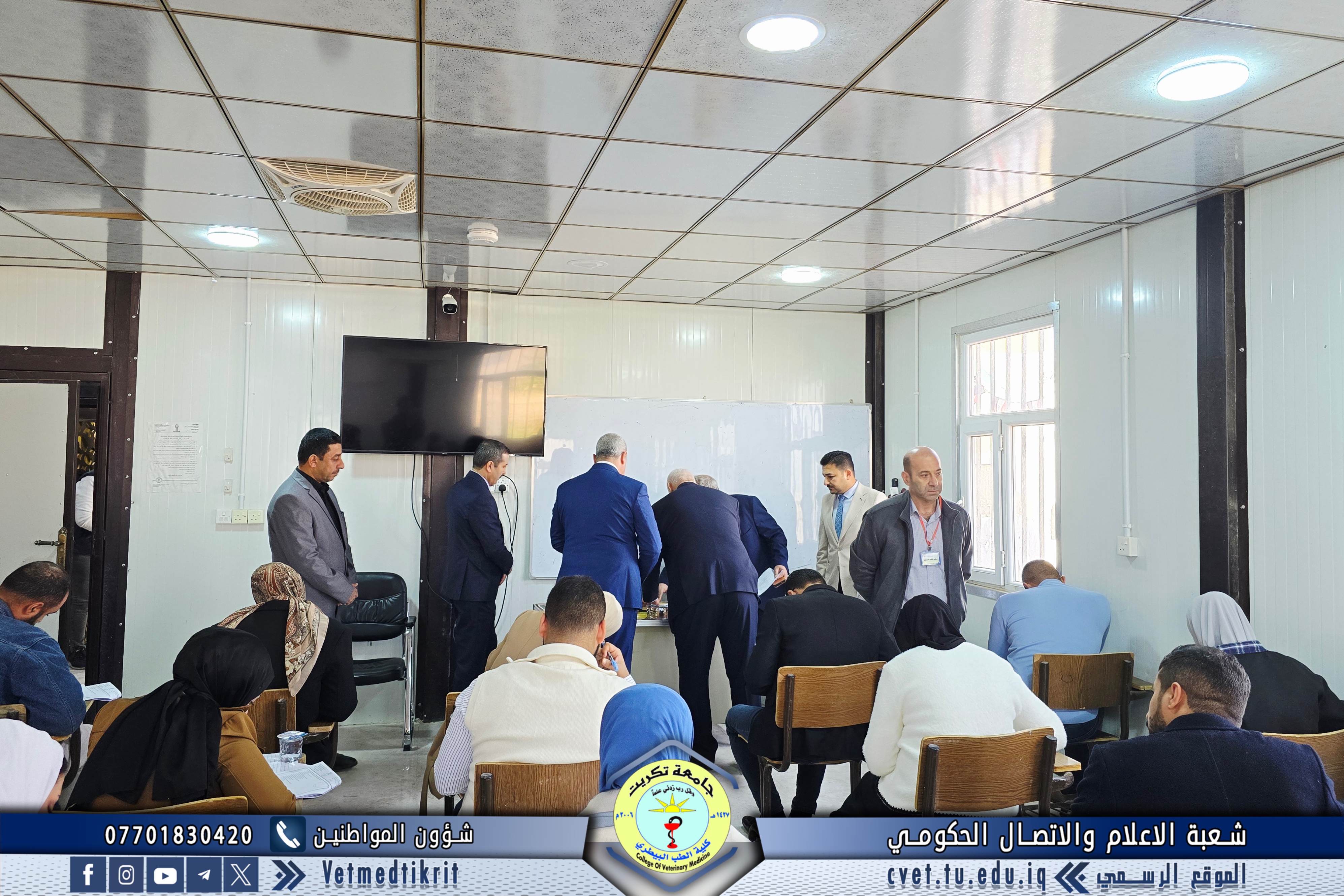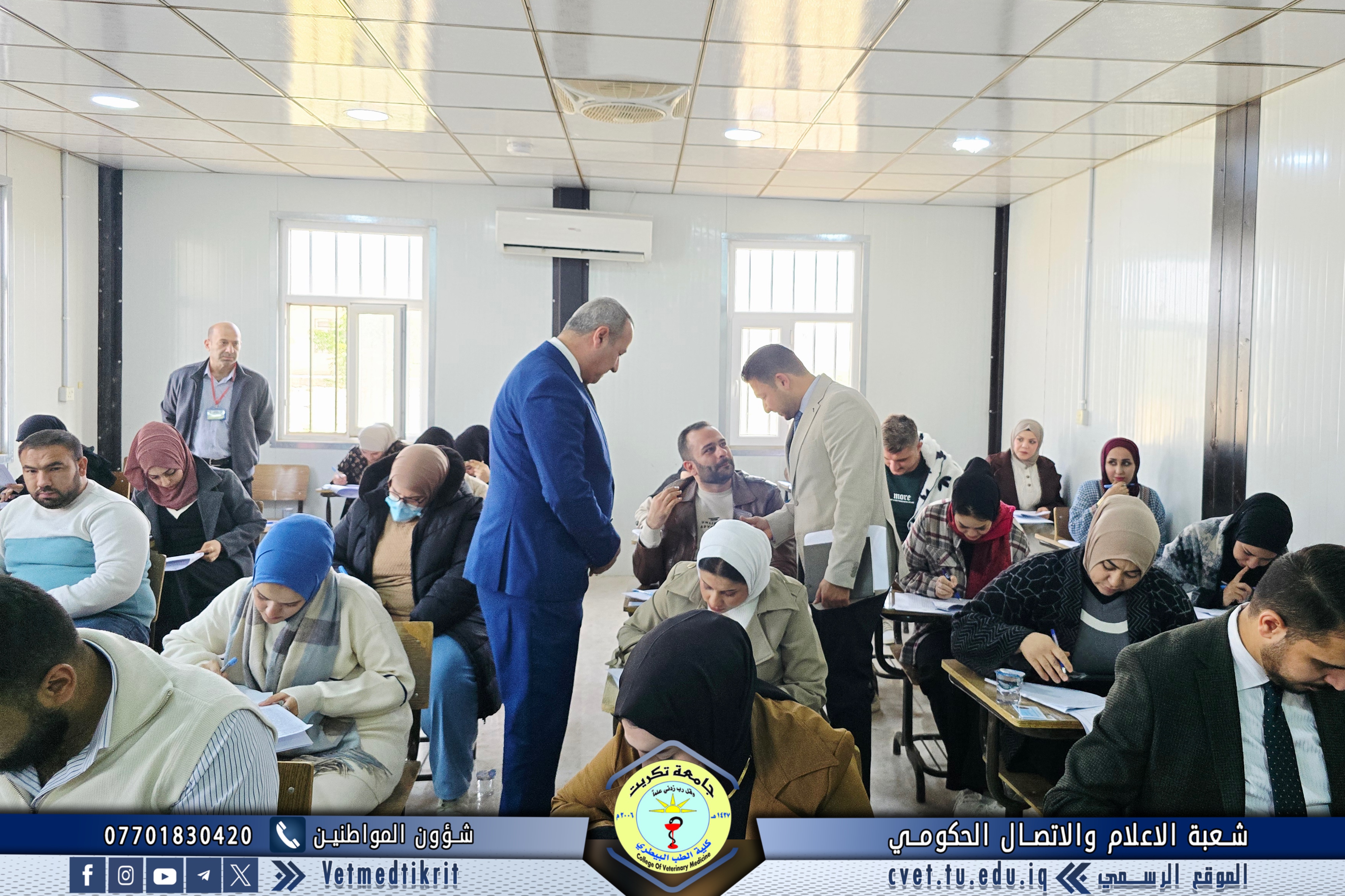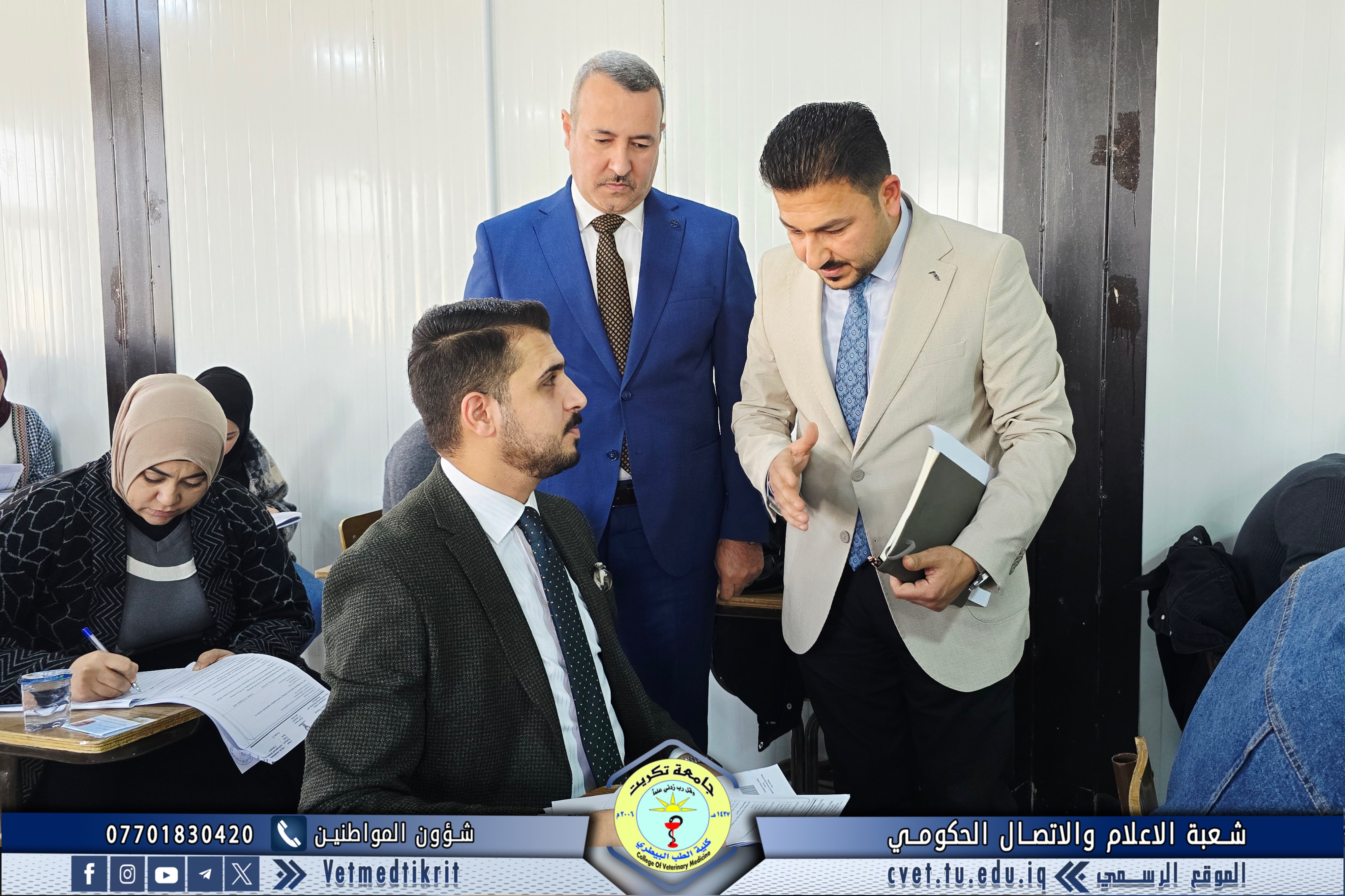 A university committee from the Presidency of the University of Tikrit visited the College of Veterinary Medicine to follow up on the progress of the final examinations for the first semester of the academic year 2025–2026. This visit comes as part of the university’s commitment to ensuring the smooth conduct of the examination process and adherence to approved regulations and instructions.