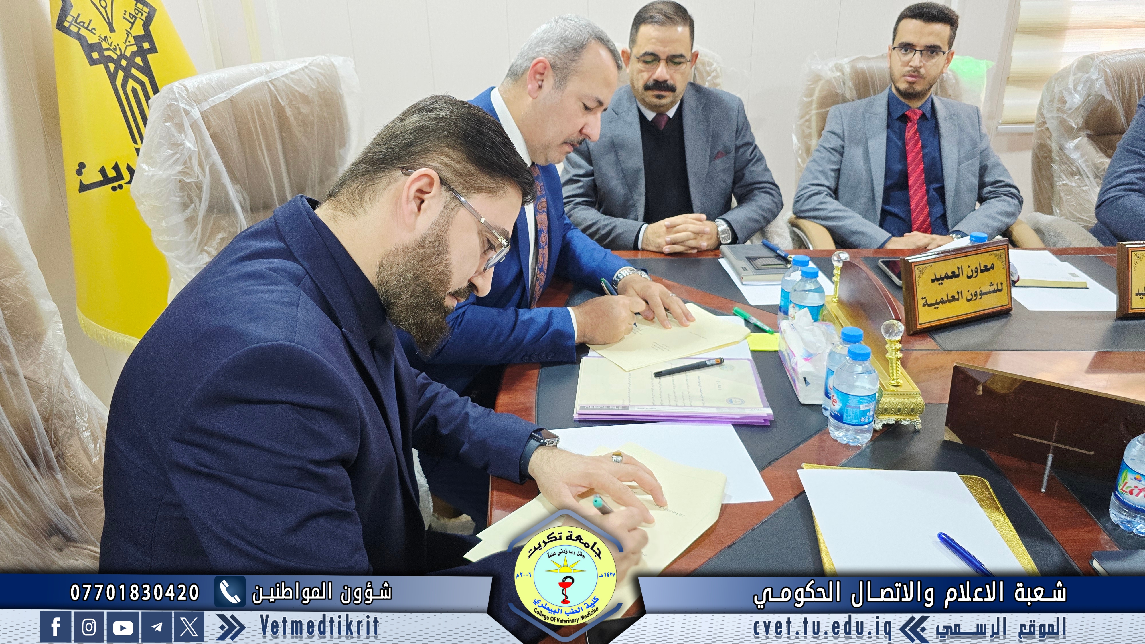 The College of Veterinary Medicine at the University of Tikrit has concluded a joint scientific cooperation agreement with the College of Veterinary Medicine at the University of Basrah, within the framework of strengthening academic and scientific collaboration among Iraqi universities and exchanging expertise in a manner that contributes to the development of the educational and research process.