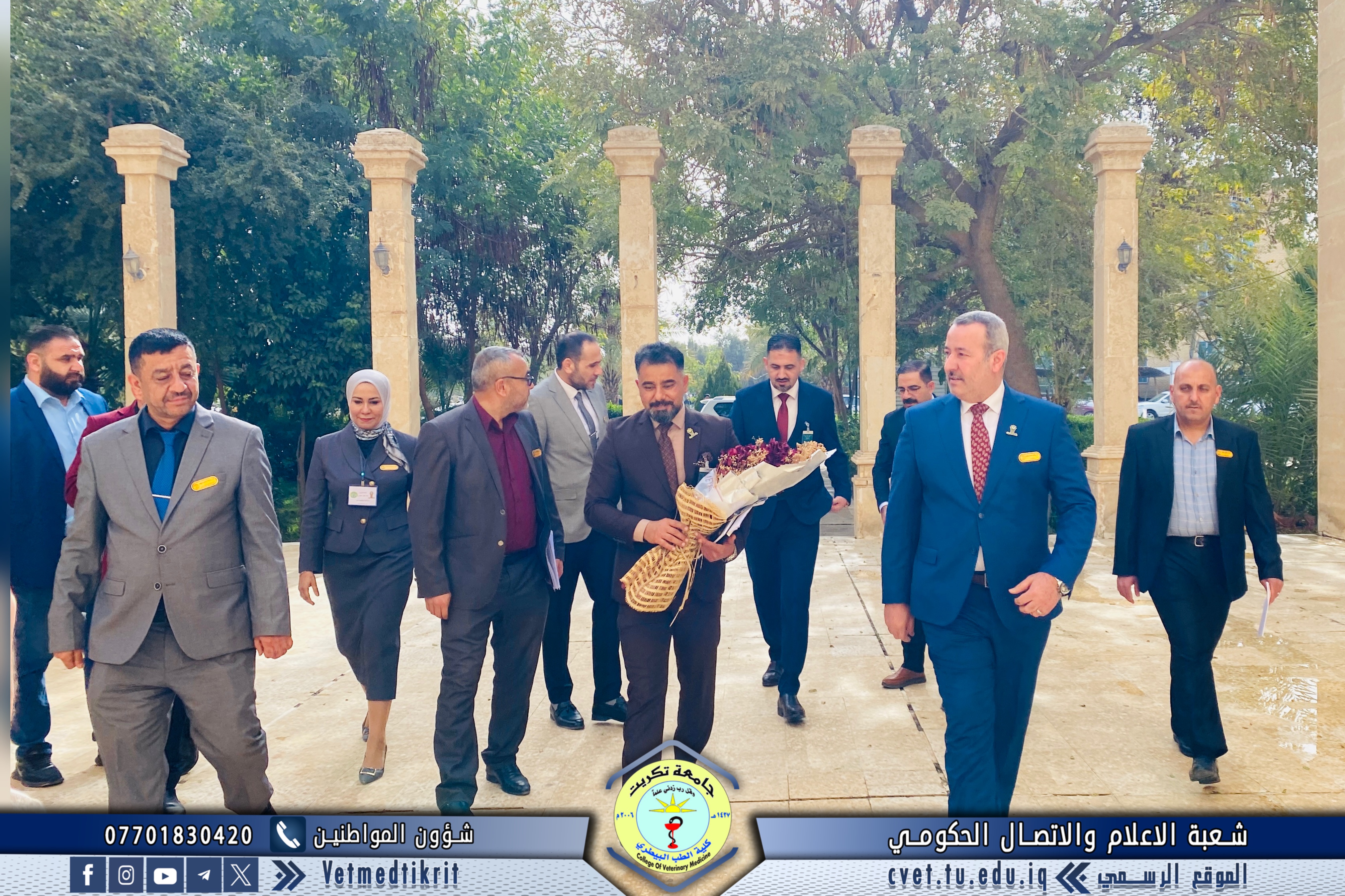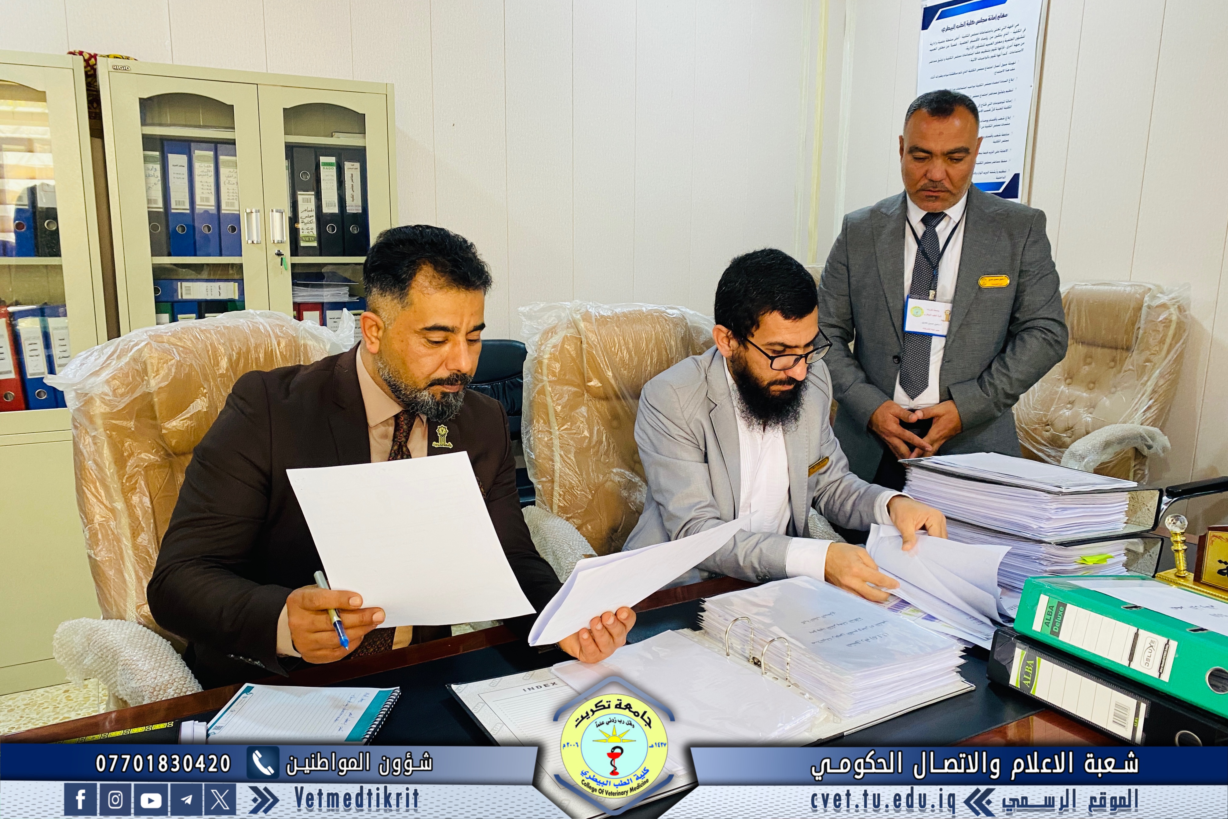 The College of Veterinary Medicine at Tikrit University received the ministerial evaluation team for institutional accreditation as part of the procedures to follow up on the university’s institutional accreditation requirements. The team was welcomed by Prof. Dr. Bashar Sadiq Nomi, Dean of the College, along with the Vice Deans and Heads of the academic departments.