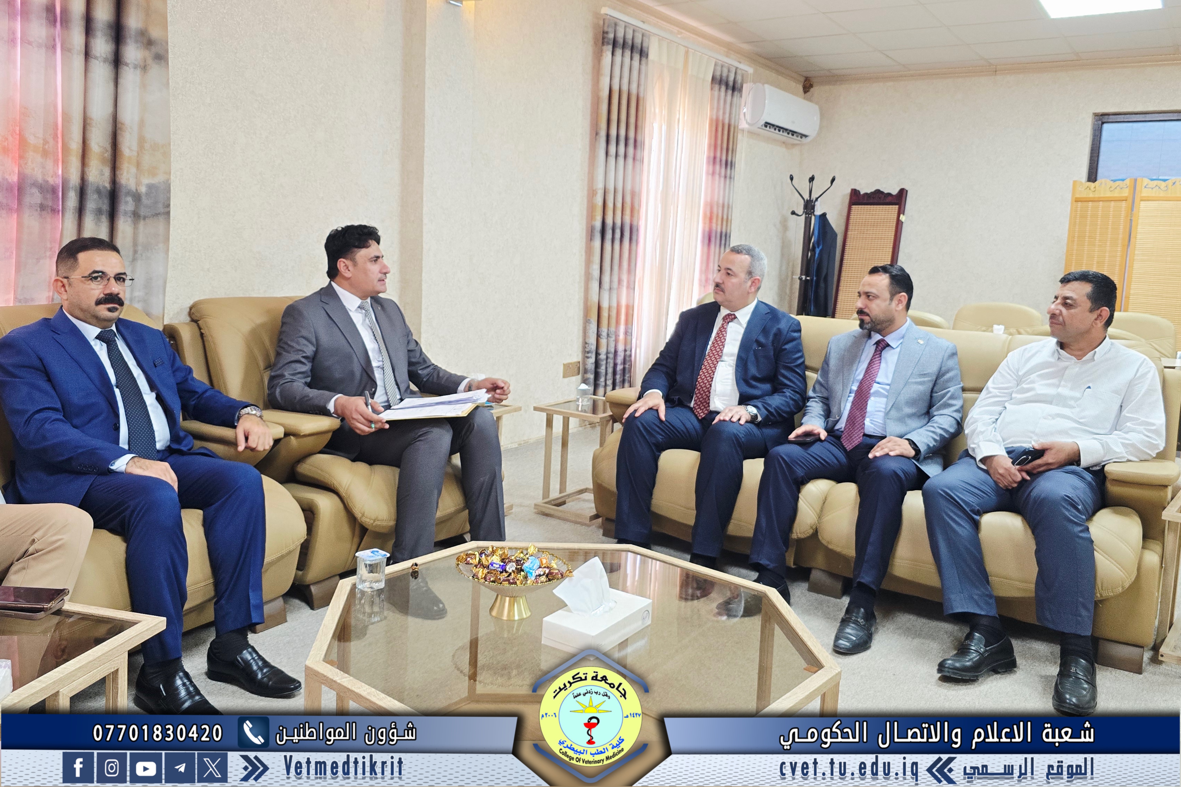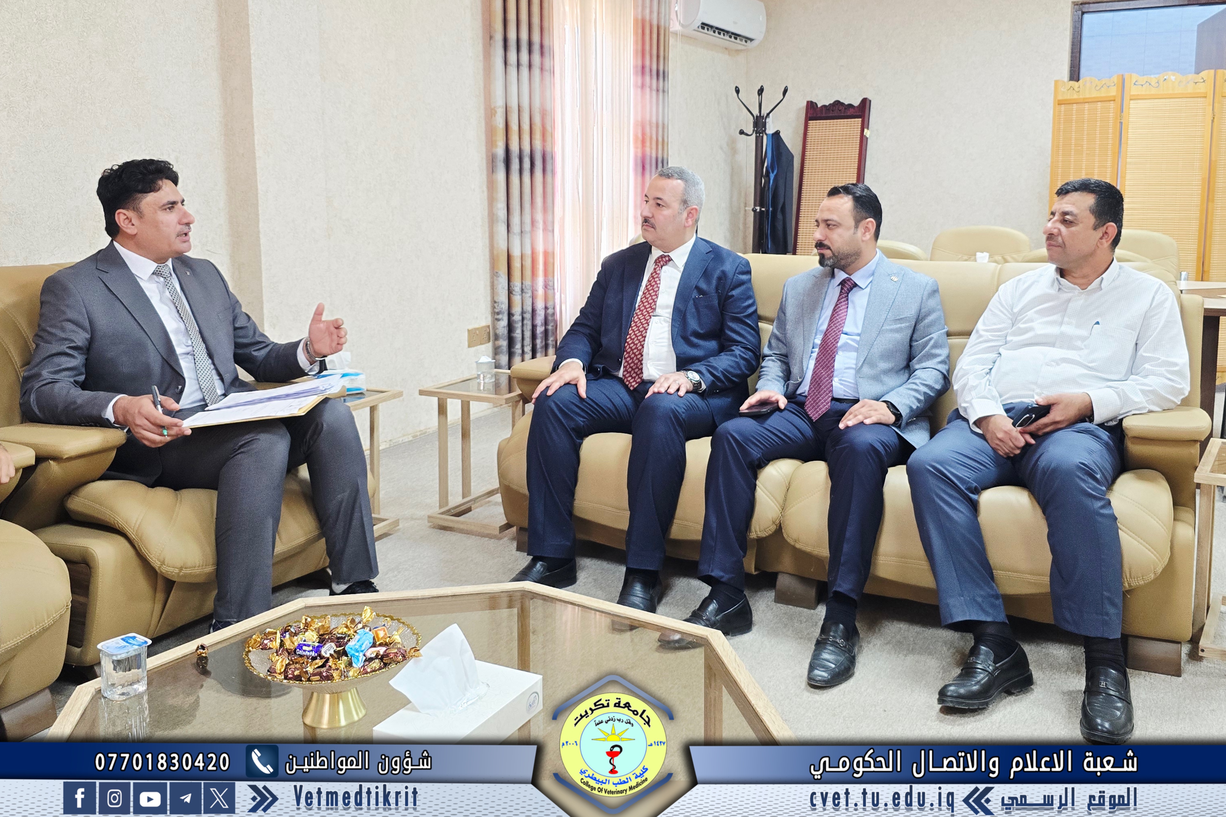 On the sidelines of the symposium, Prof. Dr. Bashar Sadiq Noomi, Dean of the College of Veterinary Medicine, and Asst. Prof. Dr. Muntasir Mohammed Hilal, Assistant Dean for Scientific Affairs, held a fruitful meeting with Asst. Prof. Dr. Mohammed Raheel Ali, Dean of the College of Dentistry, and Asst. Prof. Dr. Ghazwan Mahdi Saleh, Assistant Dean for Administrative Affairs. The meeting addressed topics of mutual interest between the two colleges, particularly the enhancement of academic collaboration and the expansion of joint activities aimed at serving students and improving the educational process.