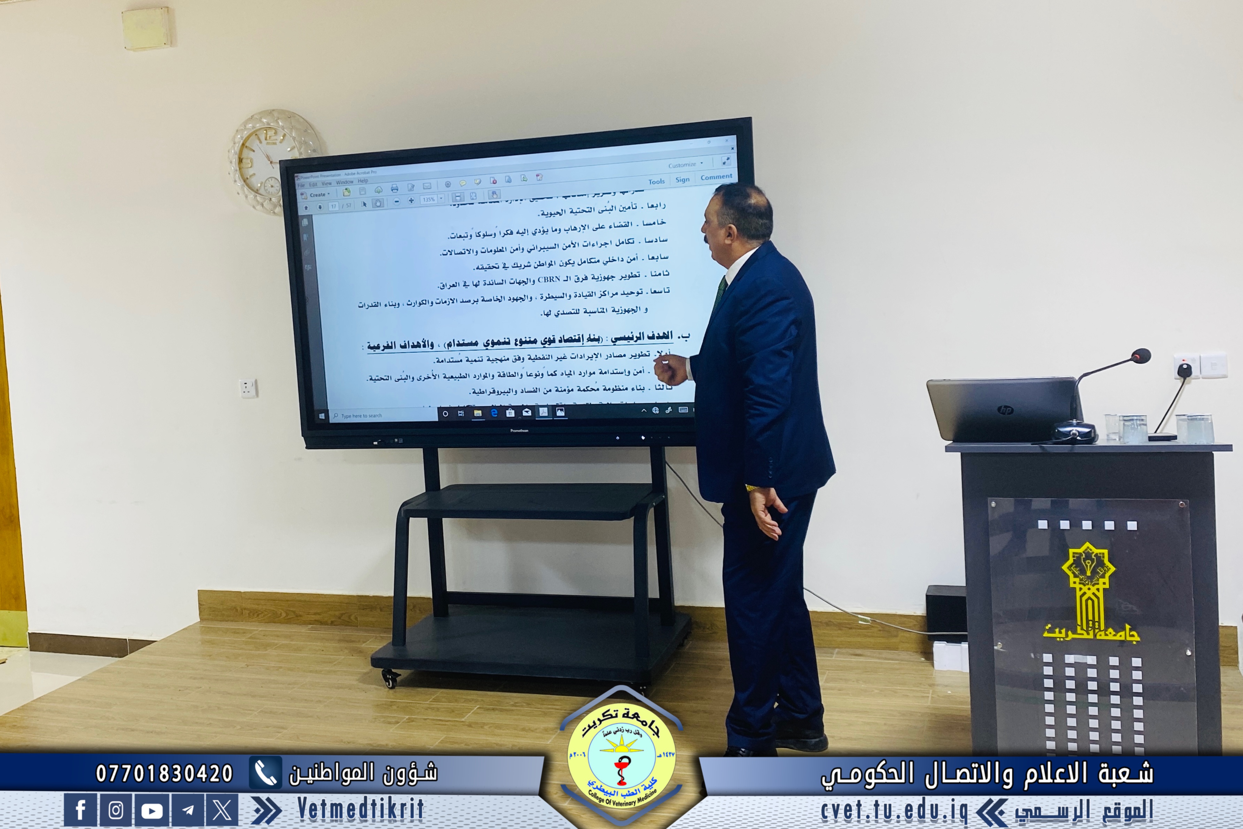 Under the patronage of Prof. Dr. Waad Mahmoud Raouf, President of the University of Tikrit, and as part of their ongoing scientific and cultural activities, the College of Veterinary Medicine at the University of Tikrit organized an important scientific symposium titled “Monitoring and Activating the National Security Strategy – Iraq First.”