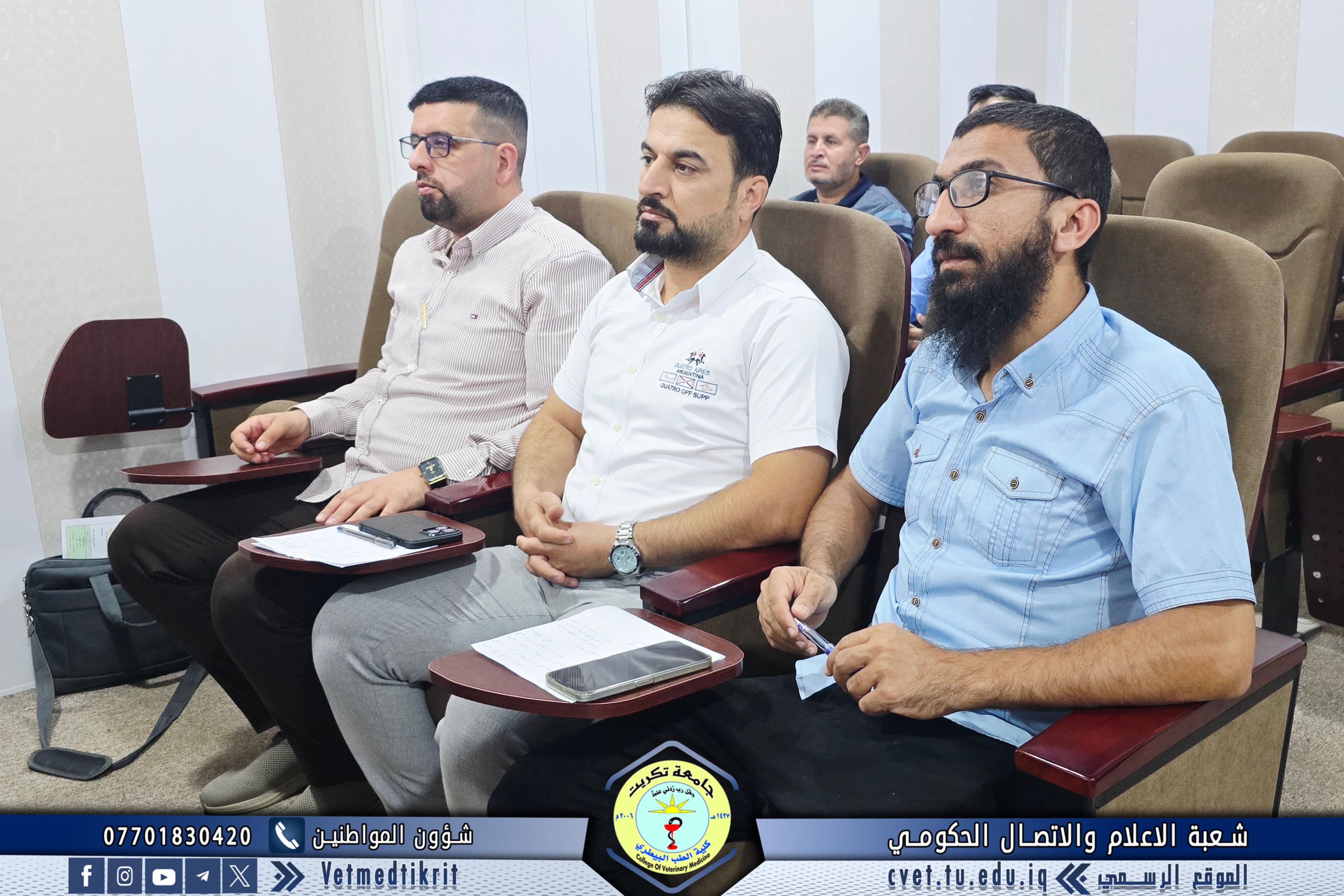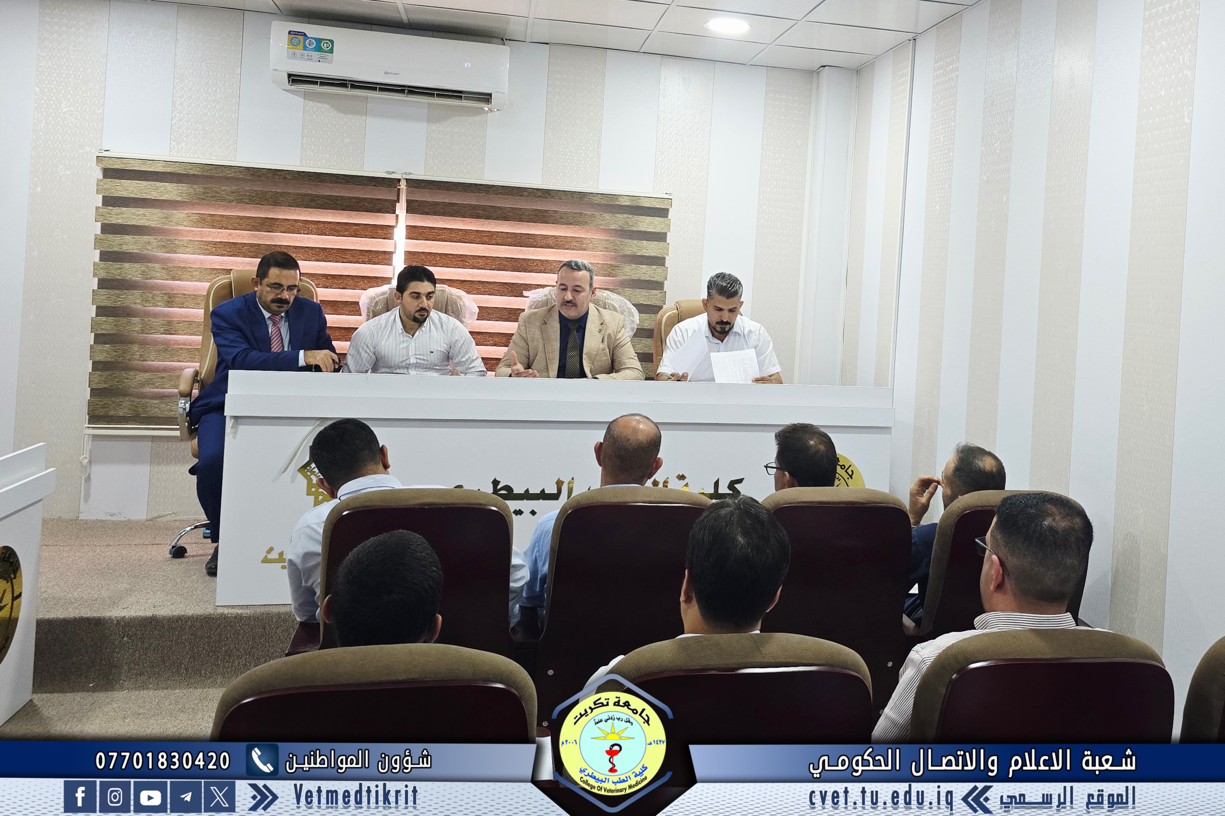 Professor Dr. Bashar Sadiq Noumi, Dean of the College of Veterinary Medicine, chaired an expanded meeting with the heads of academic departments and divisions at the college. The meeting was attended by Assistant Professor Dr. Montaser Mohammed Hilal, Assistant Dean for Academic Affairs; Assistant Professor Saad Sabbar Nassif, Secretary of the College Council; and Assistant Lecturer Montaser Mohammed Neda, Director of the Administrative Affairs Division. The meeting discussed several important topics for the start of the new academic year, most notably: emphasizing commitment to and organization of official working hours; assigning a number of faculty and administrative staff members to tasks in divisions, units, and laboratories; and monitoring administrative and organizational aspects to ensure smooth workflow and achieve the best results. This meeting comes within the framework of the Deanship of the College's commitment to strengthening discipline and improving the level of academic and administrative performance, which will positively impact the college's educational and research progress.