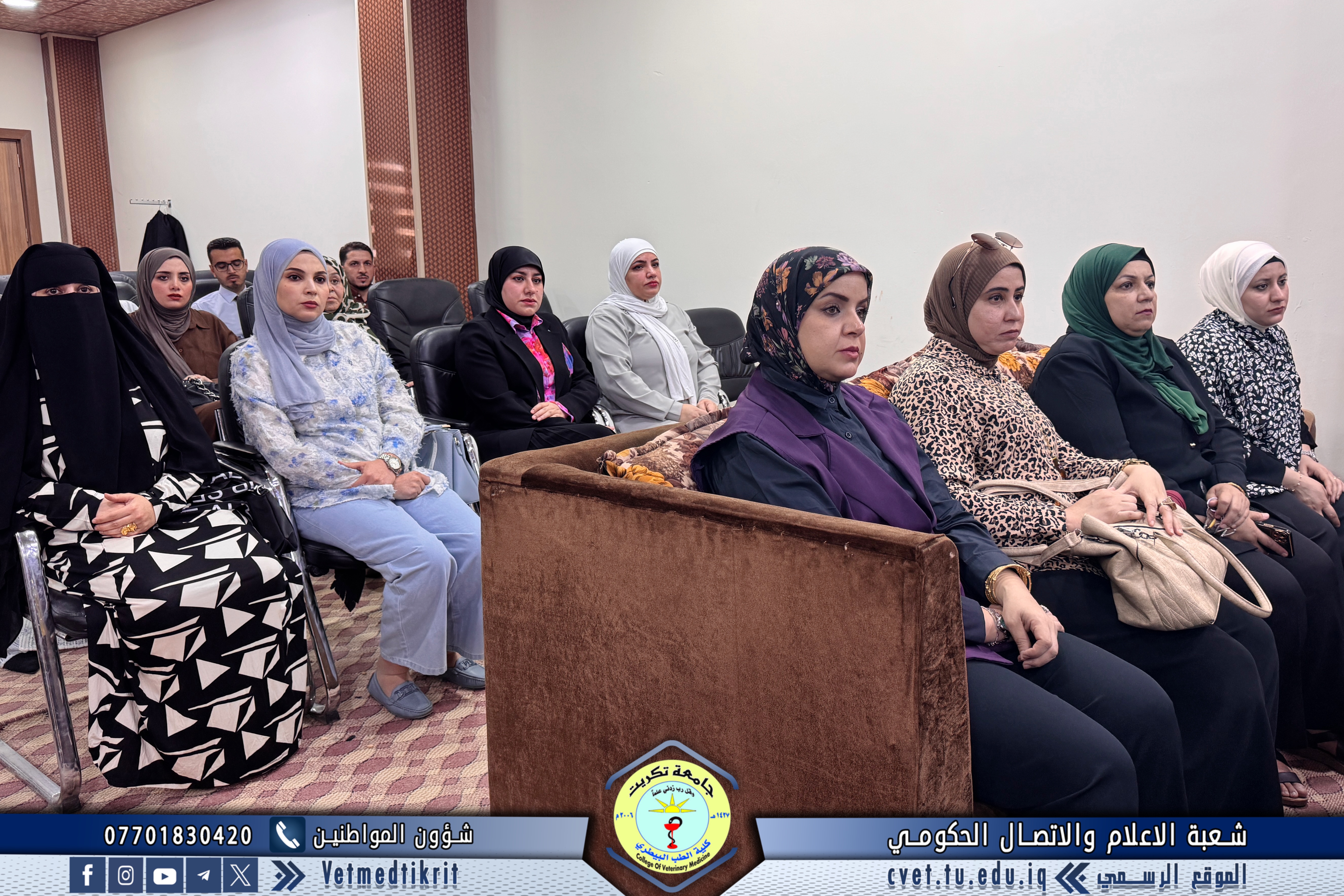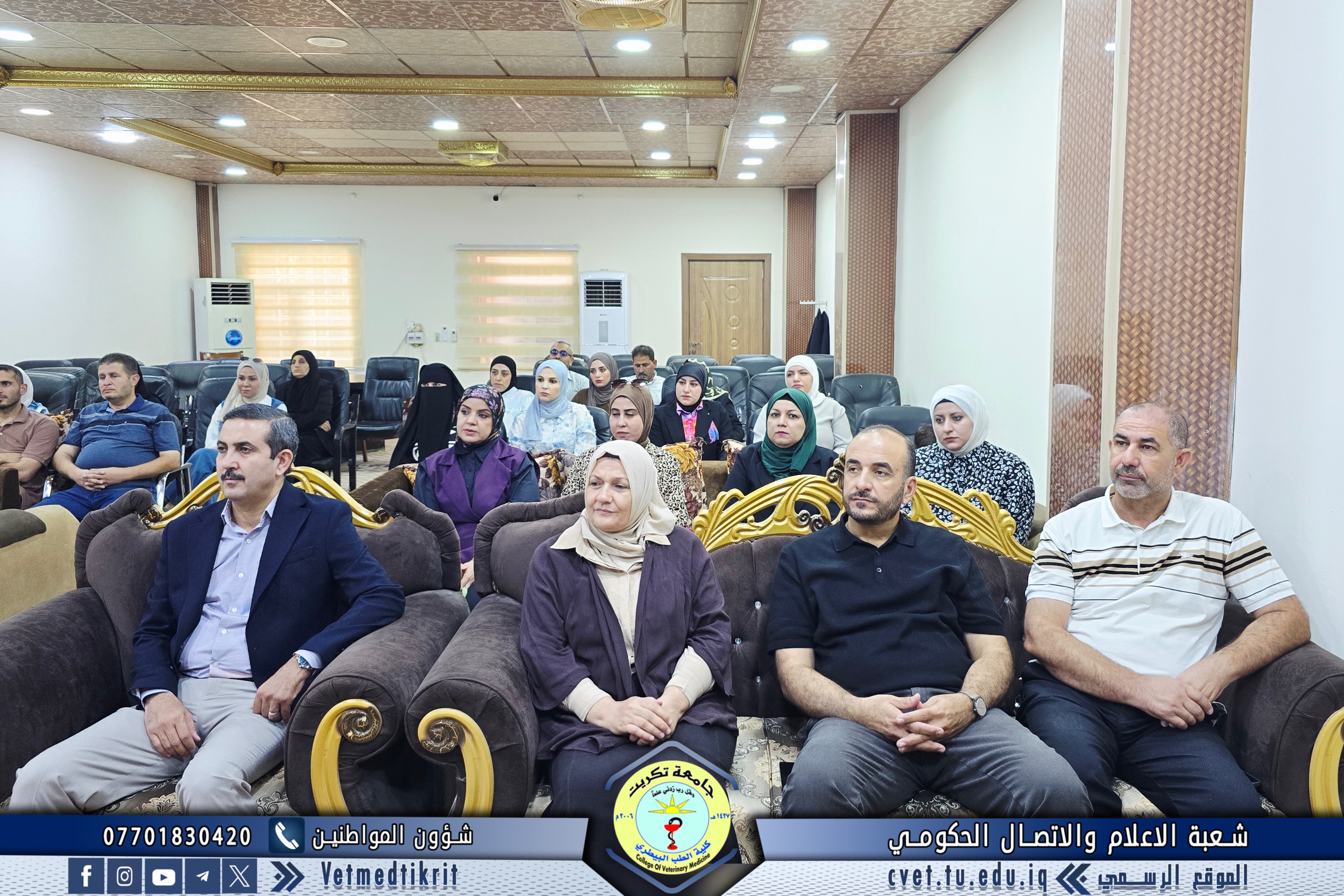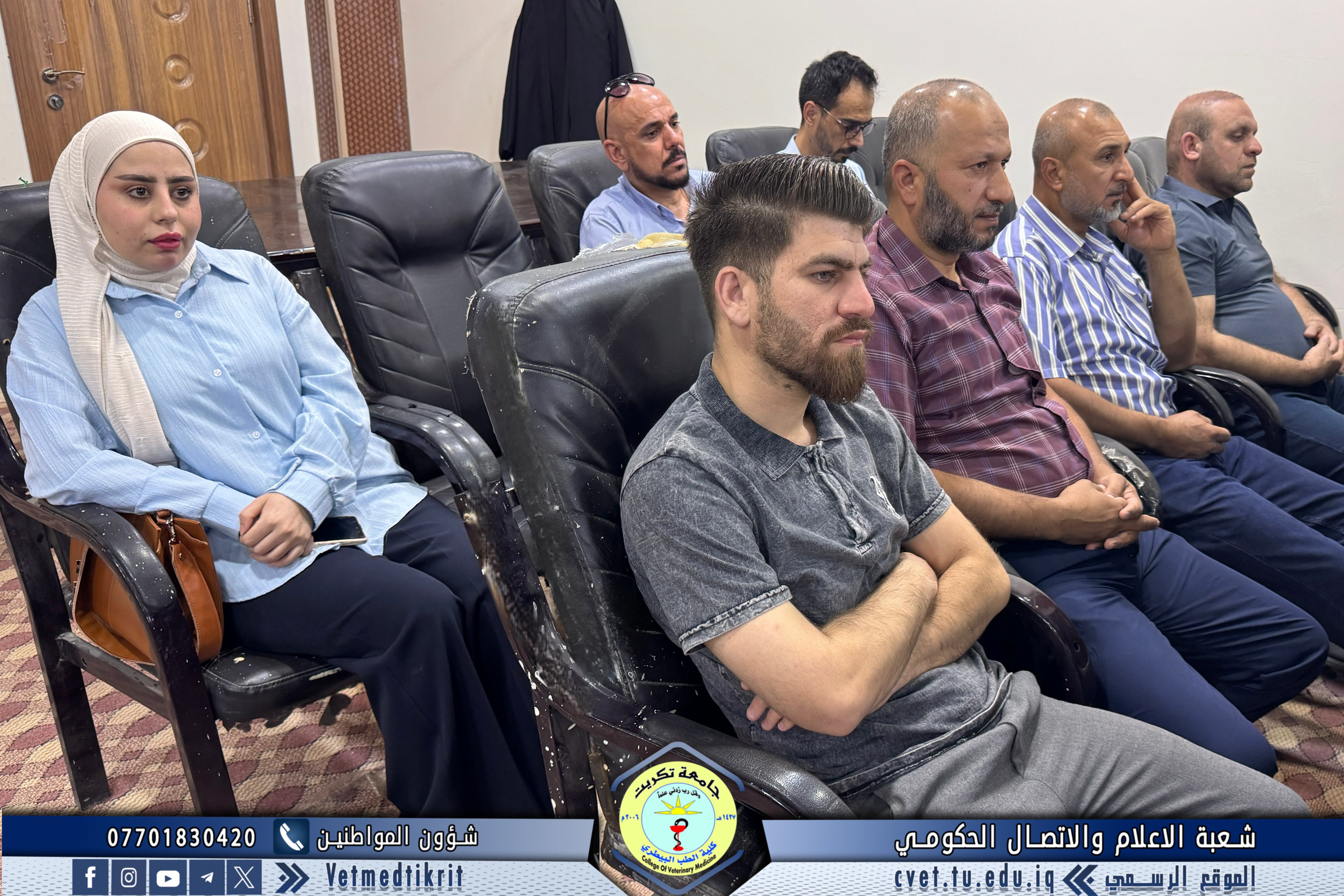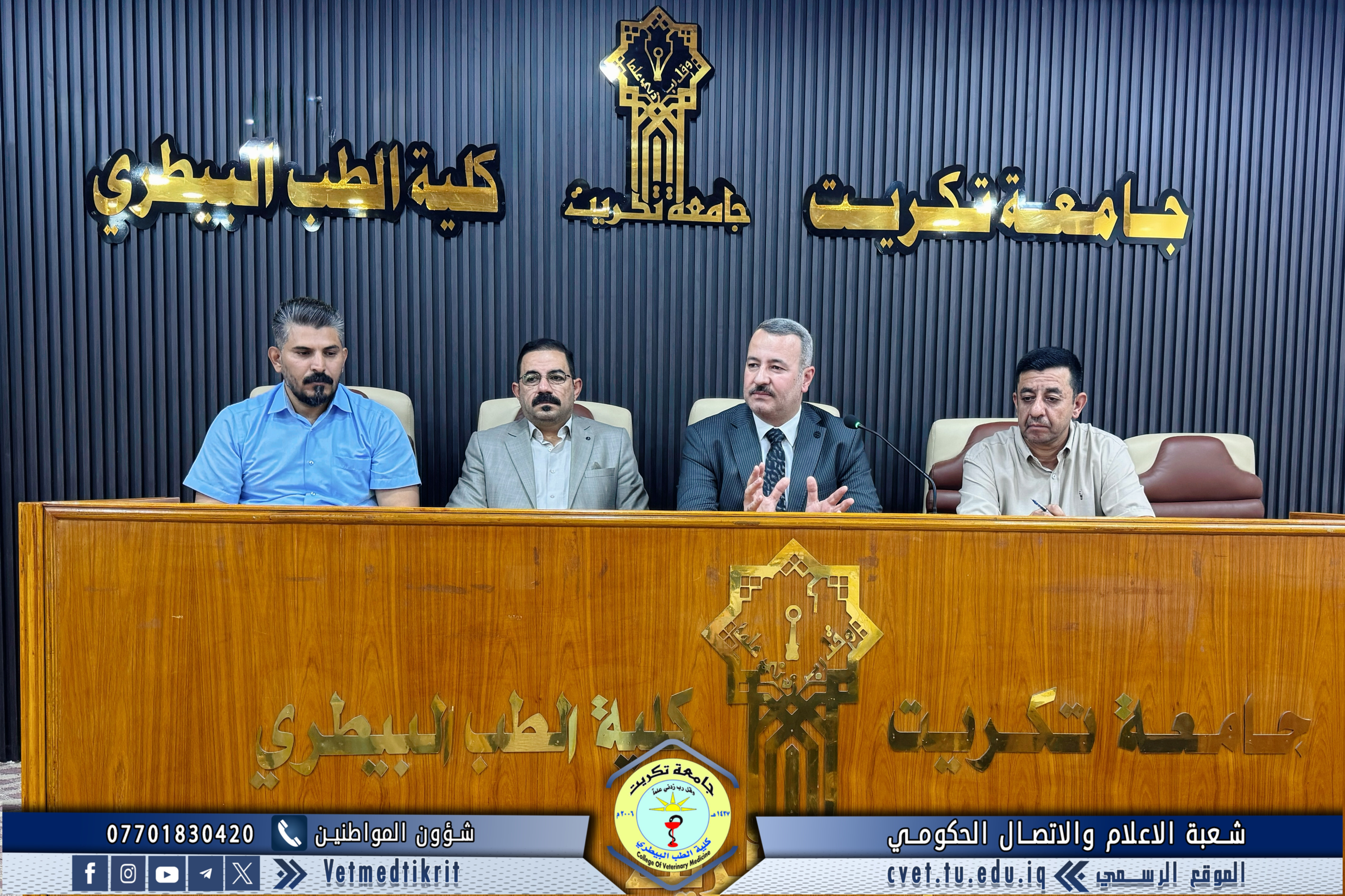 The Deanship of the College of Veterinary Medicine at Tikrit University held an expanded meeting with faculty members to mark the start of the new academic year. The meeting was attended by Professor Dr. Bashar Sadiq Noumi, Dean of the College; Assistant Professor Dr. Muntaser Muhammad Hilal, Assistant Dean for Academic Affairs; Assistant Professor Dr. Osama Hamid Shihab, Assistant Dean for Administrative Affairs; and Assistant Professor Saad Sabbar Nassif, Secretary of the College Council. The Dean began the meeting with a speech welcoming the faculty, wishing them a successful and productive academic year. He emphasized the importance of cooperation and teamwork to advance the college's academic and scientific level. The meeting addressed several important topics, most notably: dividing lectures to achieve a balance between theoretical and practical requirements; emphasizing the importance of enhancing the practical and applied aspects of lectures to provide students with the necessary experience and skills; discussing mechanisms for implementing institutional accreditation standards and ensuring the quality of education; and examining some administrative and organizational aspects related to the progress of the educational process. At the conclusion of the meeting, the Dean emphasized the need to redouble efforts to achieve a distinguished academic year that contributes to providing society with solid scientific competencies capable of serving the veterinary medicine sector.