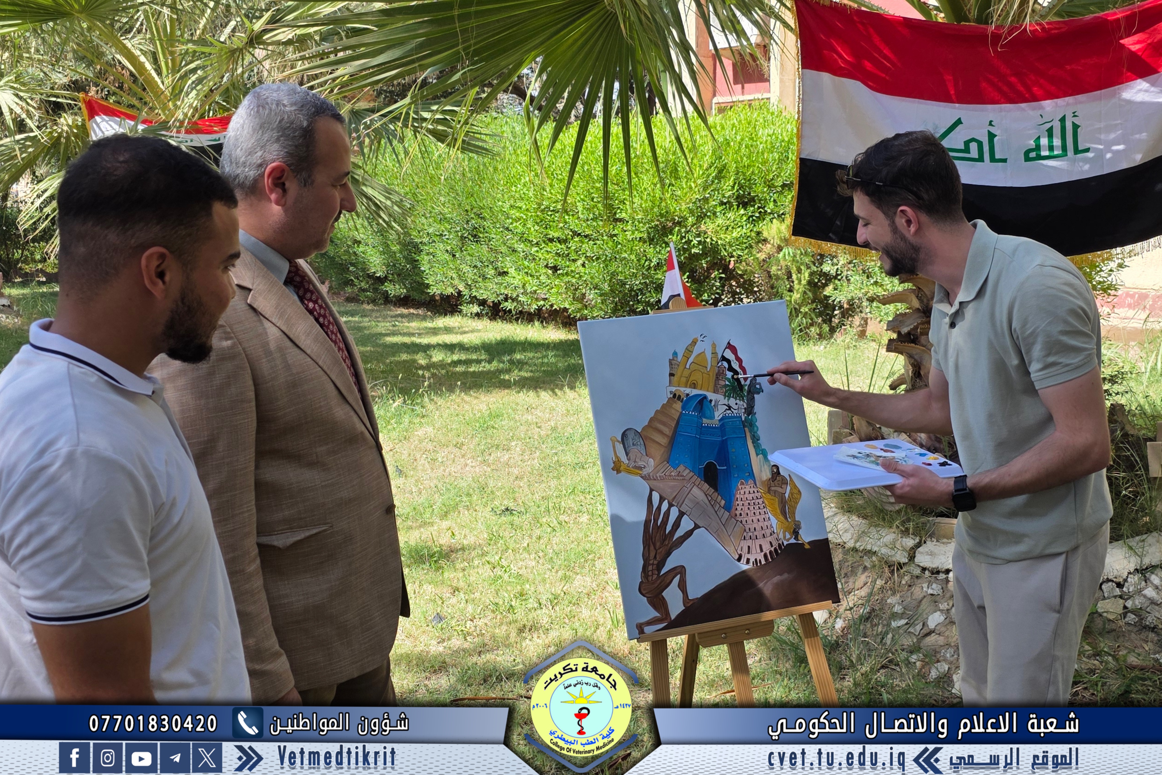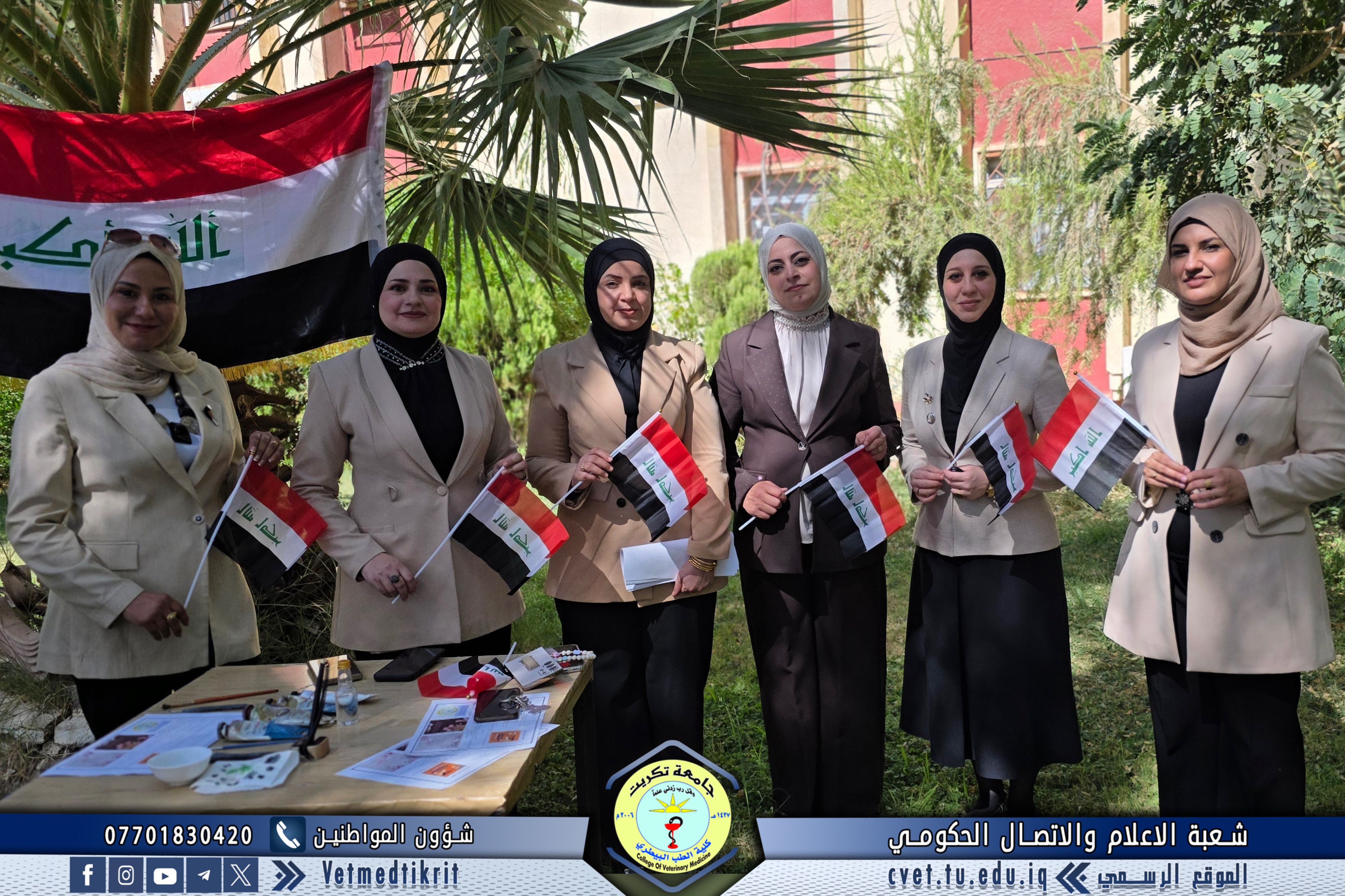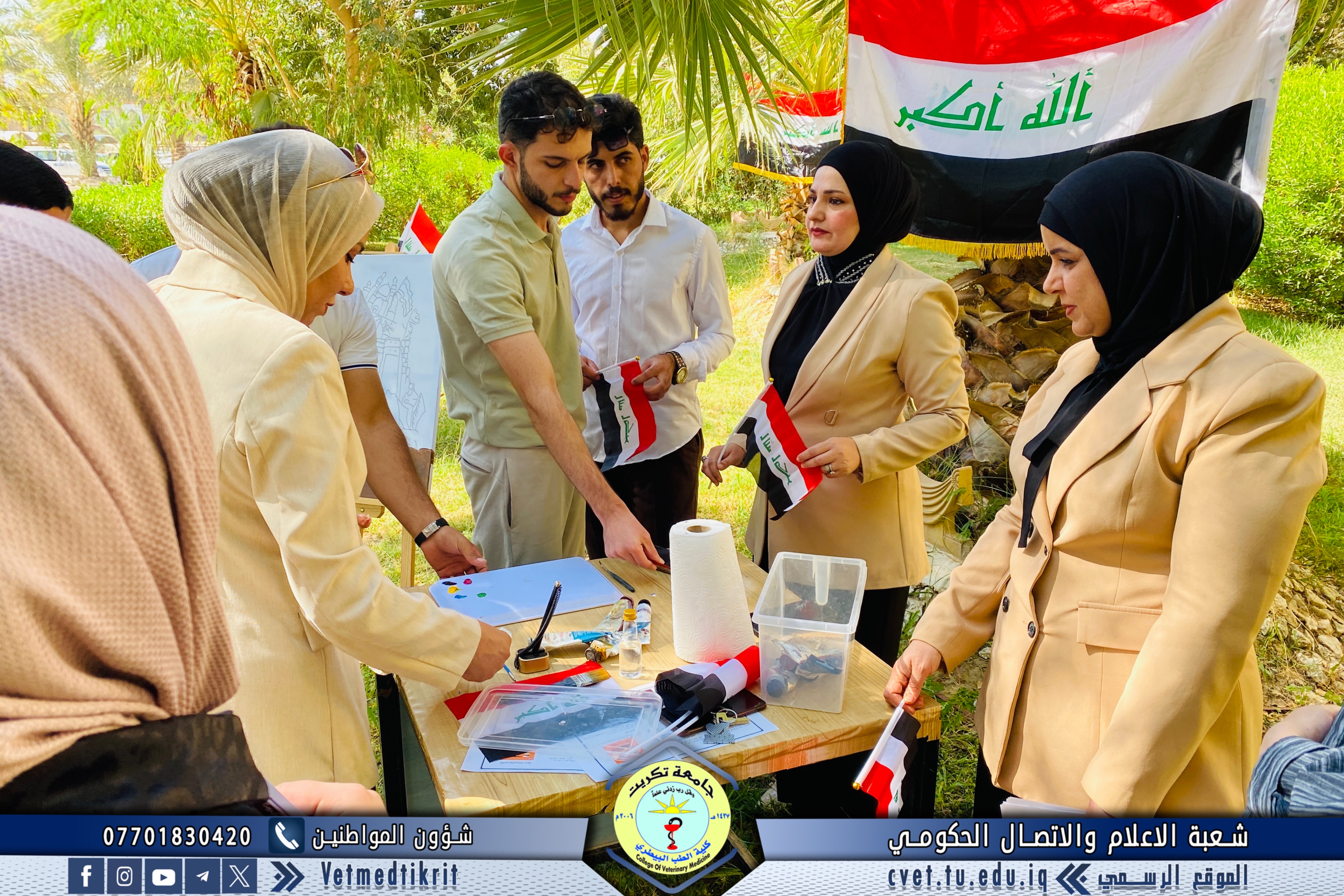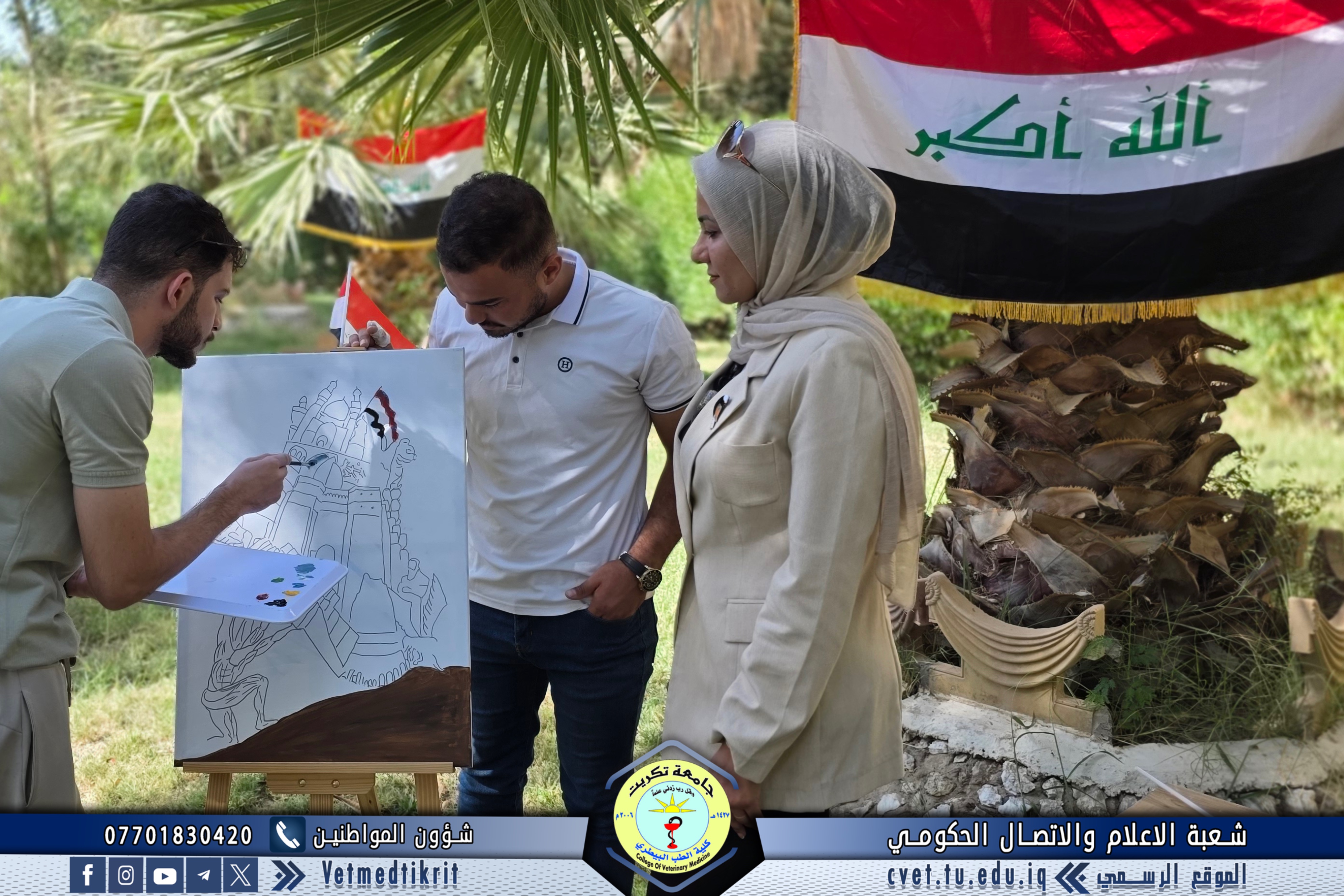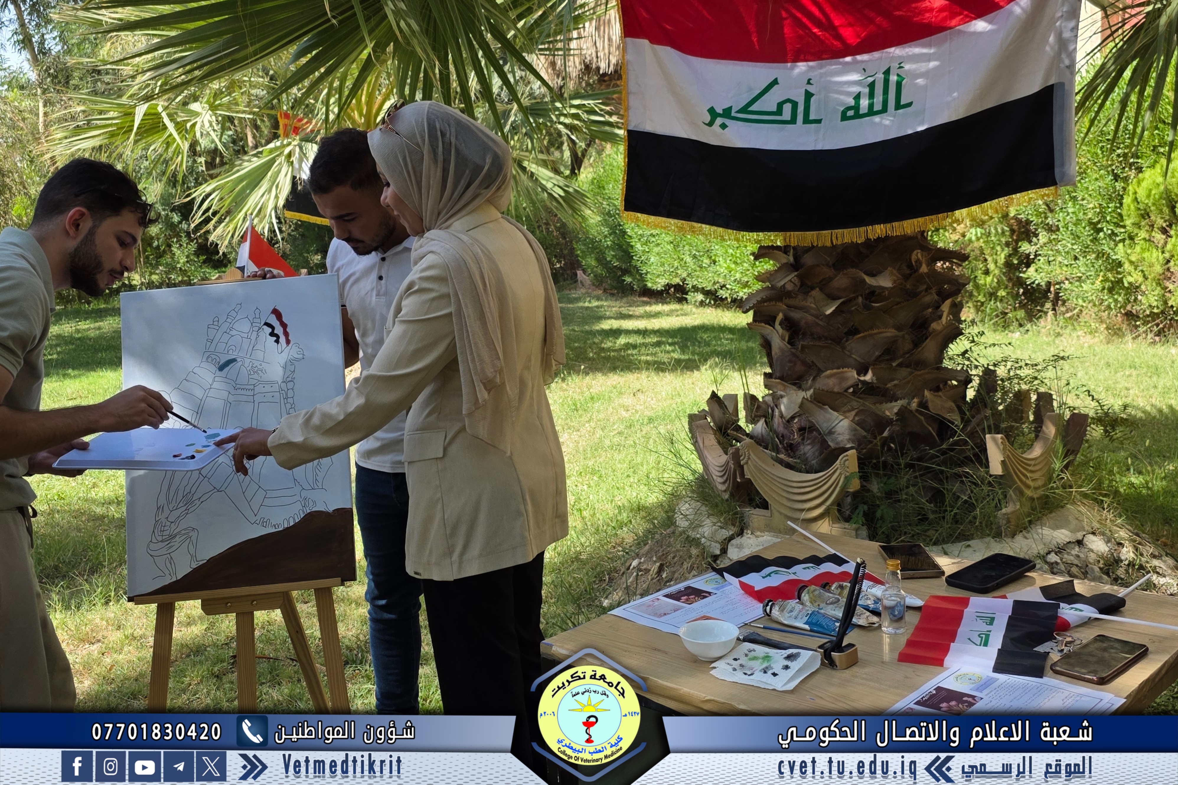 In celebration of Iraq’s National Day, the Women’s Affairs Unit at the College of Veterinary Medicine – University of Tikrit organized a special artistic event that embodied the spirit of patriotism and national unity through painting and creative expression. The event featured the participation of several female faculty members and students, who collaboratively created a collective artwork depicting Iraq’s rich history and the unity of its people from north to south.