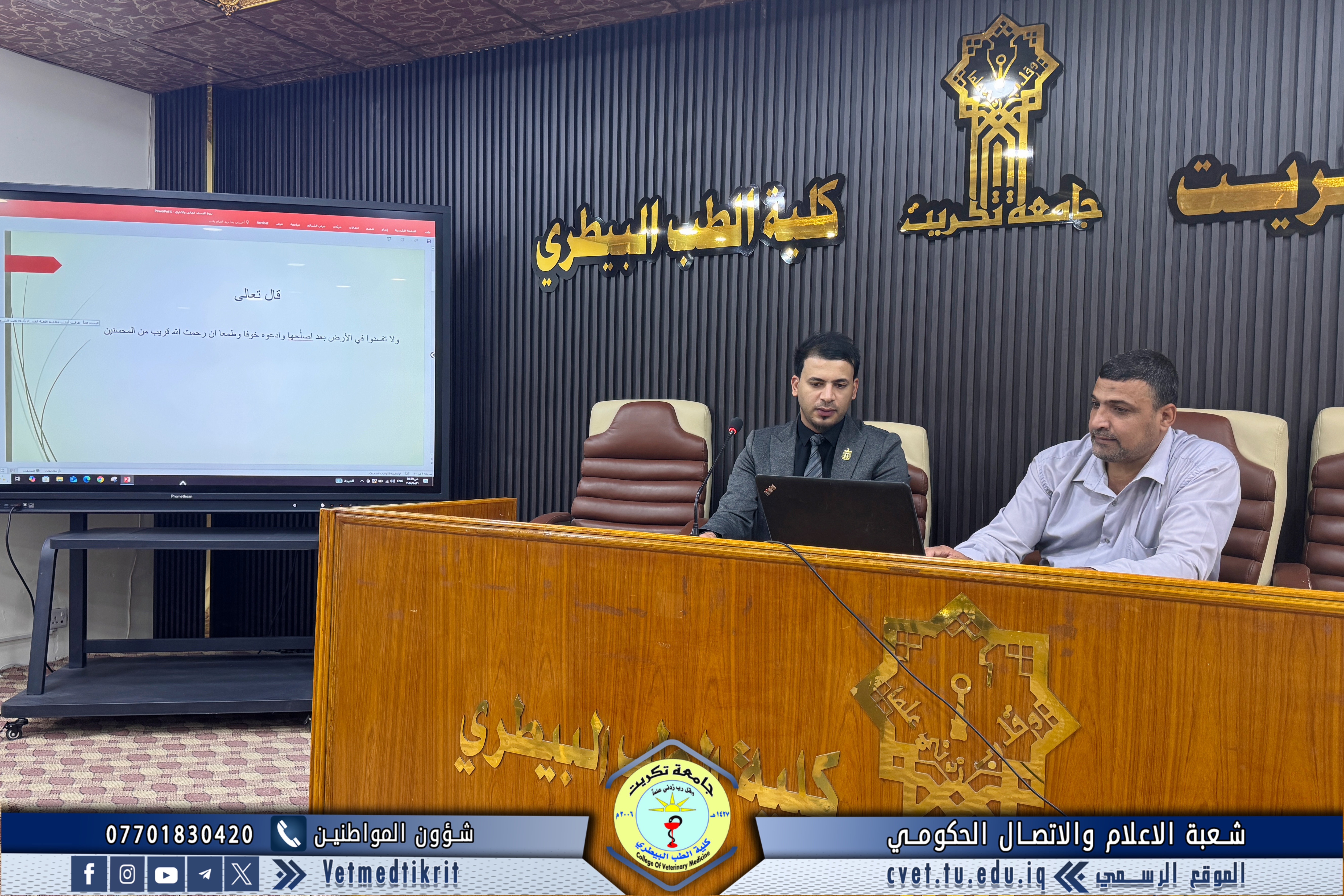 As part of its educational and awareness activities, the College of Veterinary Medicine at the University of Tikrit held a seminar titled “Financial and Administrative Corruption”, presented by Assistant Lecturer Baraa Mohammed Hamash and Mr. Ammar Abdul Kareem Araibi, with the attendance of several faculty and administrative staff members.