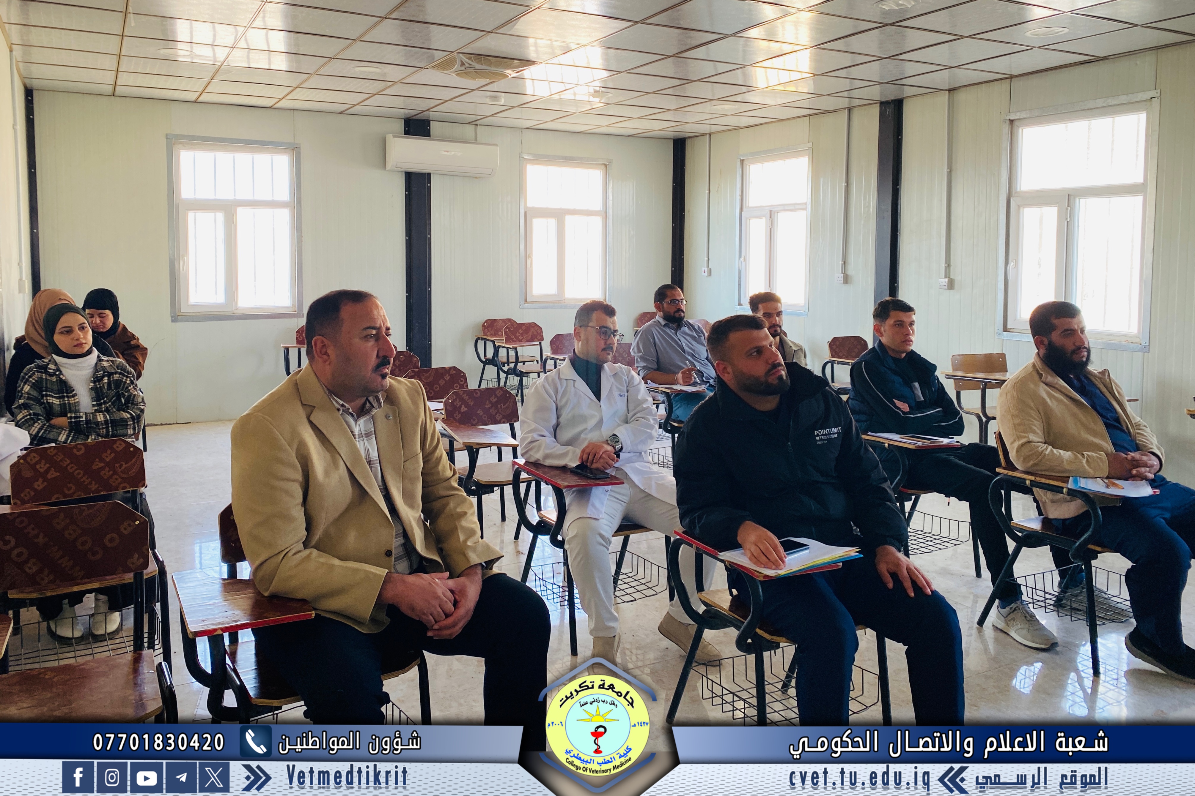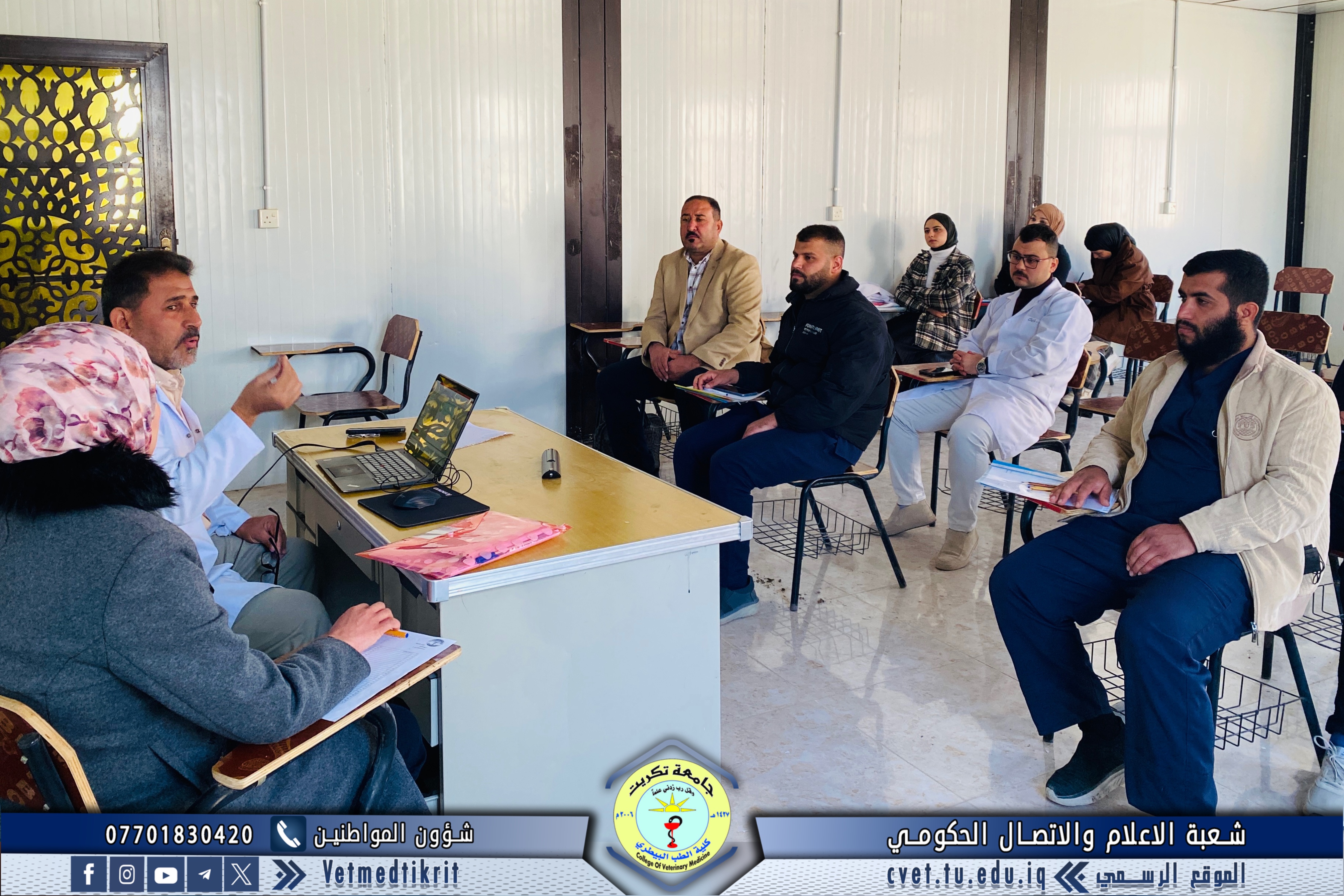 Under the patronage of the College of Veterinary Medicine and in cooperation with the Continuing Education Center at the University of Tikrit, a scientific workshop titled “Pregnancy Diagnosis in Farm Animals” was held, delivered by Asst. Prof. Dr. Nawaf Noreddin Dhahir and Asst. Lecturer Manar Sabah Issa from the Department of Internal Medicine, Surgery, and Obstetrics.