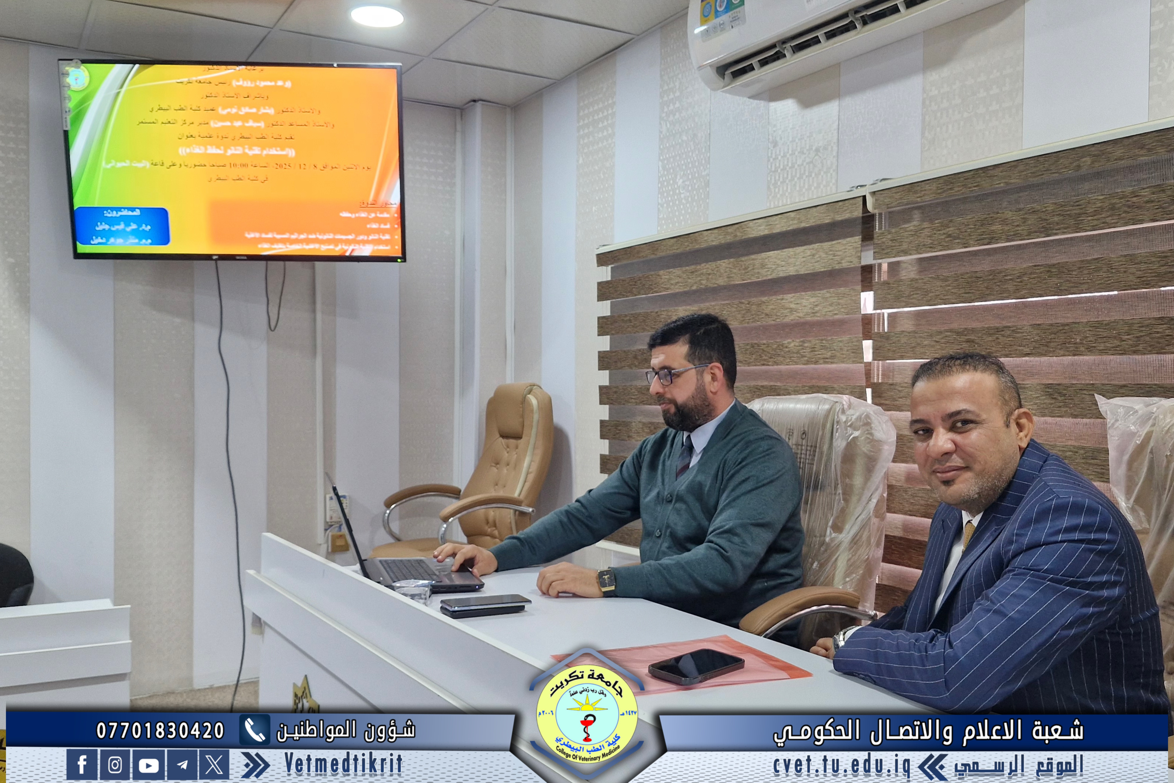 Under the patronage of the Dean of the College of Veterinary Medicine and in cooperation with the Continuing Education Center at the University of Tikrit, the College organized a scientific seminar entitled “The Use of Nanotechnology in Food Preservation.” The seminar was presented by Assist. Prof. Dr. Ali Qais Jaleel and Lecturer Mondher Jawhar Dakhil, with the participation of several faculty members.