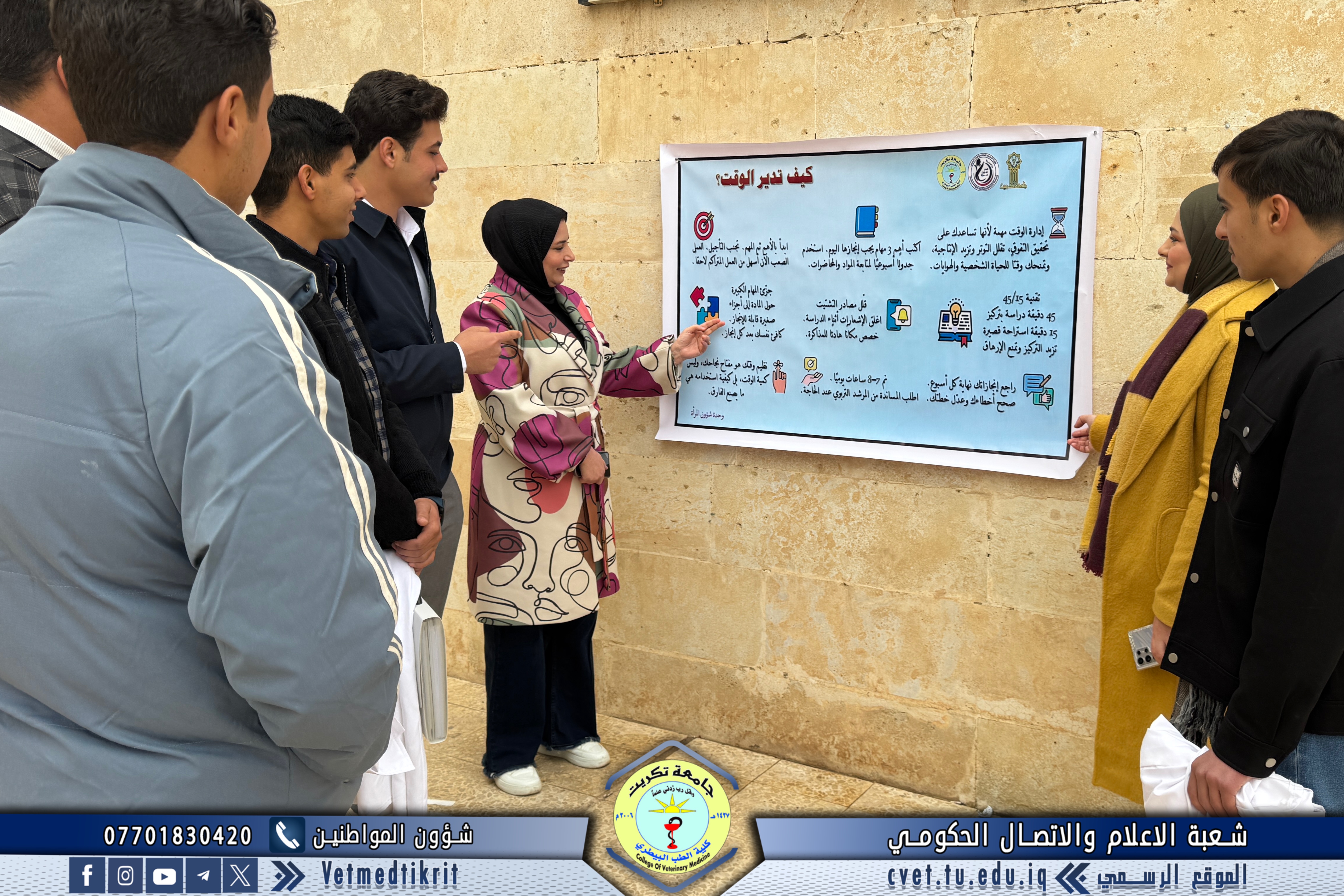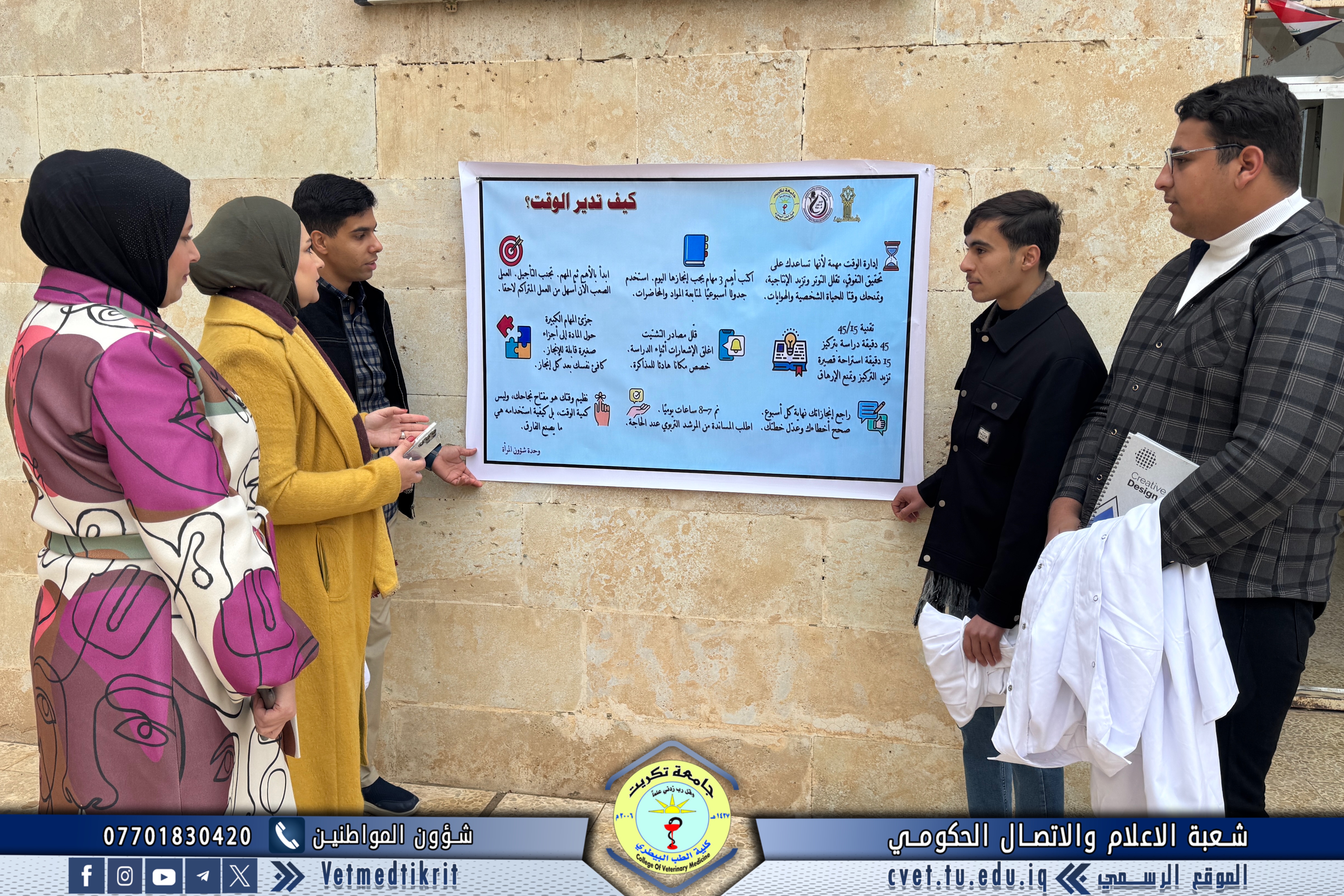 The Women’s Affairs Unit at the College of Veterinary Medicine, University of Tikrit, organized an awareness campaign aimed at enhancing time management skills among the College’s students, as part of its programs designed to provide academic and educational support.