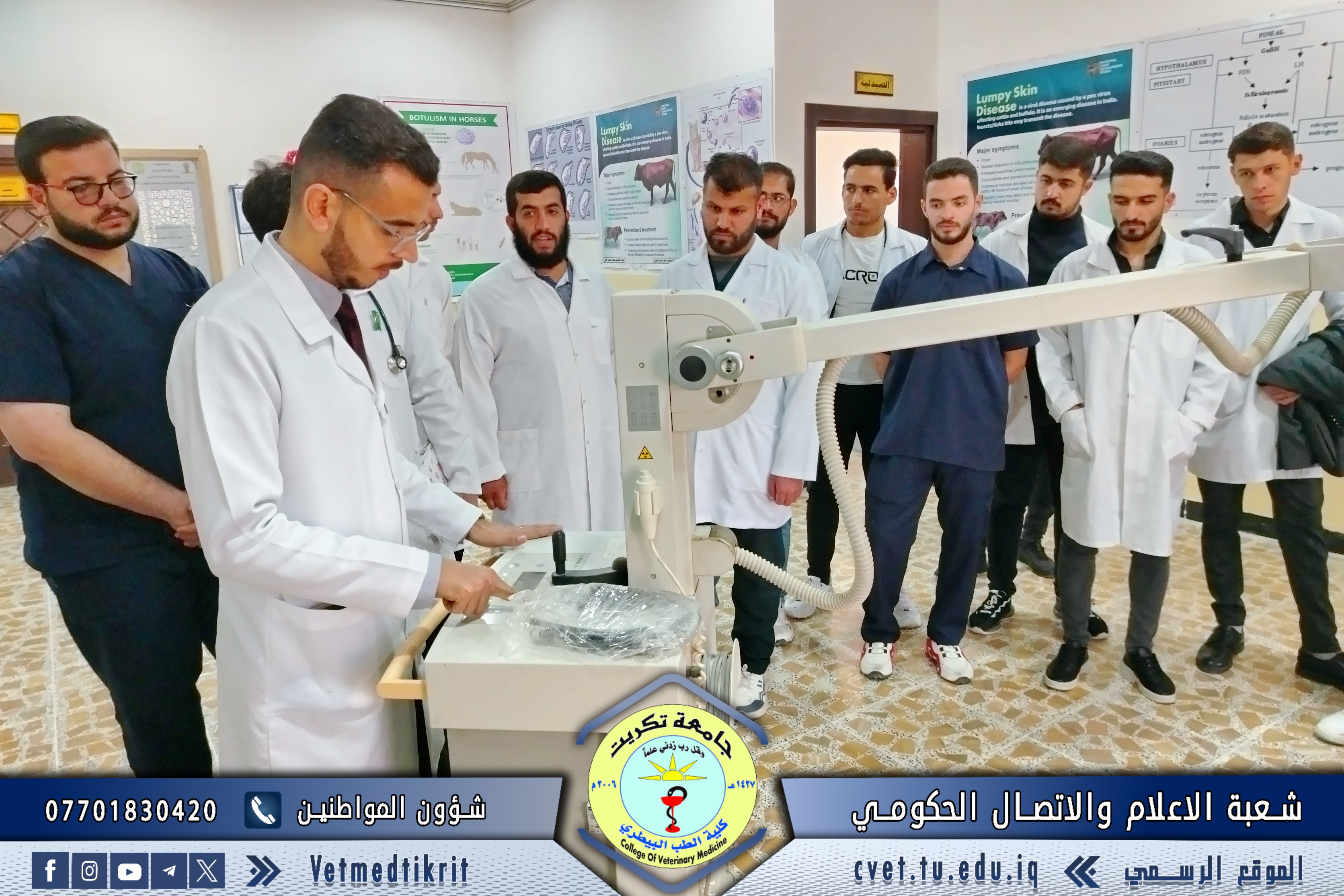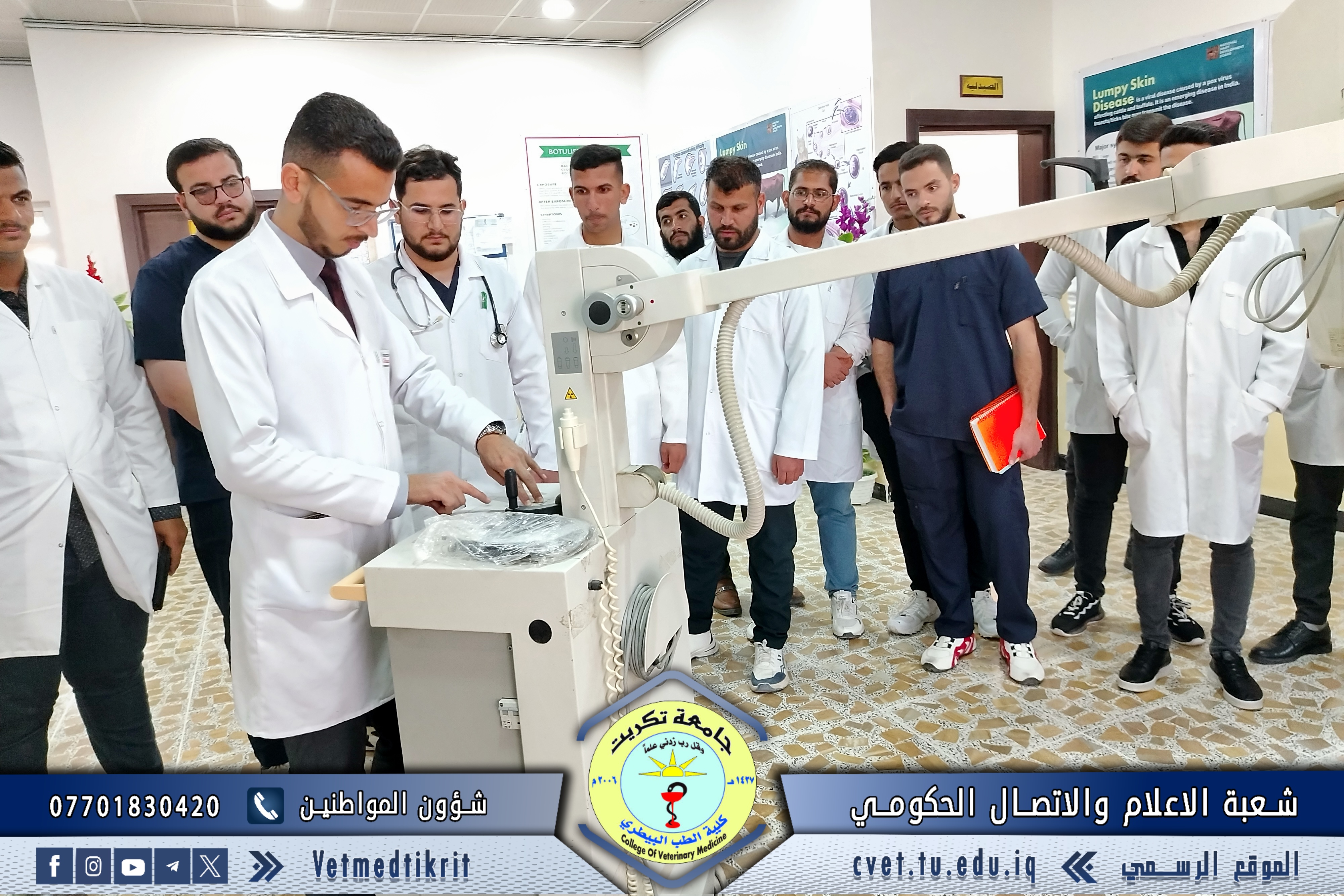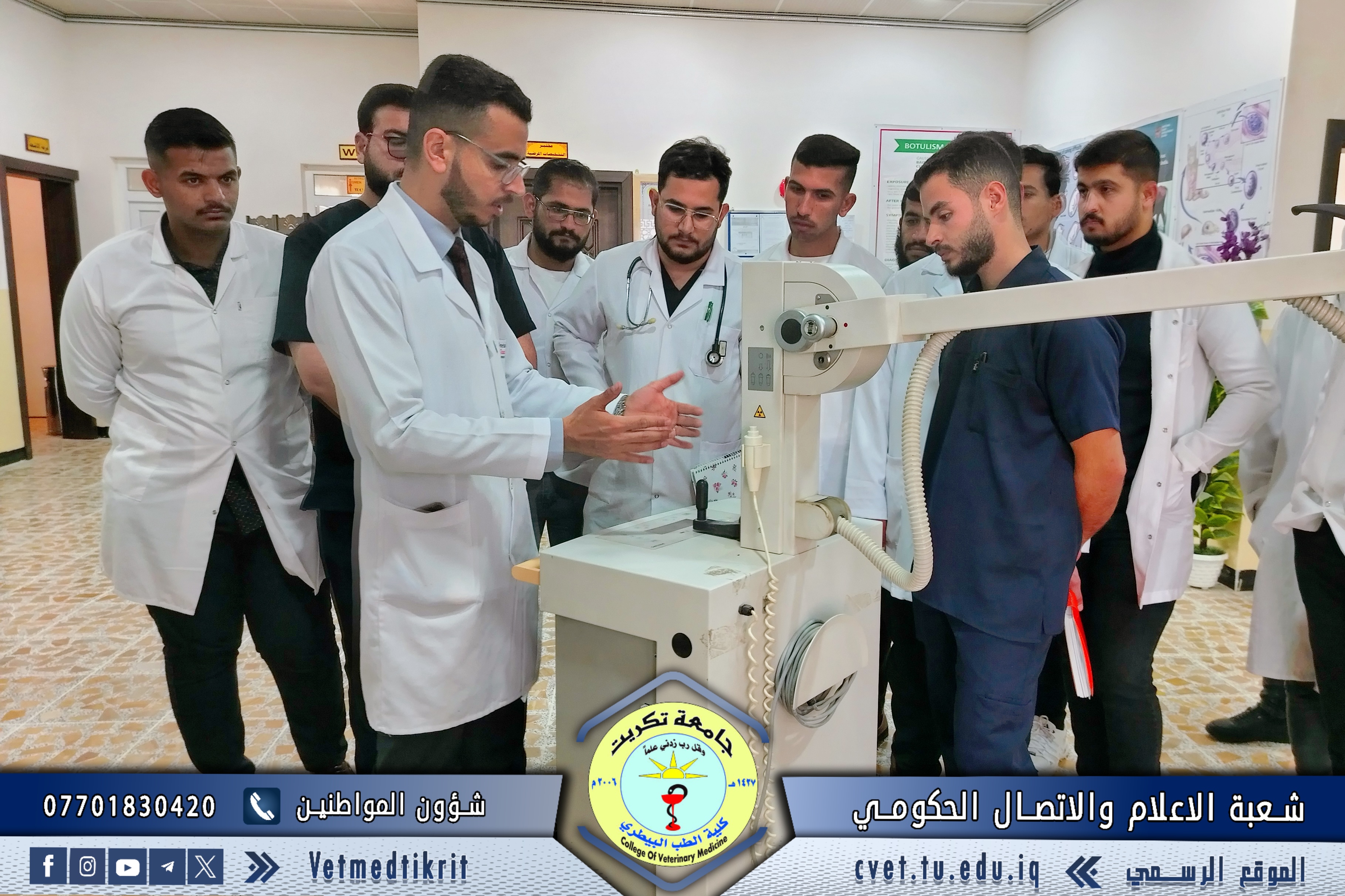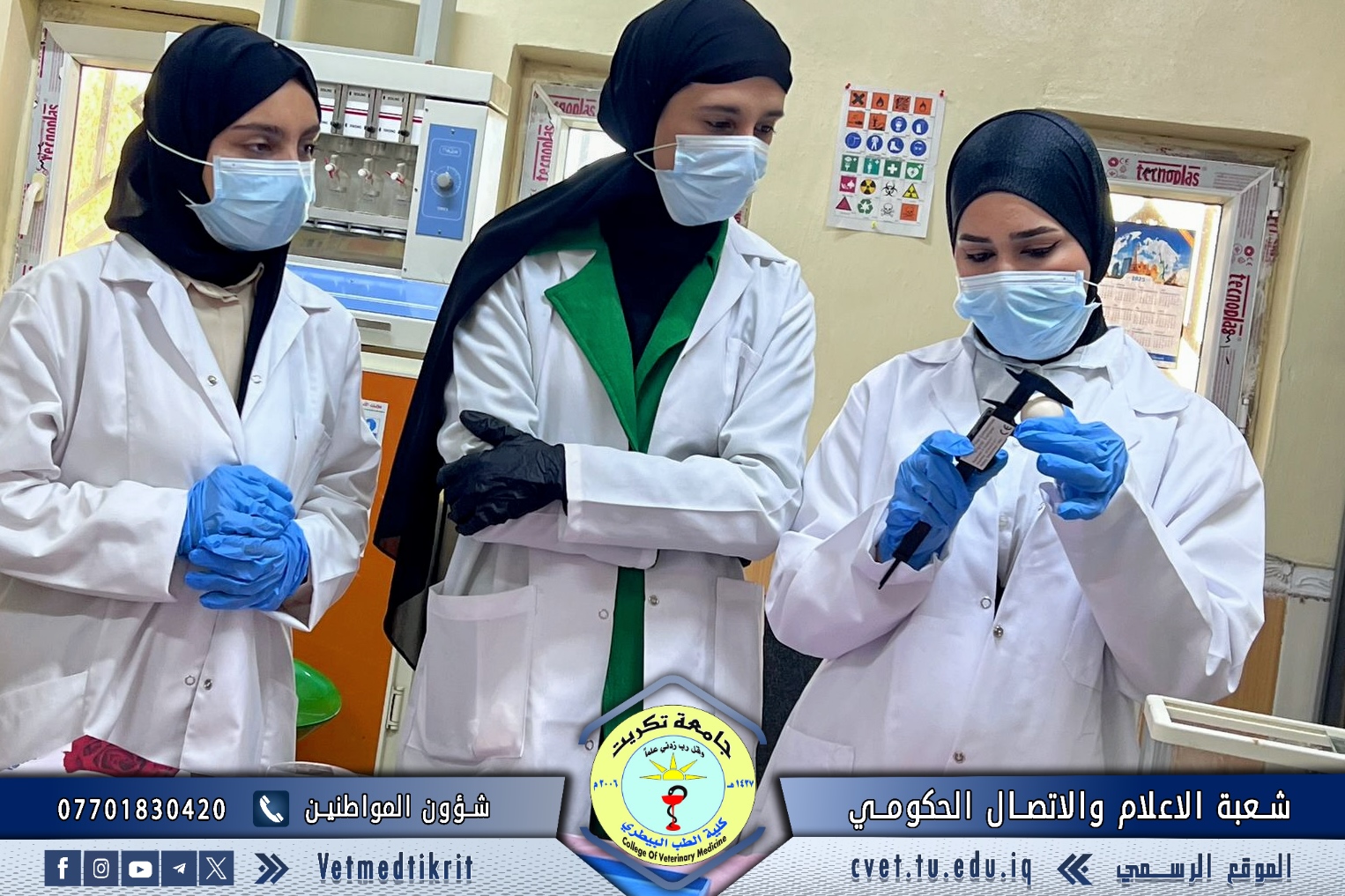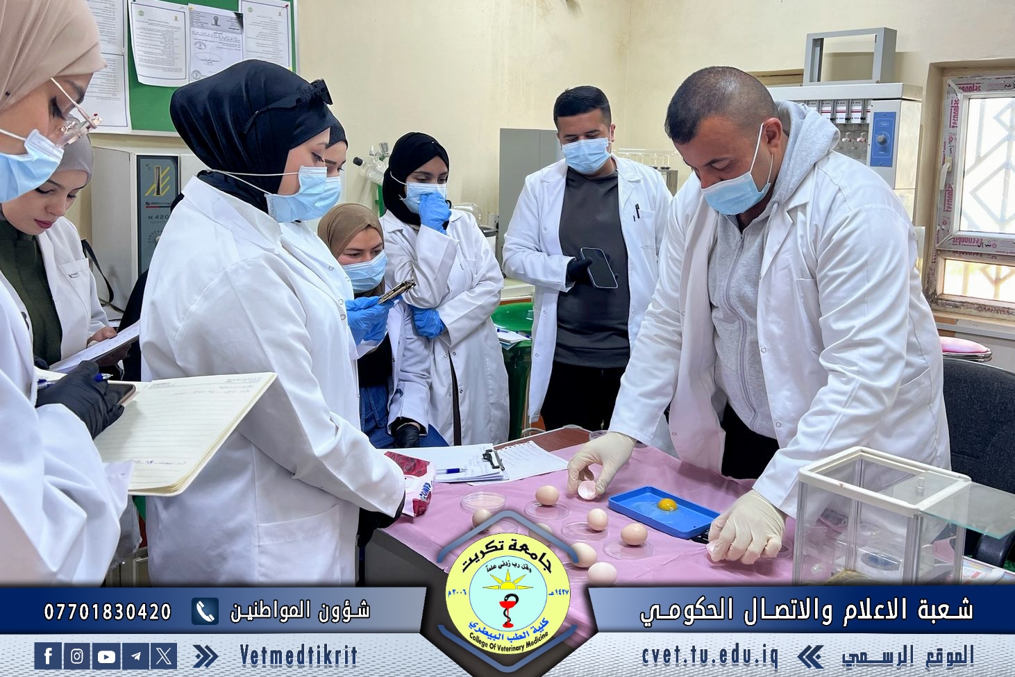 The College of Veterinary Medicine at the University of Tikrit organized a practical lecture for first-year students entitled “Egg Examination and Grading”, delivered by Dr. Omar Issam and Dr. Ali Qais, as part of the practical courses designed to enhance students’ applied understanding within the Poultry Management curriculum.